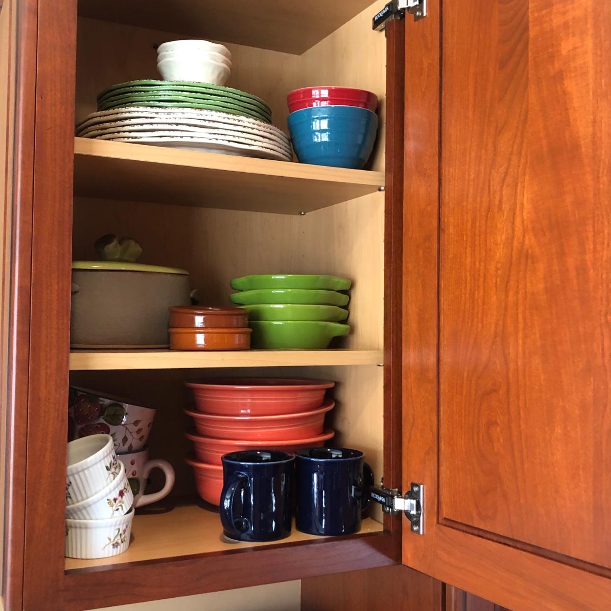 Kitchen cabinet full of everyday dishes for use including Fiesta bowls. Pre-owned with minor wear. Please see all pictures as they are the best representation of the items. The pictures show condition, measurements if taken, and what is included in the lot. Due to the large amount that we photograph and the time frame, we are not always able to take measurements. All items unless noted, are pre-owned and have been used. If you purchased furniture, you must bring help. We do not allow one person to carry large furniture out on their own. Bring help, tools and a truck for the safety of our client’s homes, and your personal safety. Any damages that result to the property including walls, and floors due to moving of the furniture will be charged to the buyer. Company policy. Thank you.