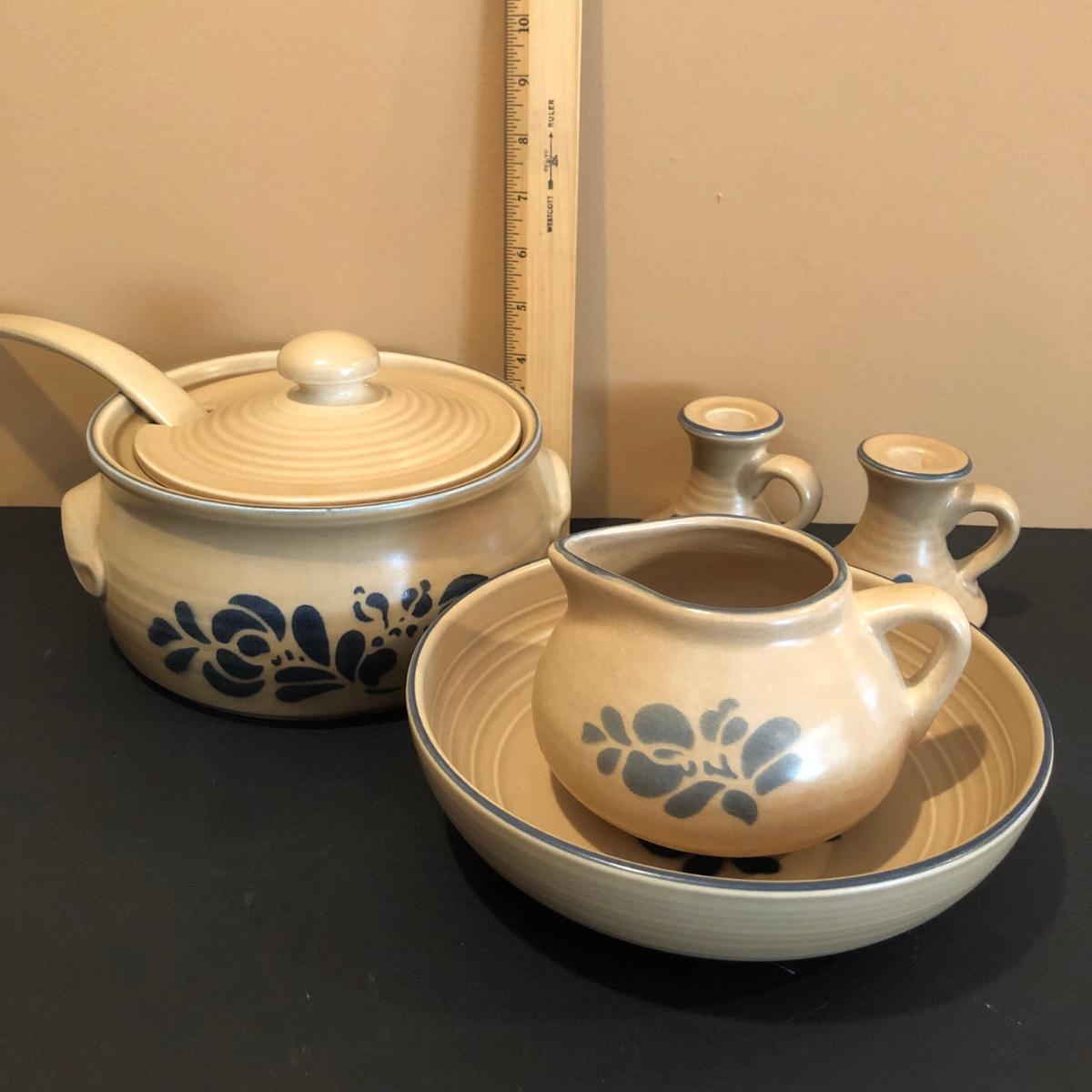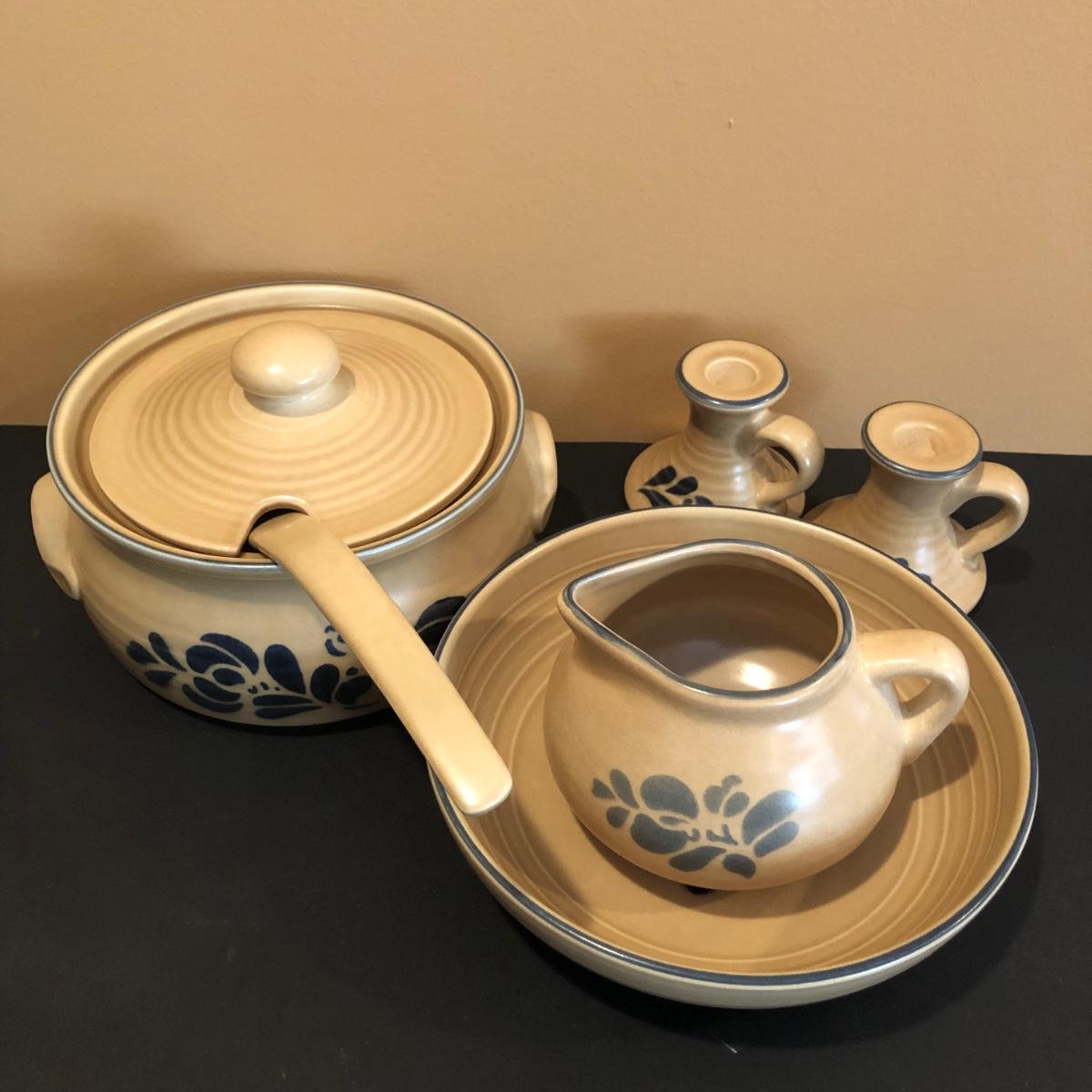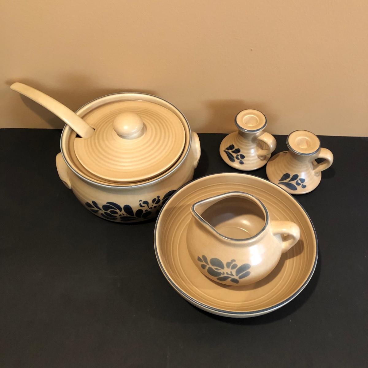 Pre-owned with minimal wear Pfaltzgraff serving pieces in the blue and brown Folk Art Pattern. Please see all pictures as they are the best representation of the items. The pictures show condition, measurements if taken, and what is included in the lot. Due to the large amount that we photograph and the time frame, we are not always able to take measurements. All items unless noted, are pre-owned and have been used. If you purchased furniture, you must bring help. We do not allow one person to carry large furniture out on their own. Bring help, tools and a truck for the safety of our client’s homes, and your personal safety. Any damages that result to the property including walls, and floors due to moving of the furniture will be charged to the buyer. Company policy. Thank you.