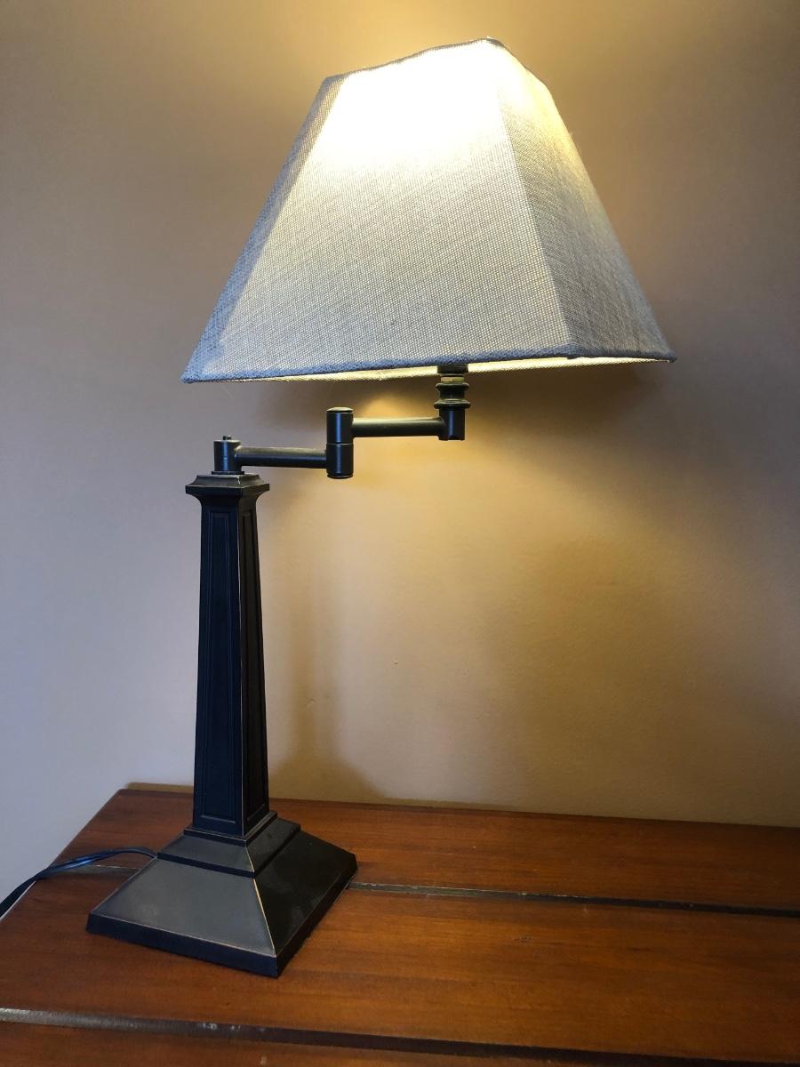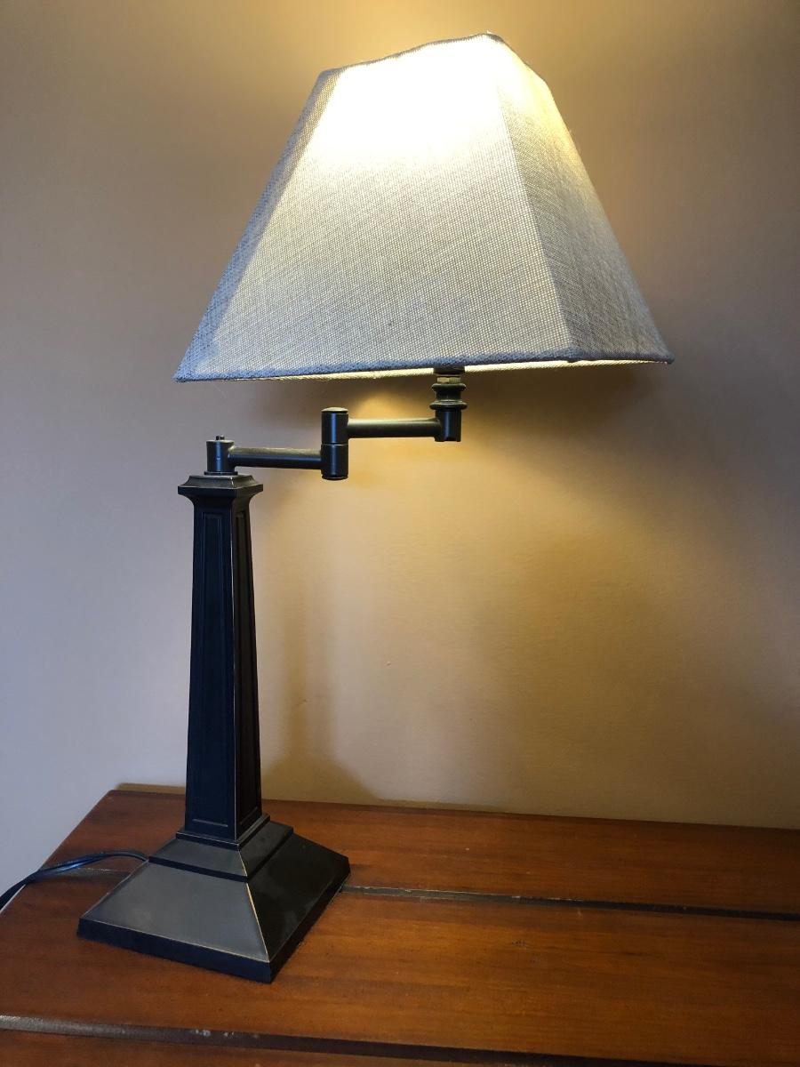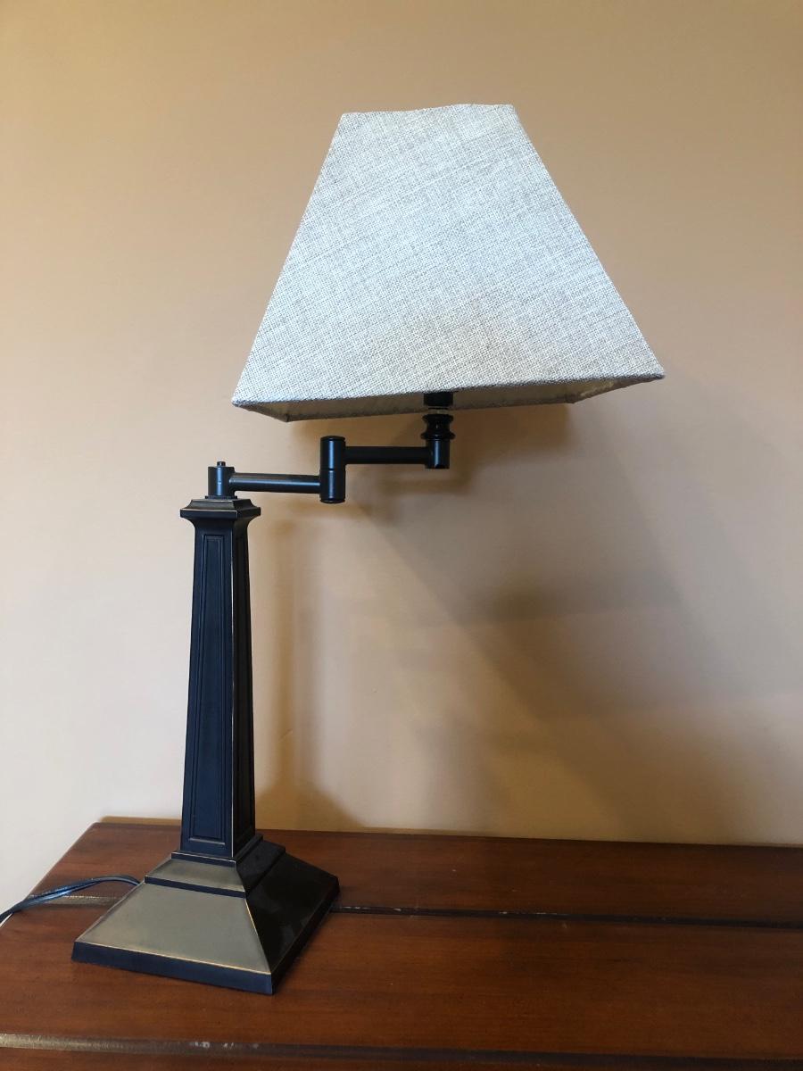 Metal with wood top modern designed table, with coordinating black lamp, and coffee table books. All pre-owned with minor wear from use. Please see all pictures as they are the best representation of the items. The pictures show condition, measurements if taken, and what is included in the lot. Due to the large amount that we photograph and the time frame, we are not always able to take measurements. All items unless noted, are pre-owned and have been used. If you purchased furniture, you must bring help. We do not allow one person to carry large furniture out on their own. Bring help, tools and a truck for the safety of our client’s homes, and your personal safety. Any damages that result to the property including walls, and floors due to moving of the furniture will be charged to the buyer. Company policy. Thank you.