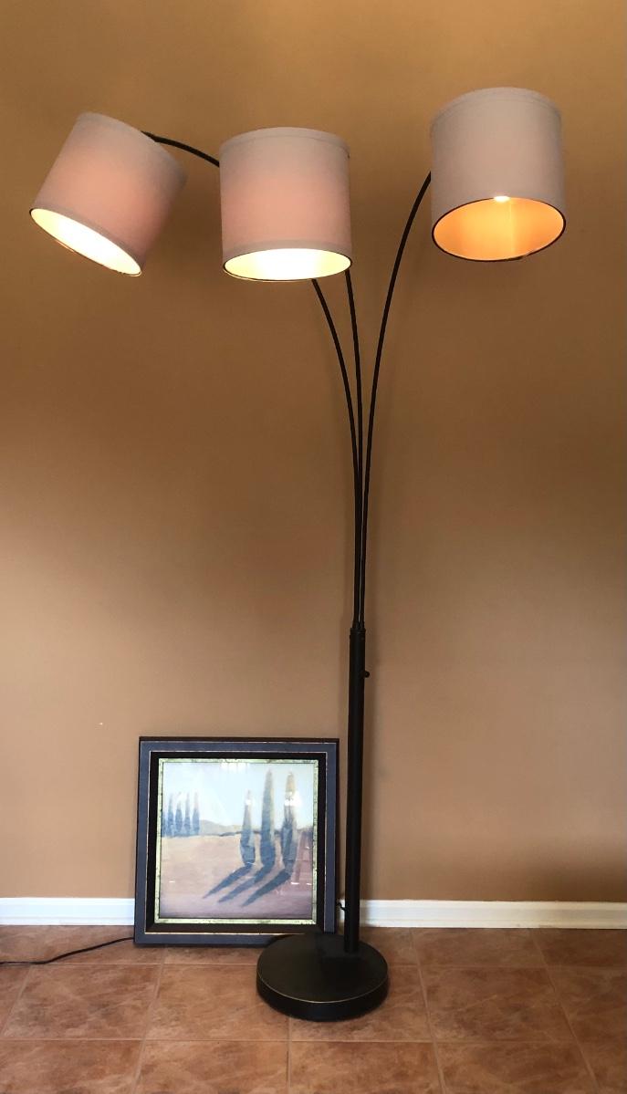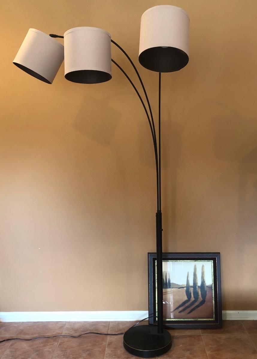 LOT 17: Modern 3-Arm Arc Floor Lamp w/Tuscan Artwork