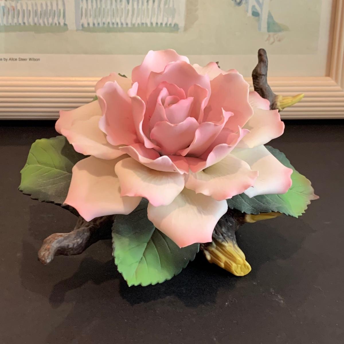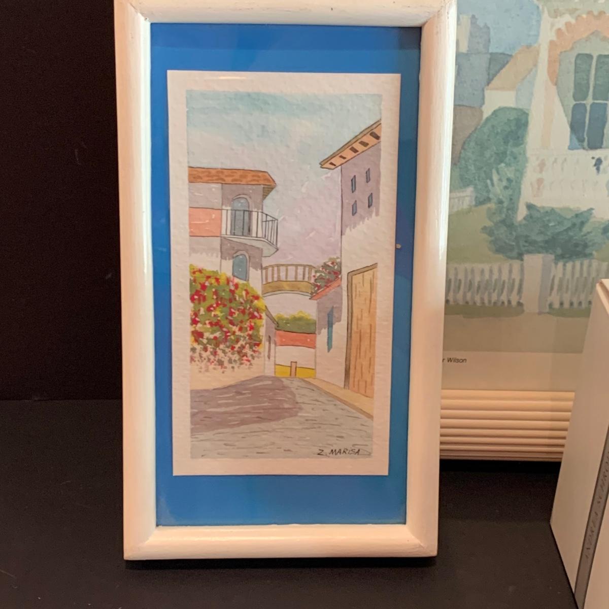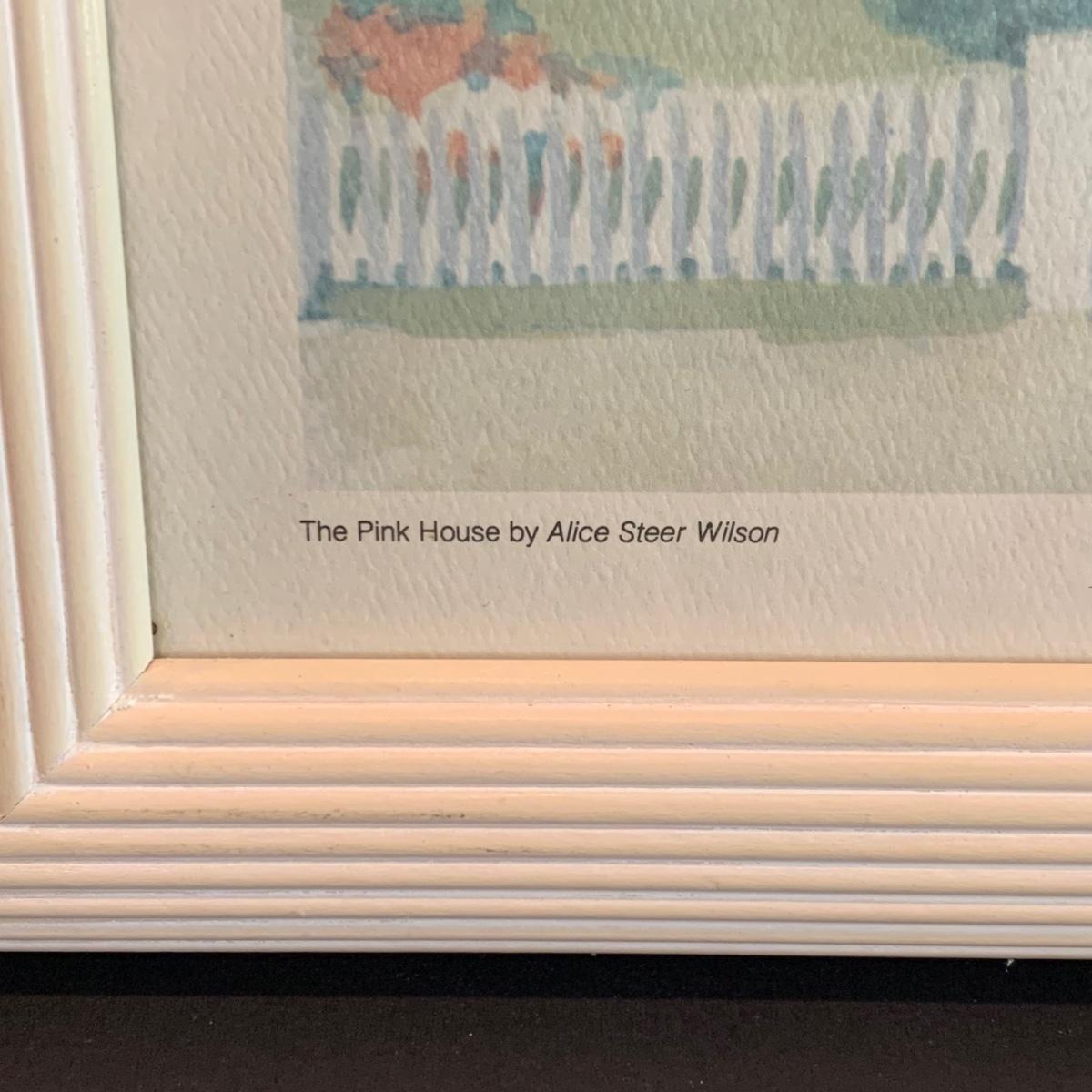 LOT 32R: Stained Glass Mirrored Candle Holder, Framed & Signed Print, "The Pink House" Print, Porcelain Rose & More