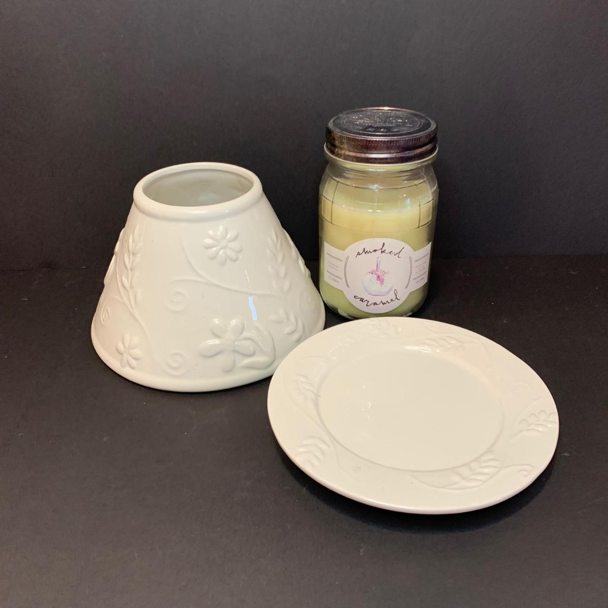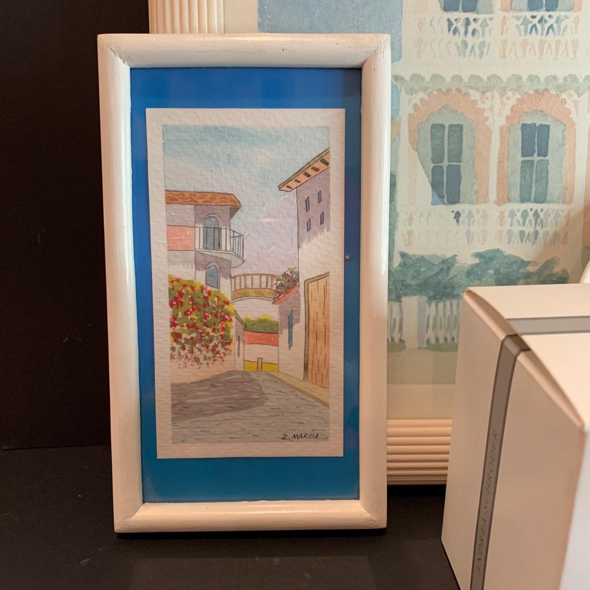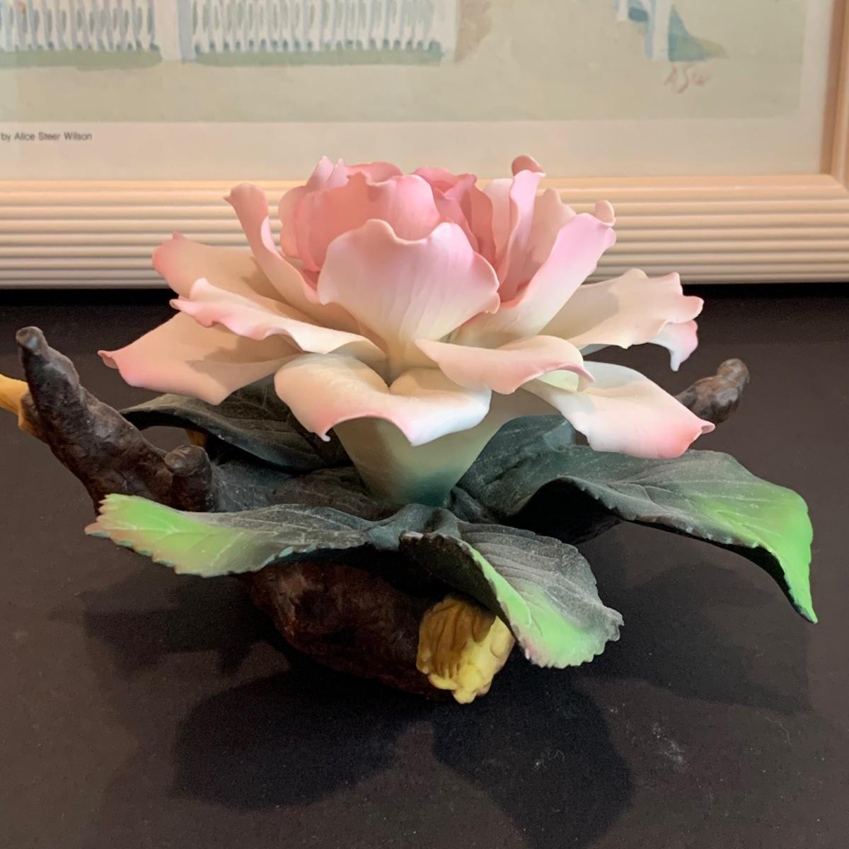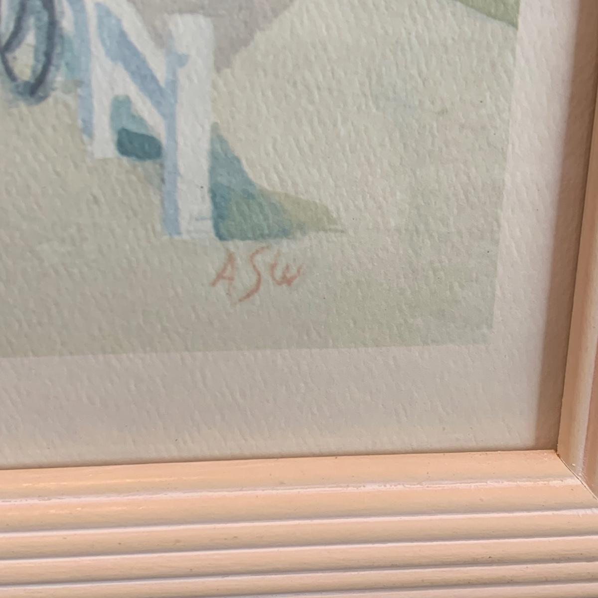 LOT 32R: Stained Glass Mirrored Candle Holder, Framed & Signed Print, "The Pink House" Print, Porcelain Rose & More