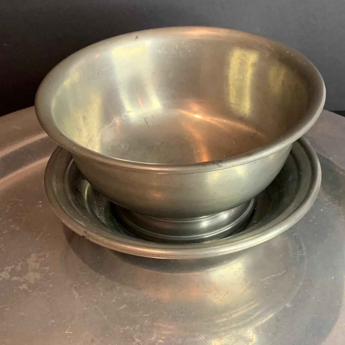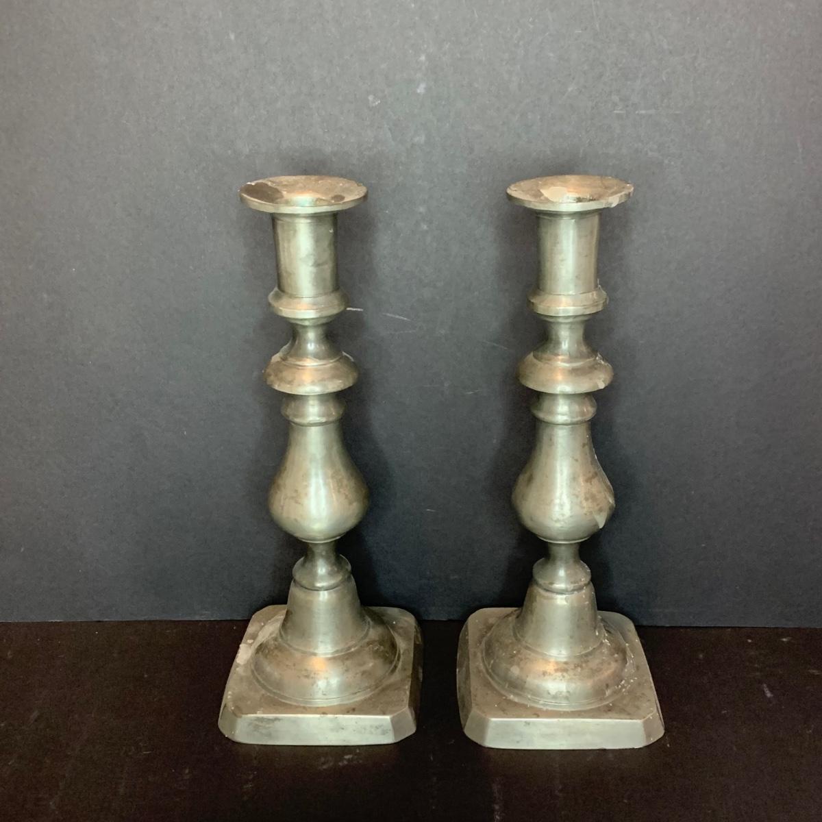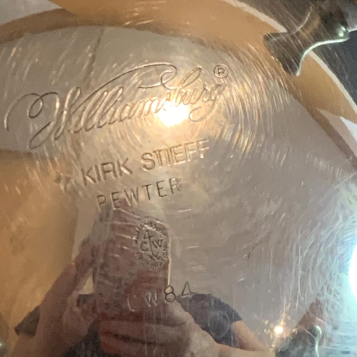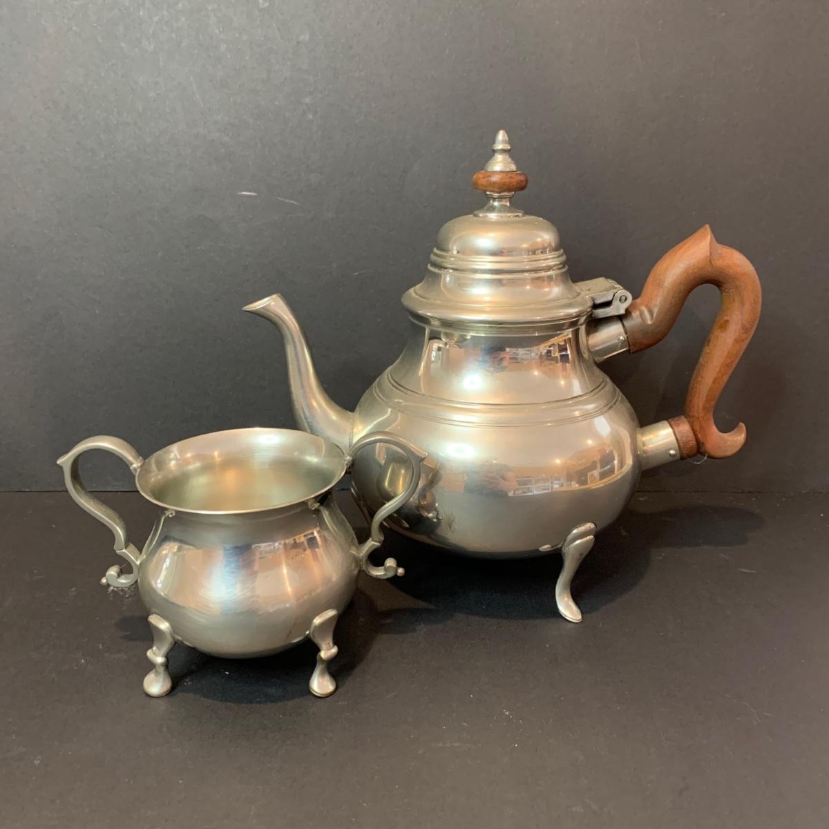 LOT 38R: Vintage Williamsburg  Pewter Teapot & Sugar Bowl, Pewter Candlesticks, Platters etc.