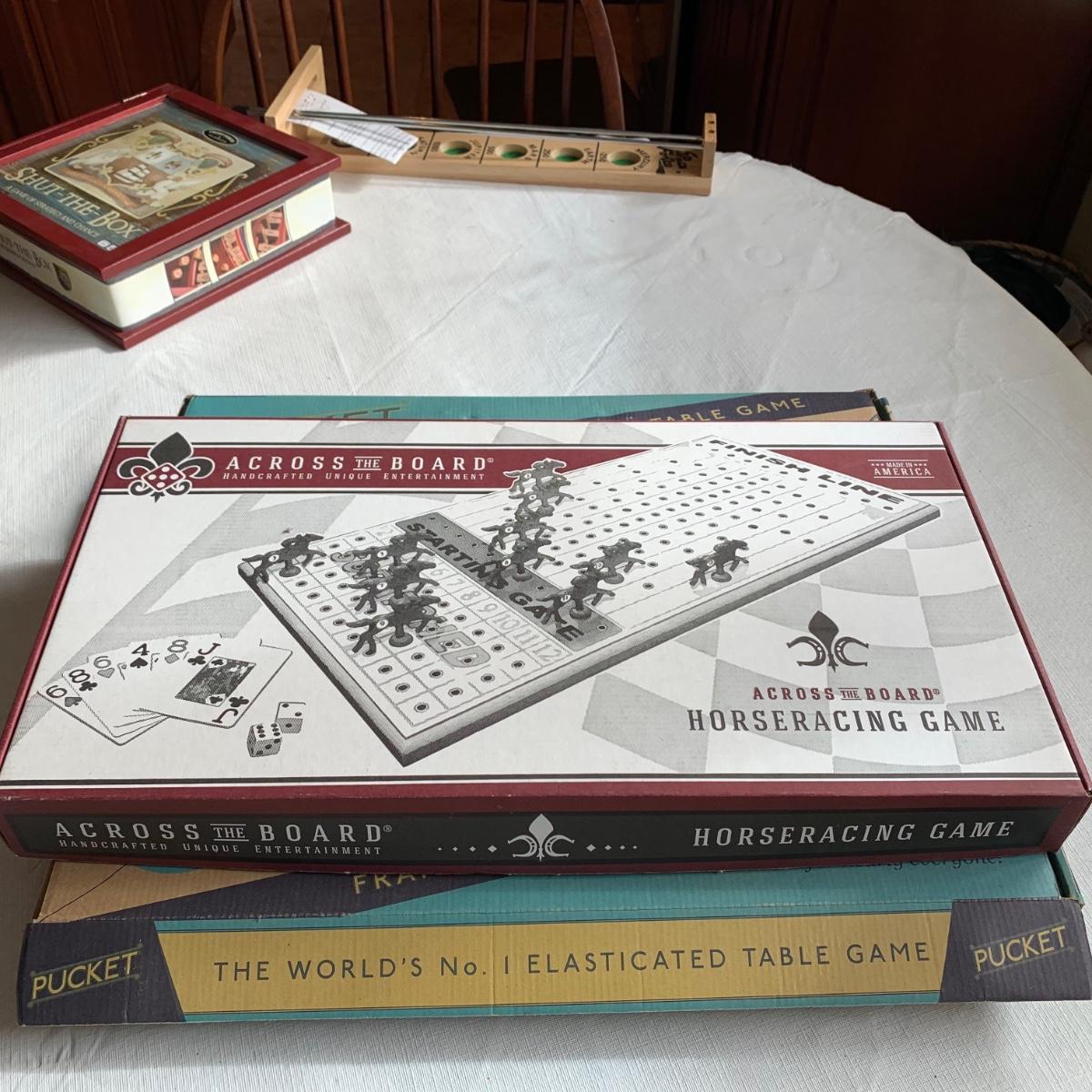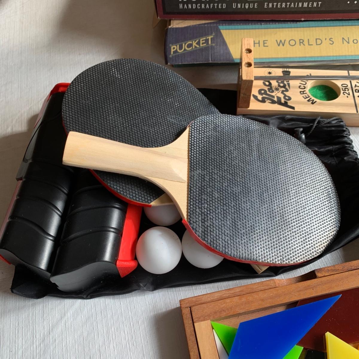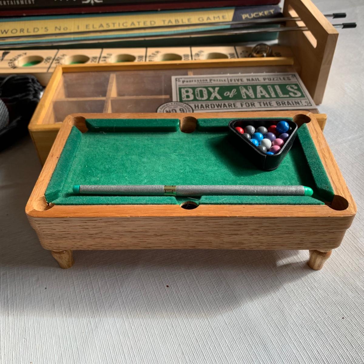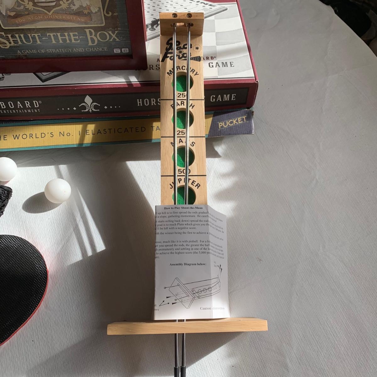 LOT 41R: Games: Shut-The-Box, ESPN Tabletop Ping Pong, Box of Nails, Across the Board, Stomachion Puzzle, Pucket & More