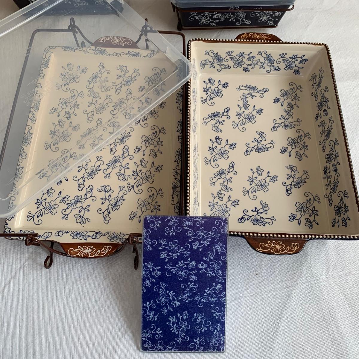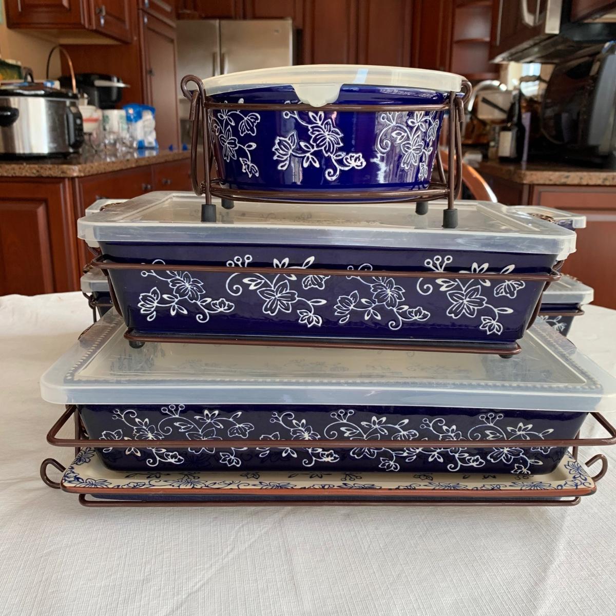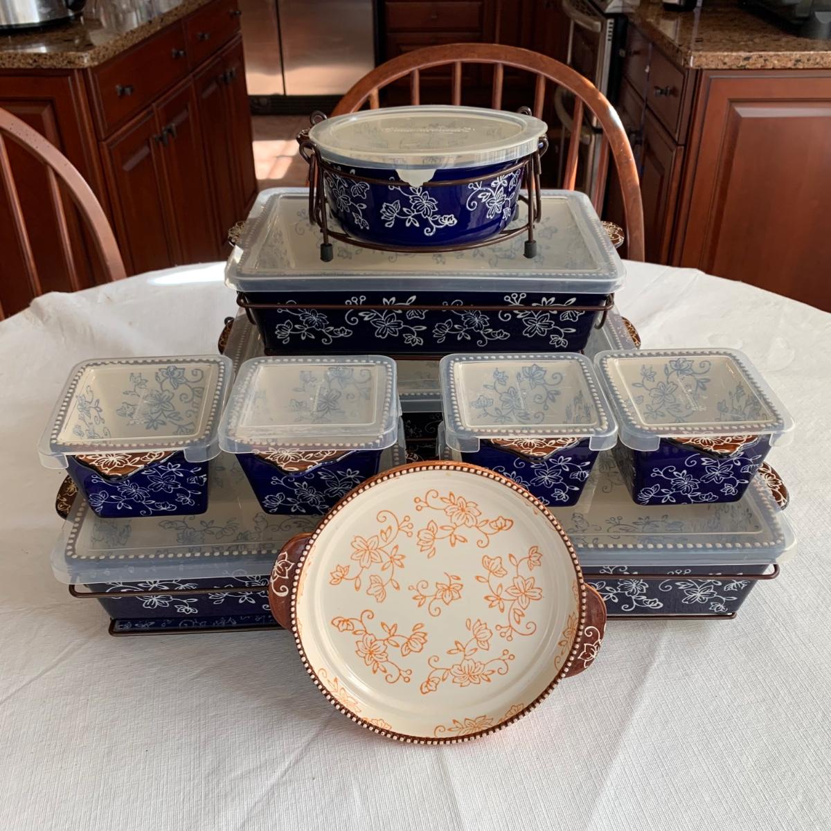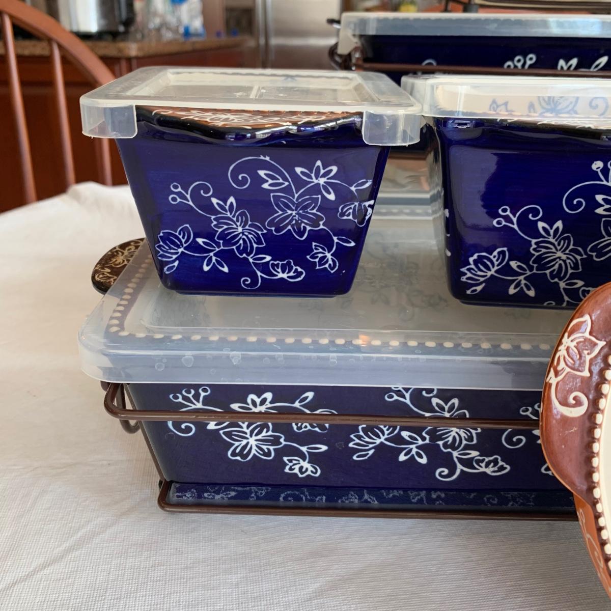 LOT 43R: Temptations Floral Lace Blue Casseroles w/Lids & More