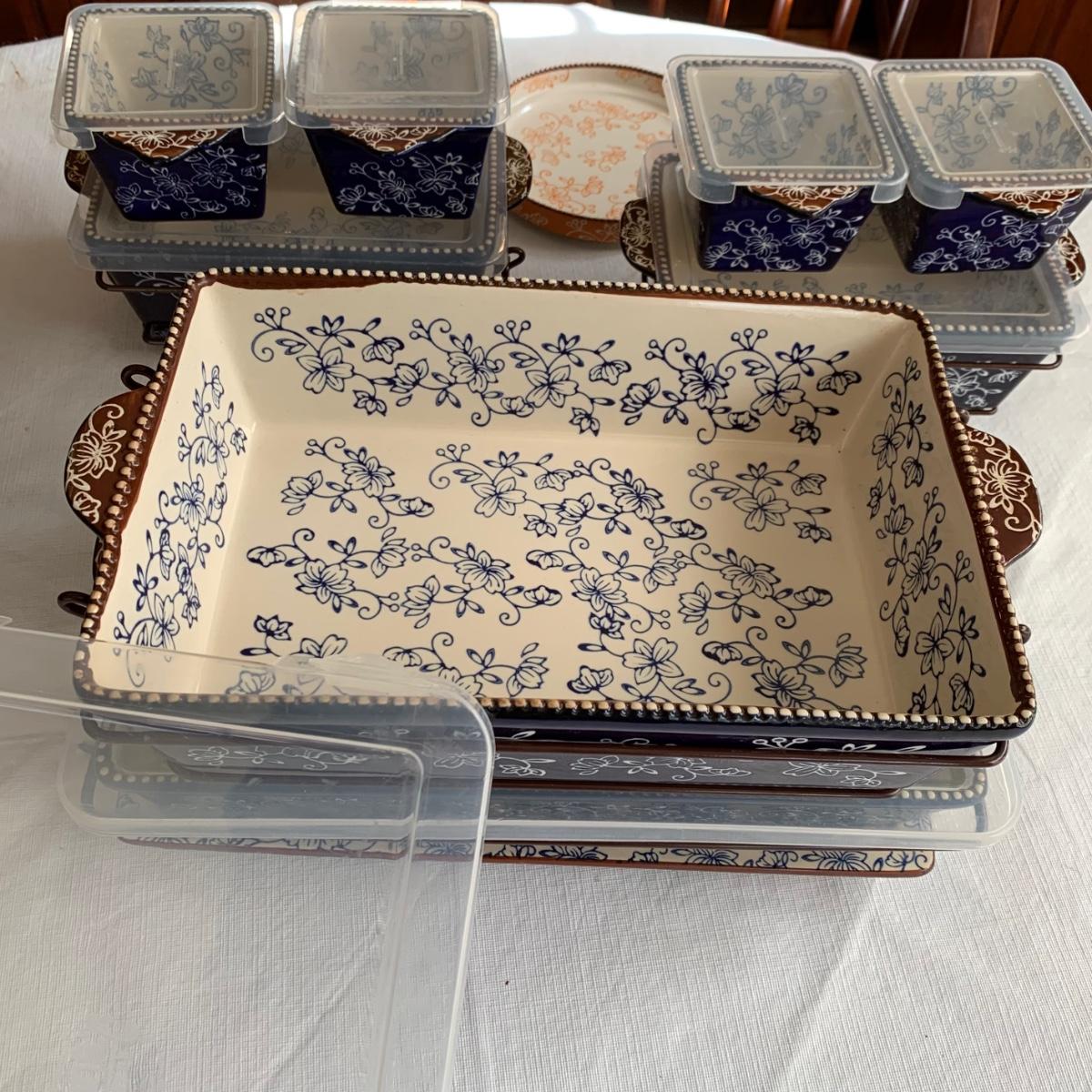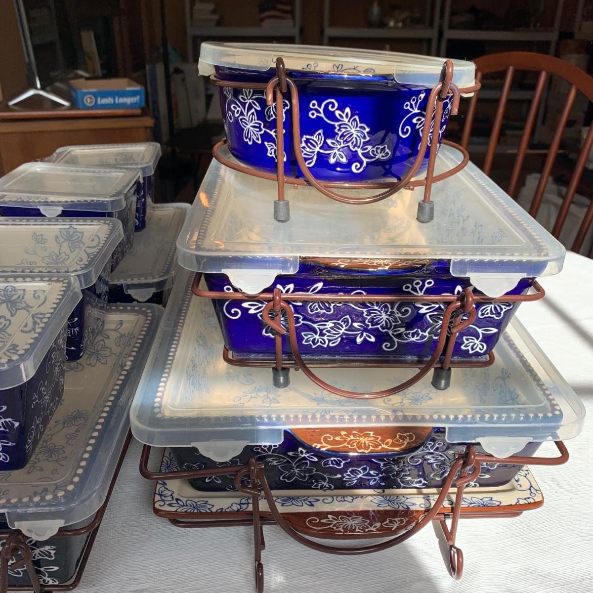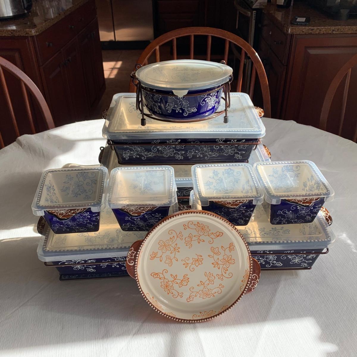 LOT 43R: Temptations Floral Lace Blue Casseroles w/Lids & More