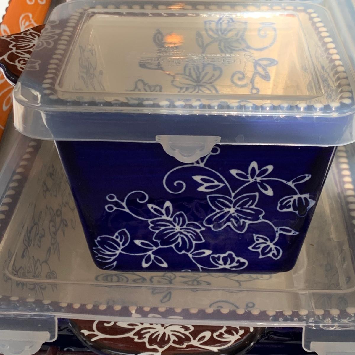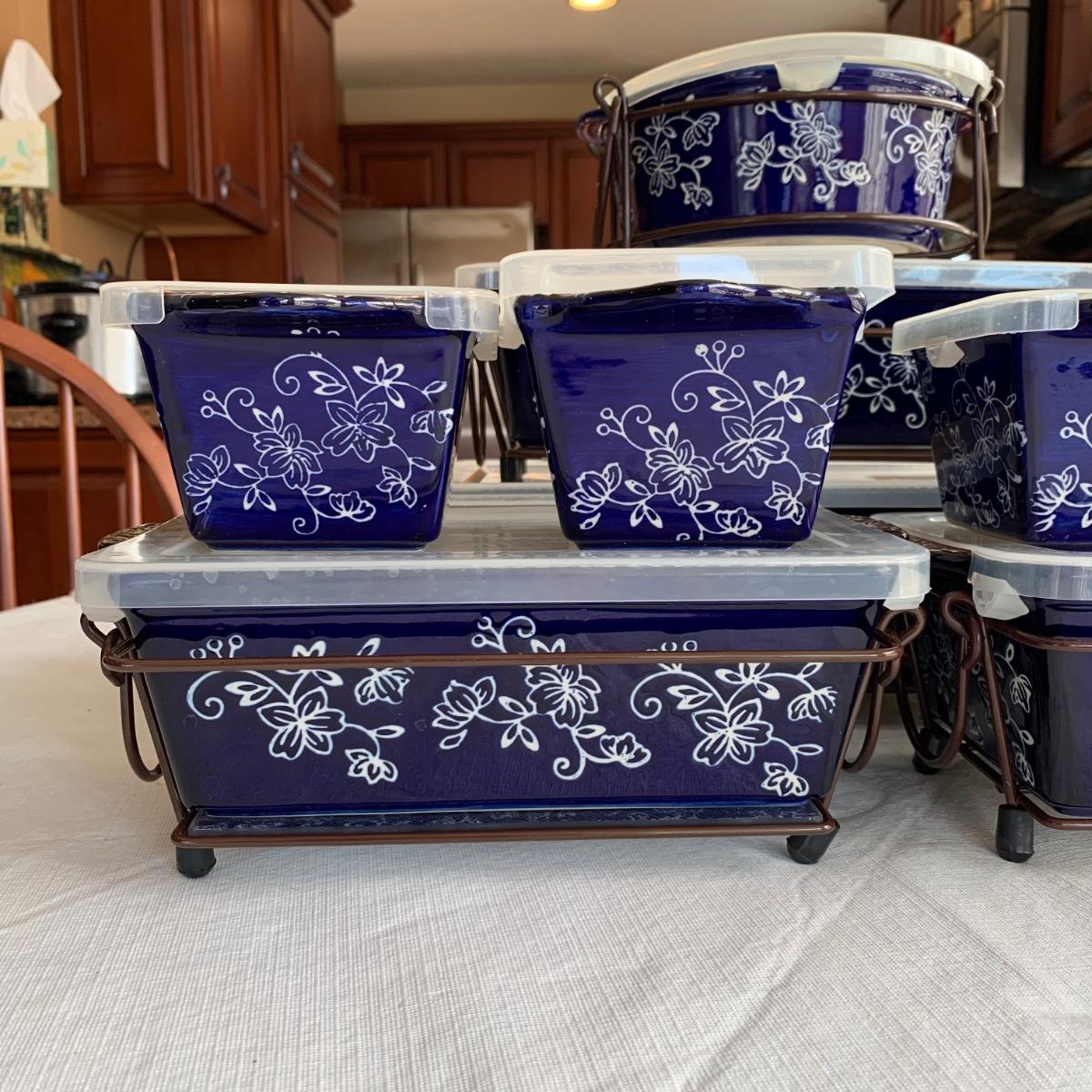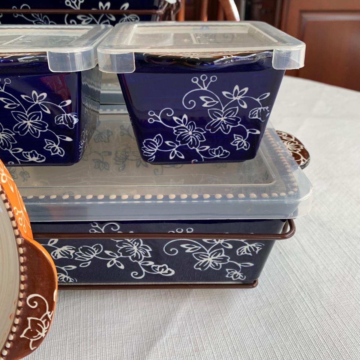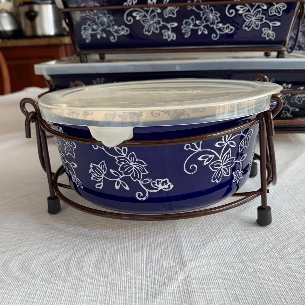 LOT 43R: Temptations Floral Lace Blue Casseroles w/Lids & More