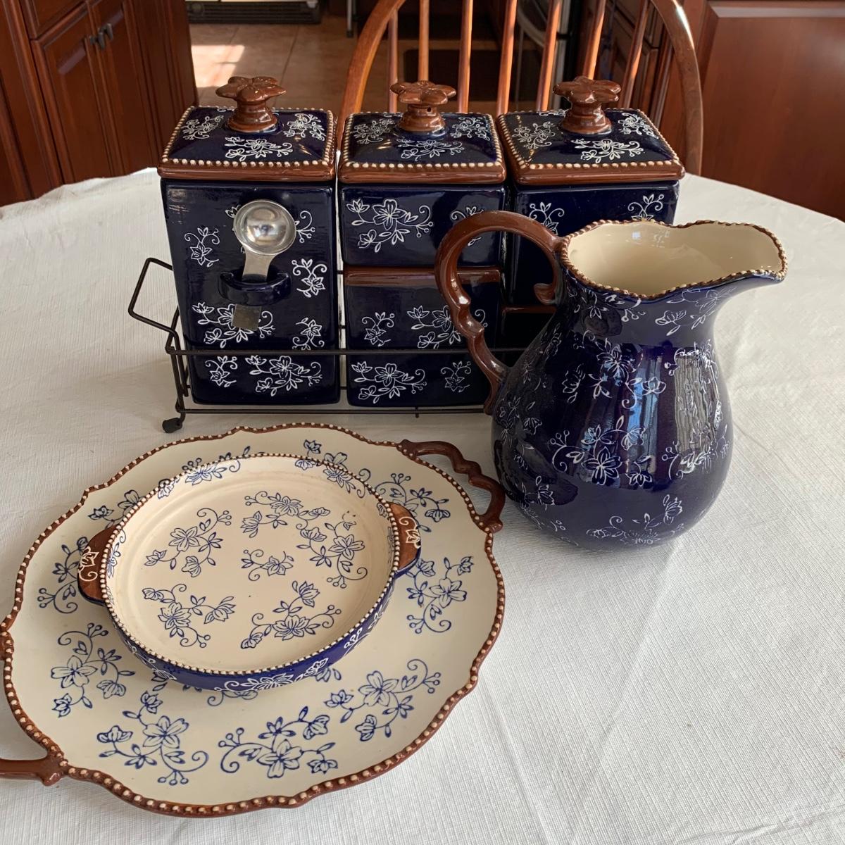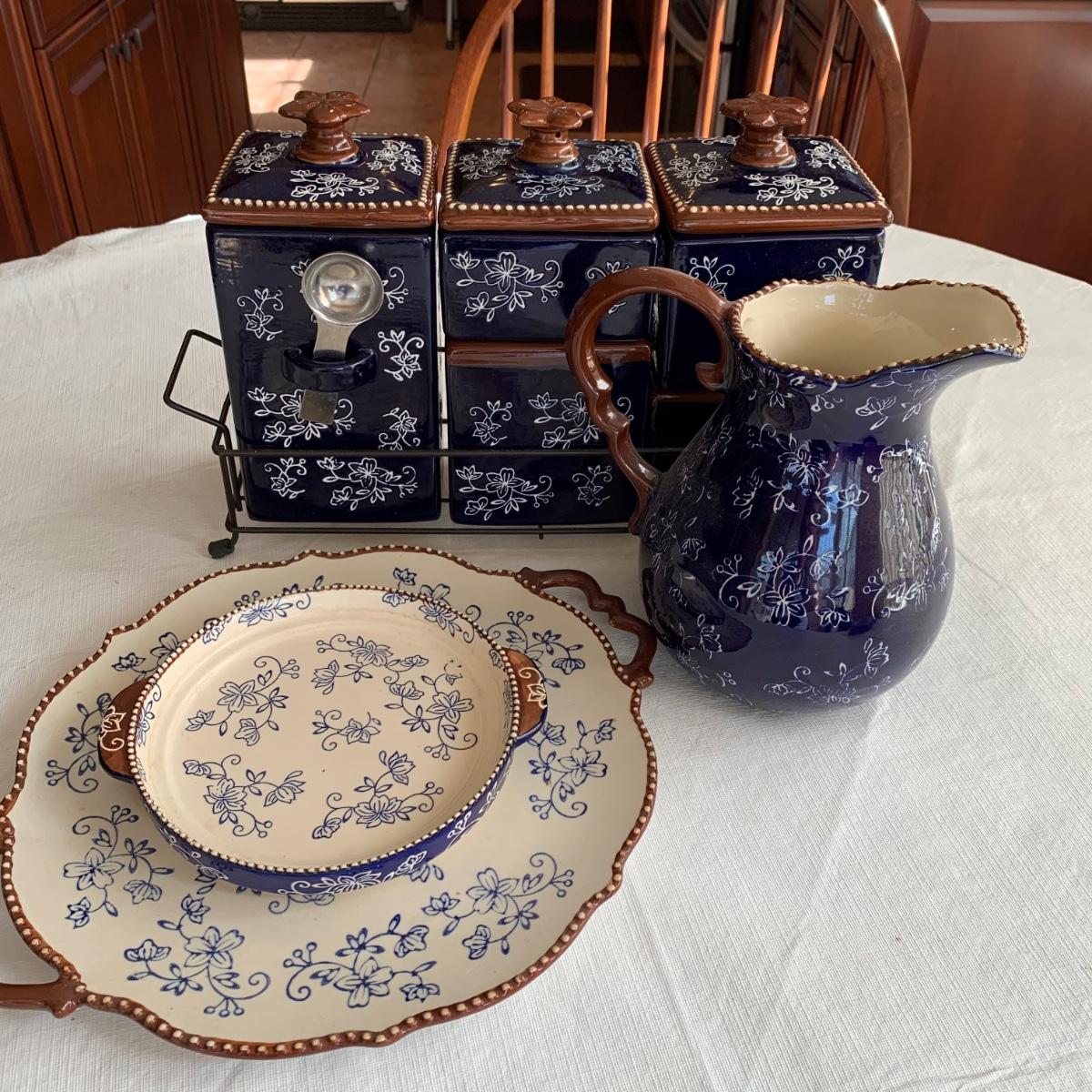 LOT 44R: Temptations Floral Lace Pitcher, Canister Set & More
