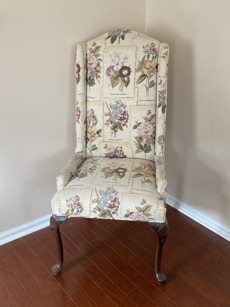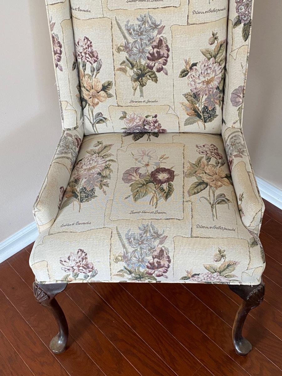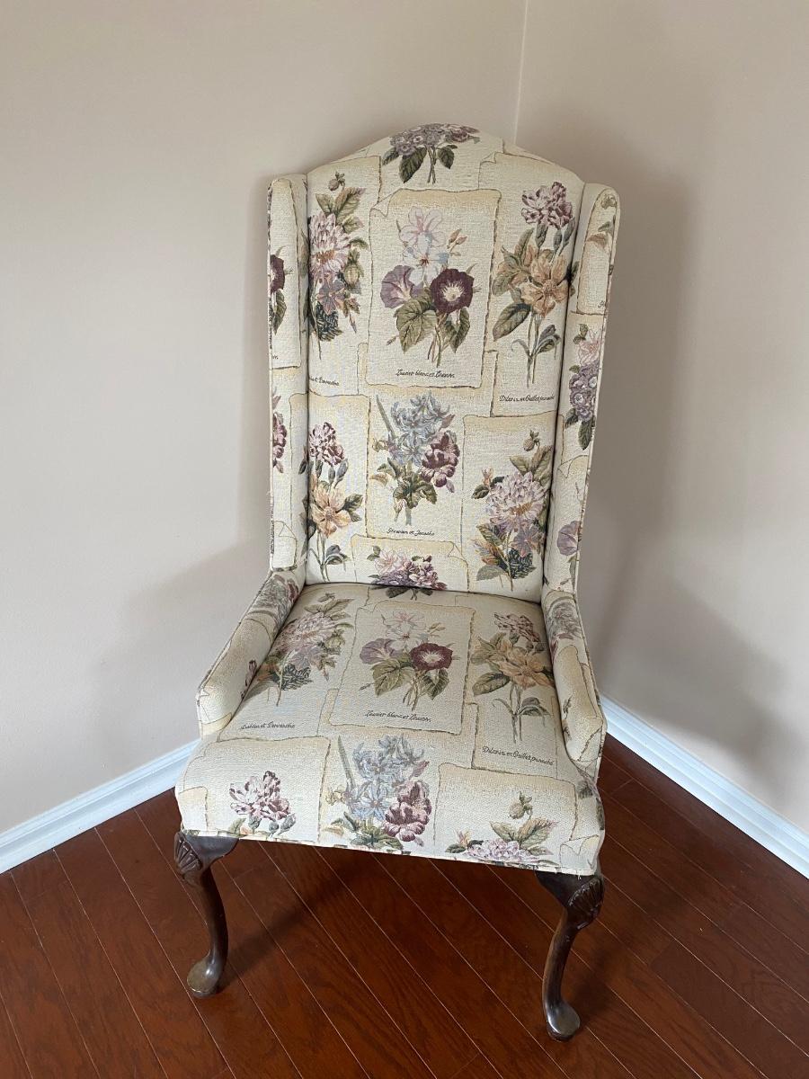 44” Floral Accent Chair in good Used condition. Please see all pictures as they are the best representation of the items. The pictures show condition, measurements if taken, and what is included in the lot. Due to the large amount that we photograph and the time frame, we are not always able to take measurements. All items unless noted, are pre-owned and have been used. If you purchased furniture, you must bring help. We do not allow one person to carry large furniture out on their own. Bring help, tools and a truck for the safety of our client’s homes, and your personal safety. Any damages that result to the property including walls, and floors due to moving of the furniture will be charged to the buyer. Company policy. Thank you.