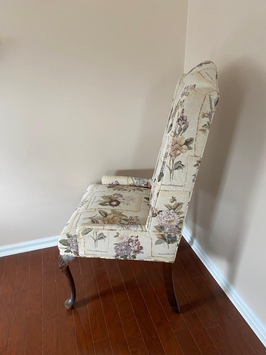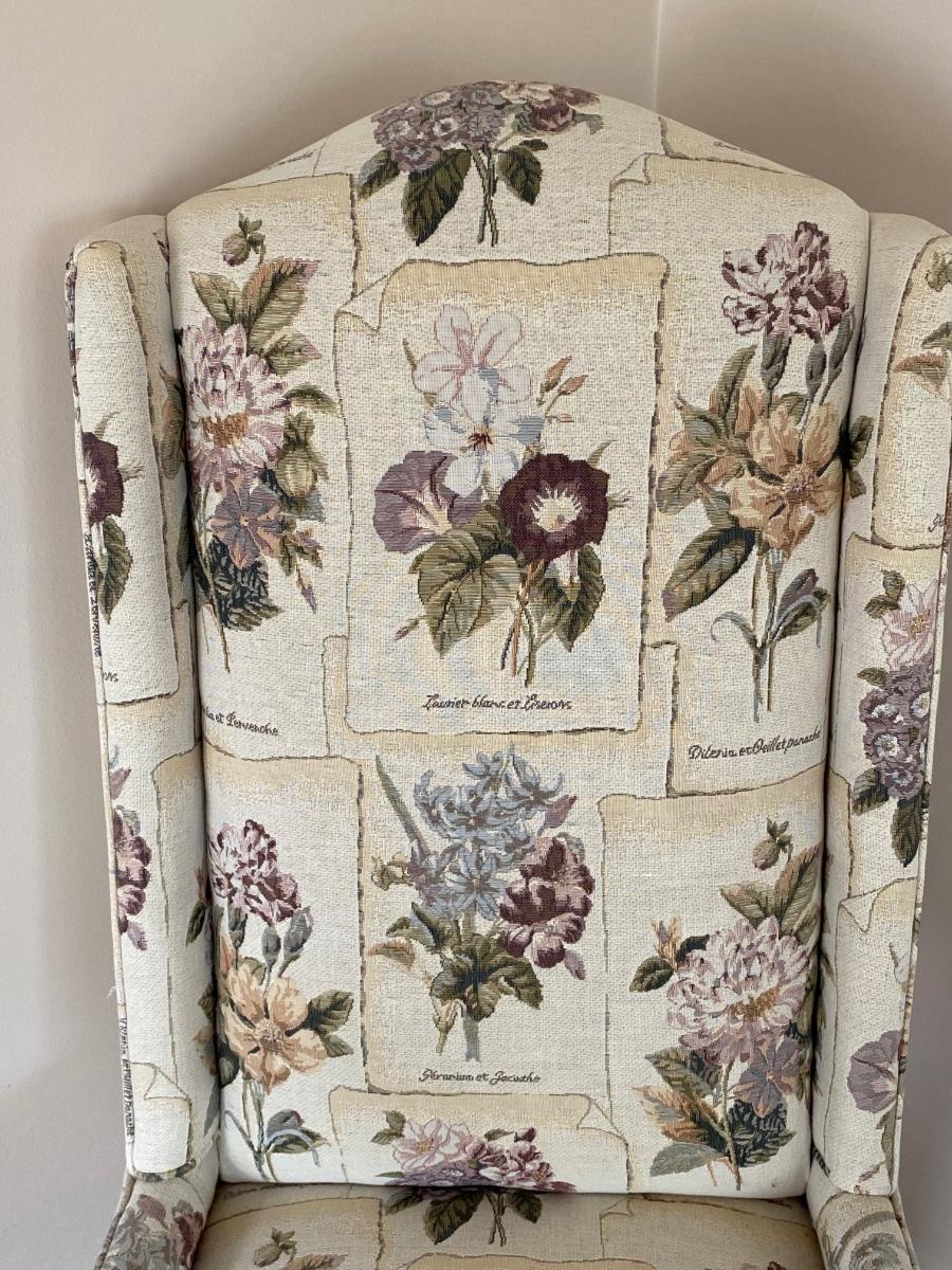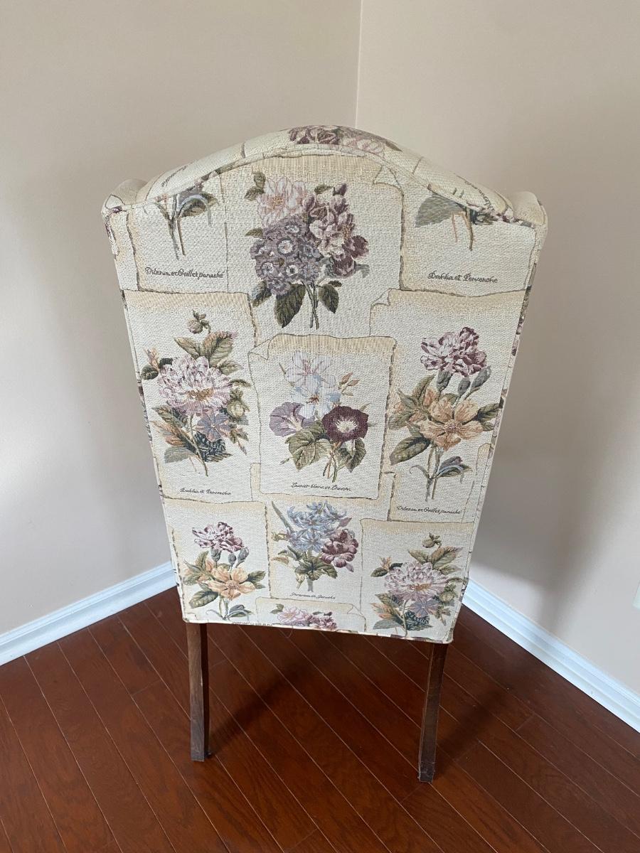44” Floral Accent Chair in good Used condition. Please see all pictures as they are the best representation of the items. The pictures show condition, measurements if taken, and what is included in the lot. Due to the large amount that we photograph and the time frame, we are not always able to take measurements. All items unless noted, are pre-owned and have been used. If you purchased furniture, you must bring help. We do not allow one person to carry large furniture out on their own. Bring help, tools and a truck for the safety of our client’s homes, and your personal safety. Any damages that result to the property including walls, and floors due to moving of the furniture will be charged to the buyer. Company policy. Thank you.