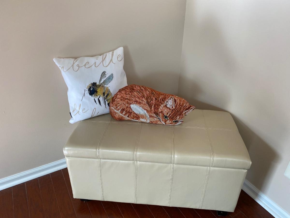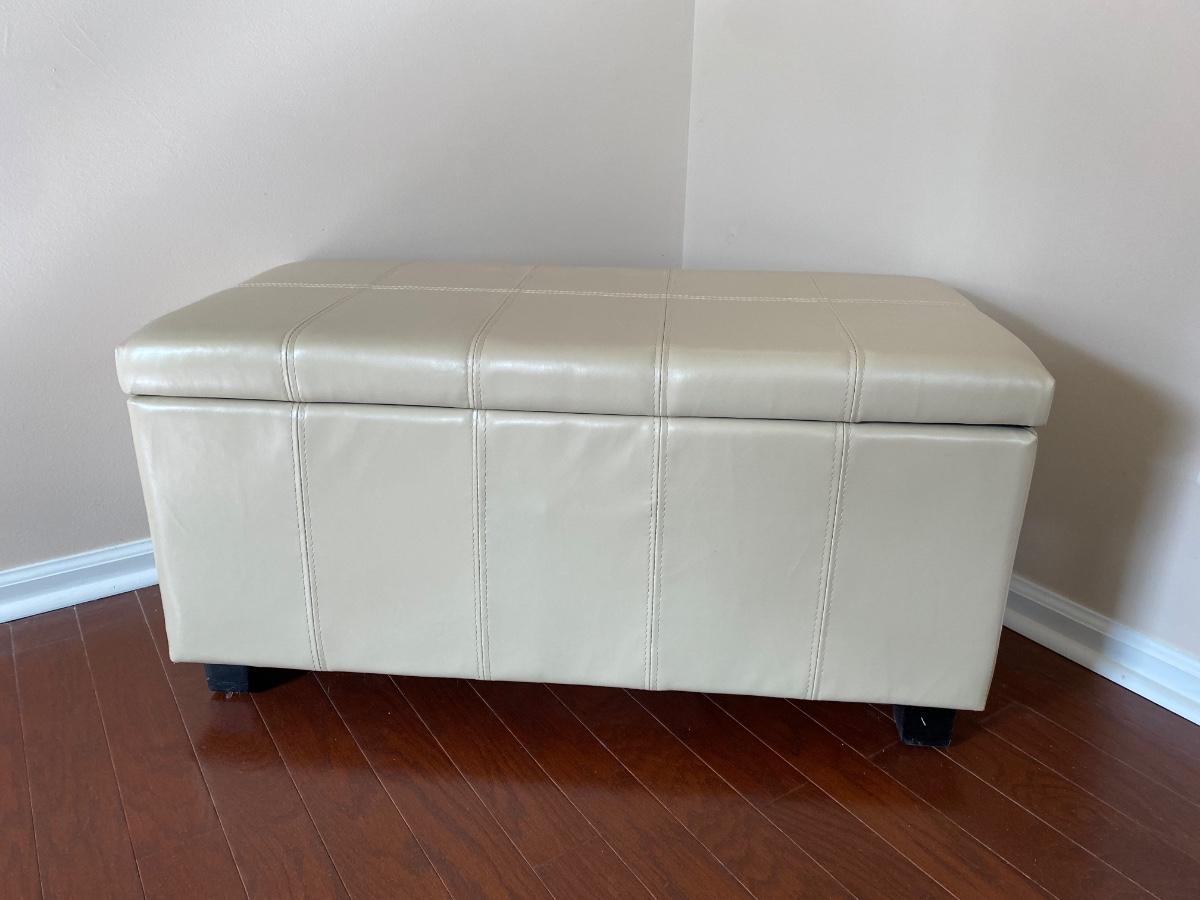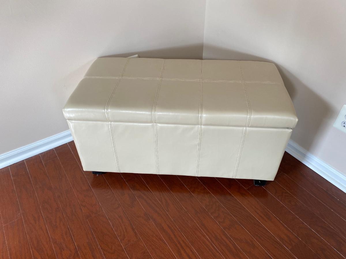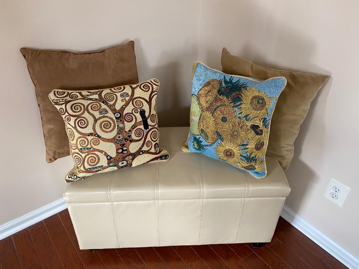 35”x 18”x 18” Ottoman. Accent pillows and throw blankets.
