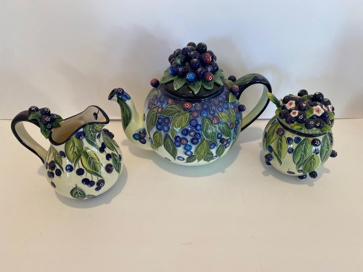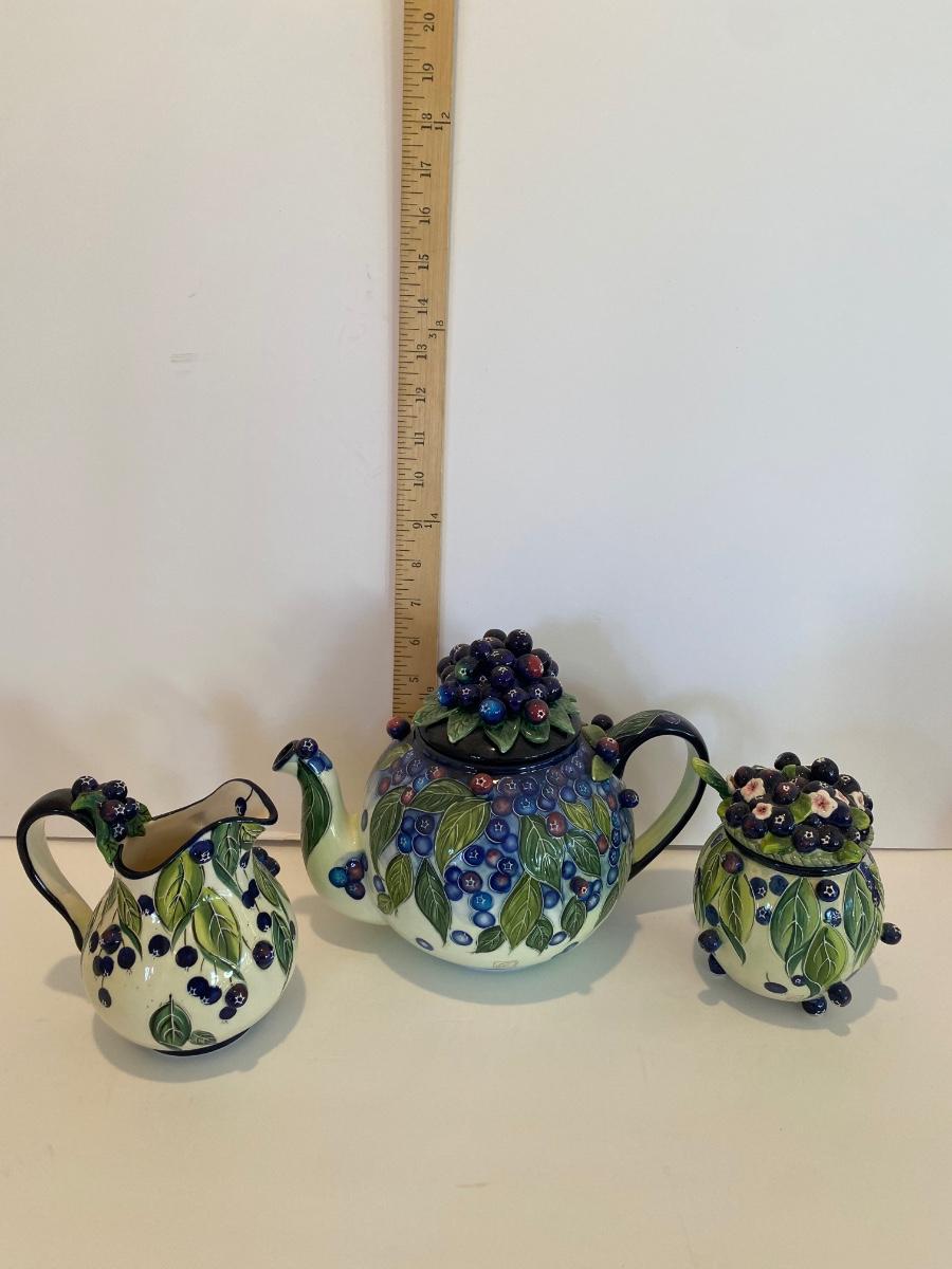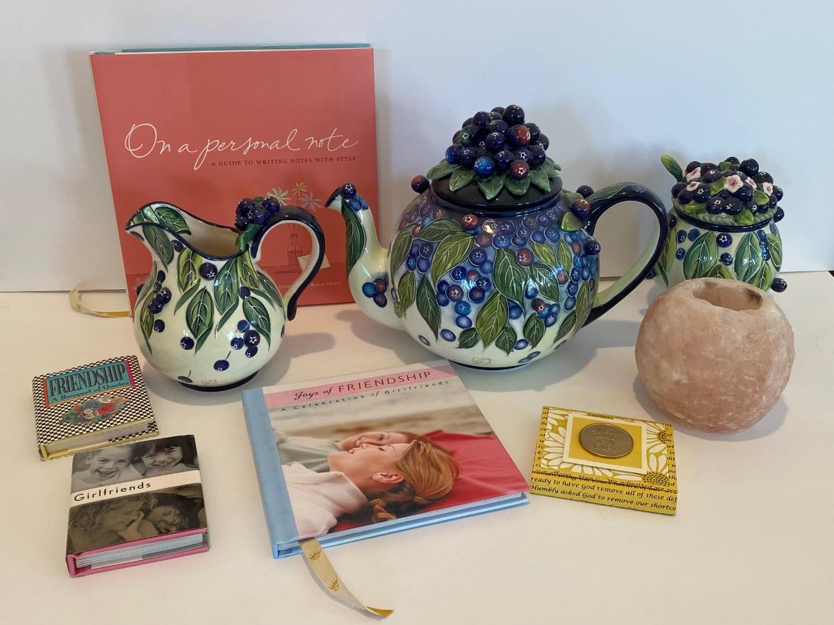 LOT 94C: Blueberry Tea set, Salt Candle Holder and Books
