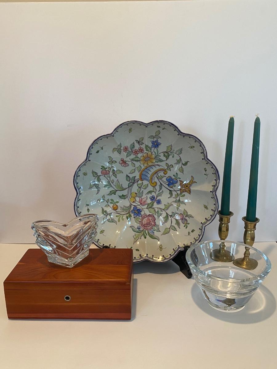LOT 95C: Lane Cedar Box, Decorative Bowl Glass, Candle Sticks and More