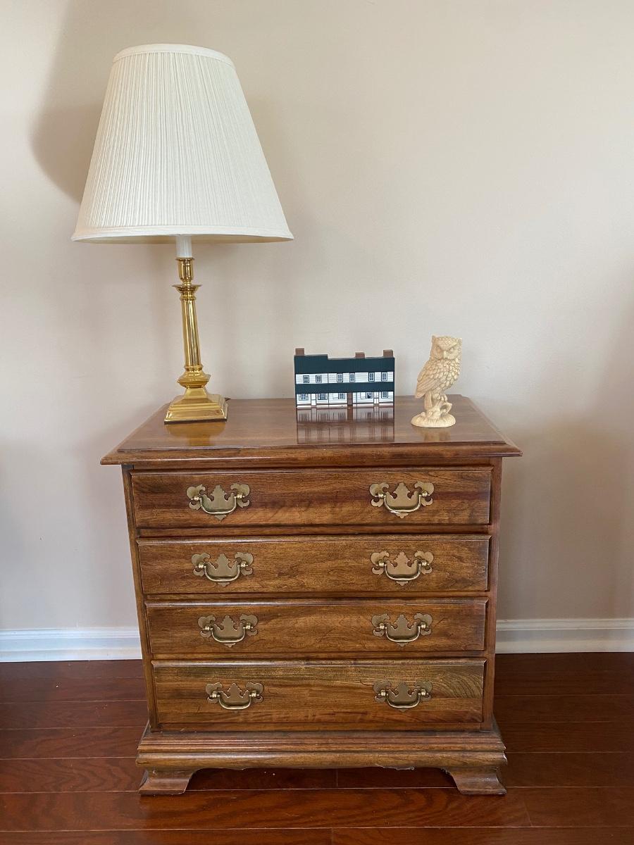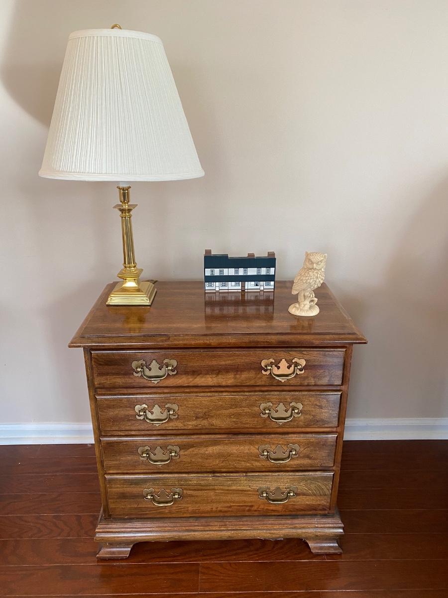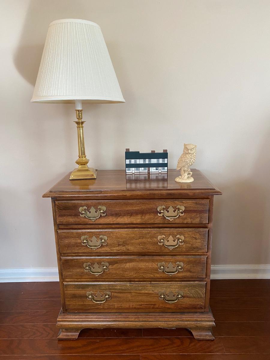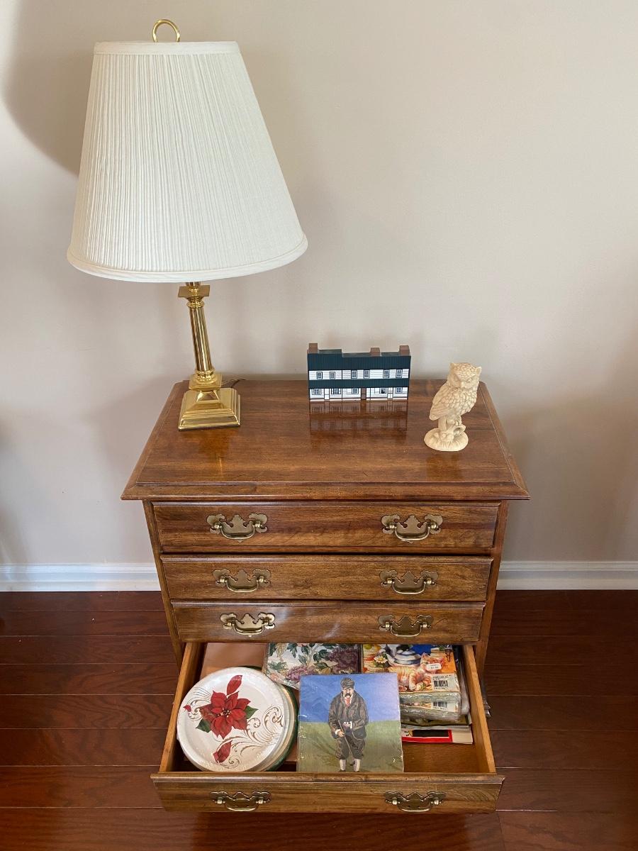 LOT 101C: Chest of Drawers Accent/End Table, Alabaster Owl, The Cat's Meow: Barnsboro Inn