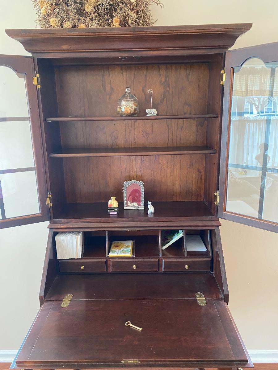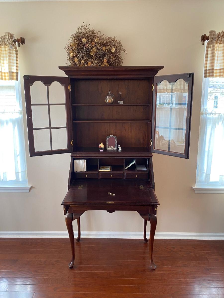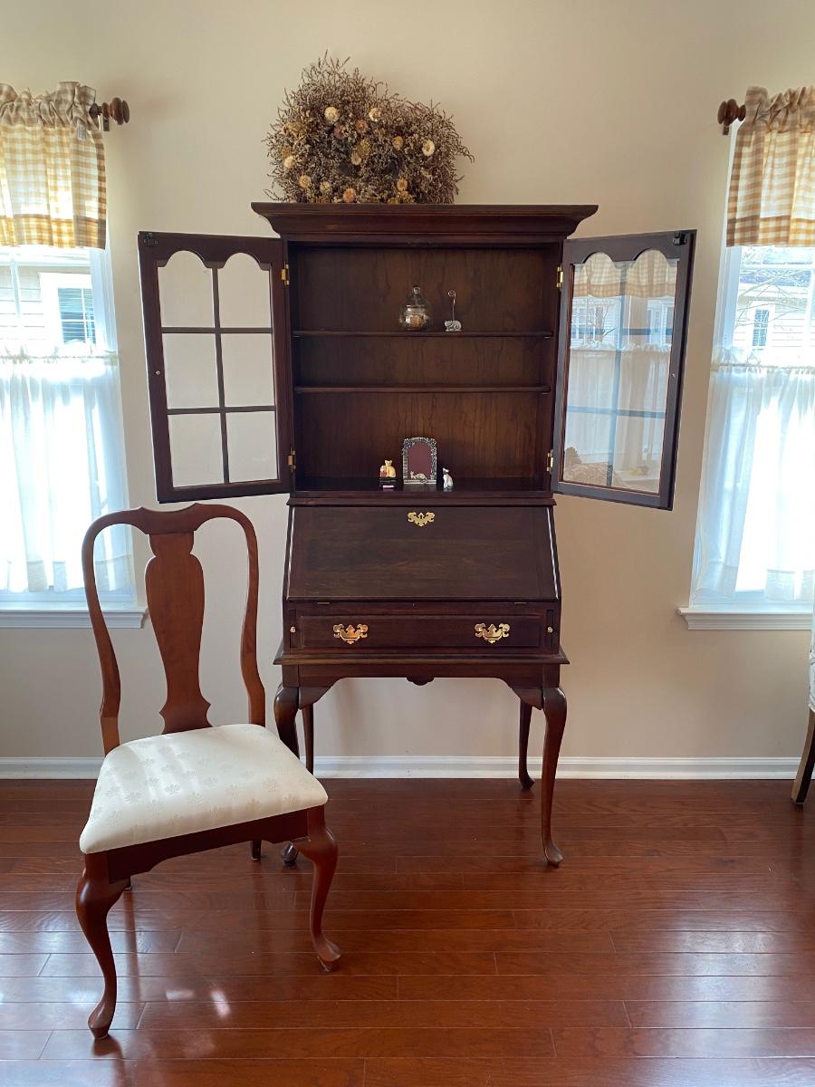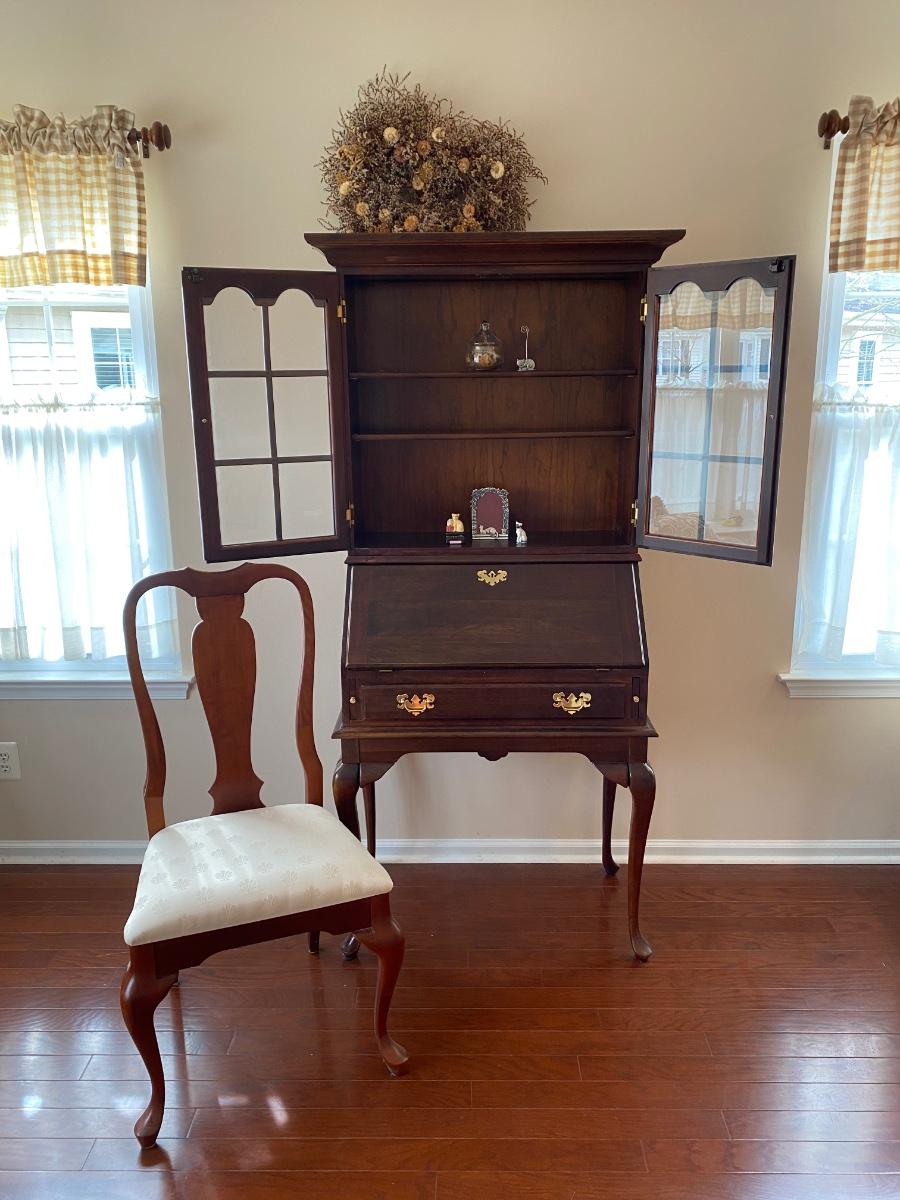 LOT 102: Queen Anne Style Secretary Desk w/Bookcase & Queen Anne Style Chair