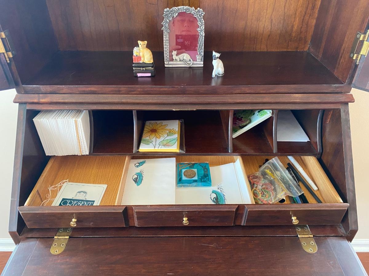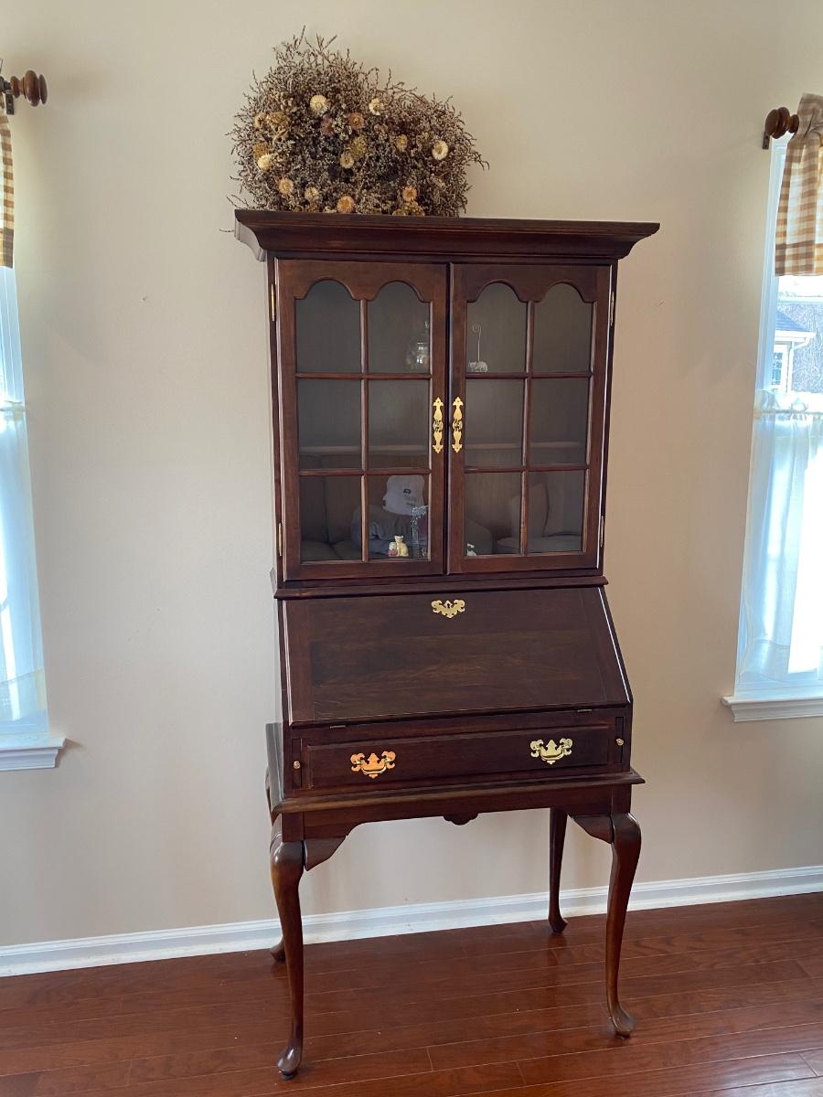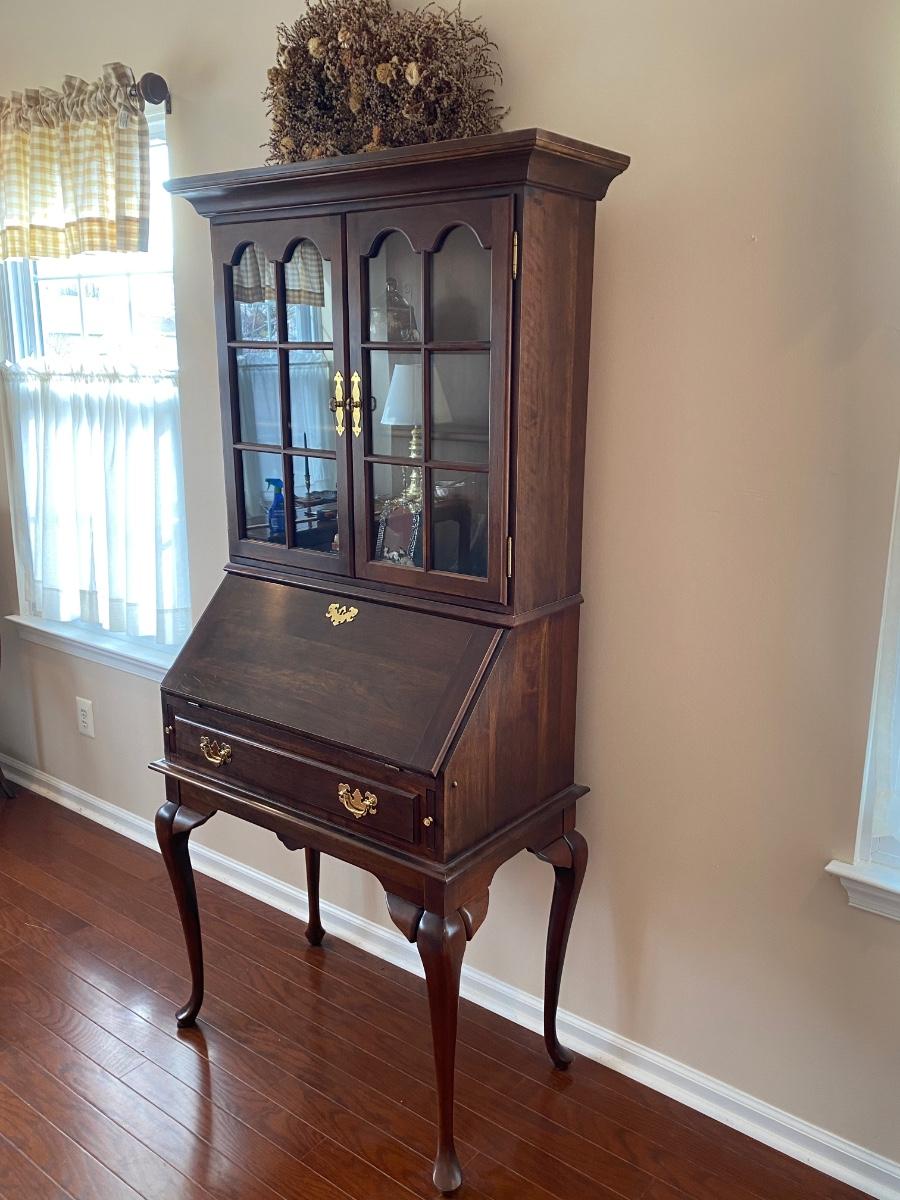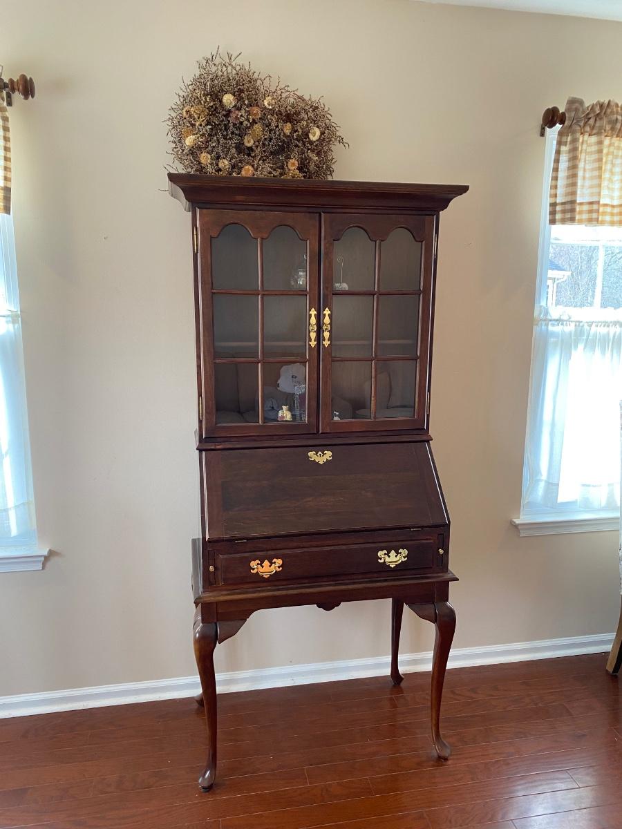 LOT 102: Queen Anne Style Secretary Desk w/Bookcase & Queen Anne Style Chair