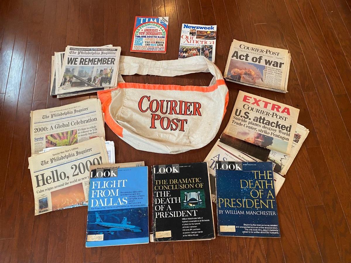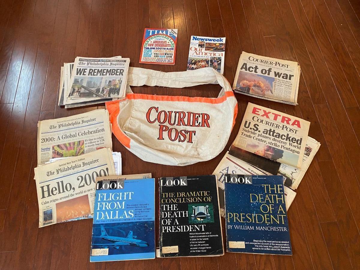 LOT 103: Vintage Courier Post Newspaper Carrier Bag & Vintage Newspapers