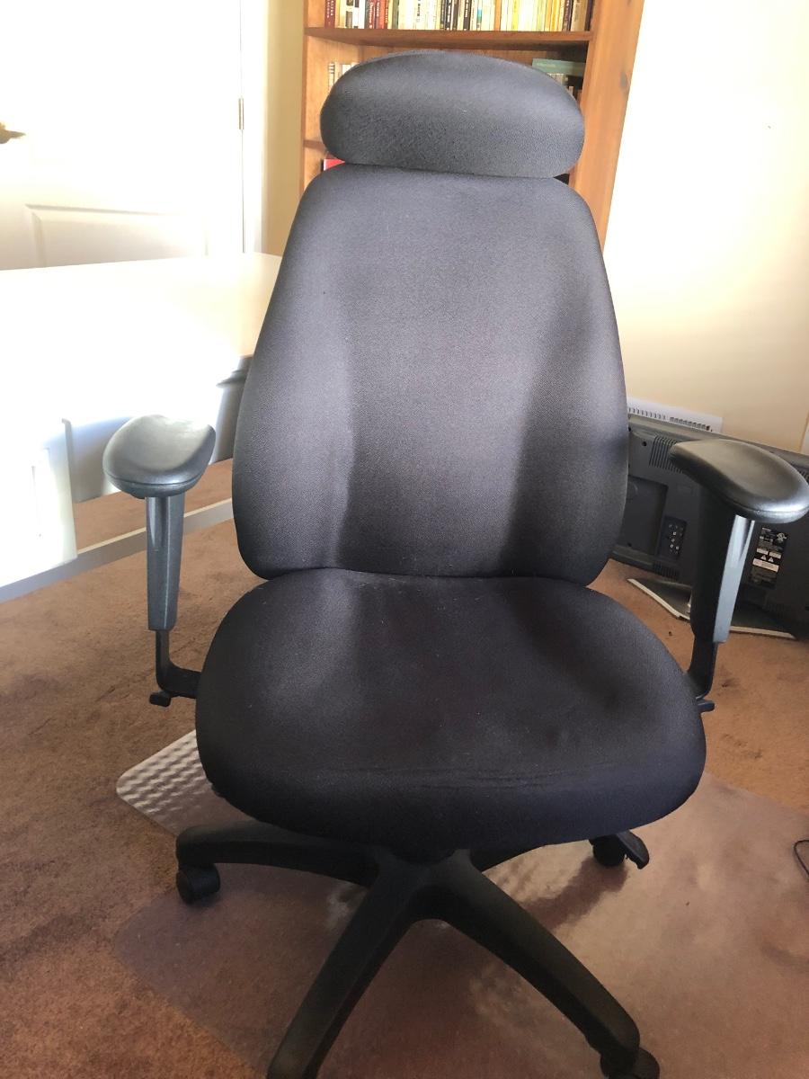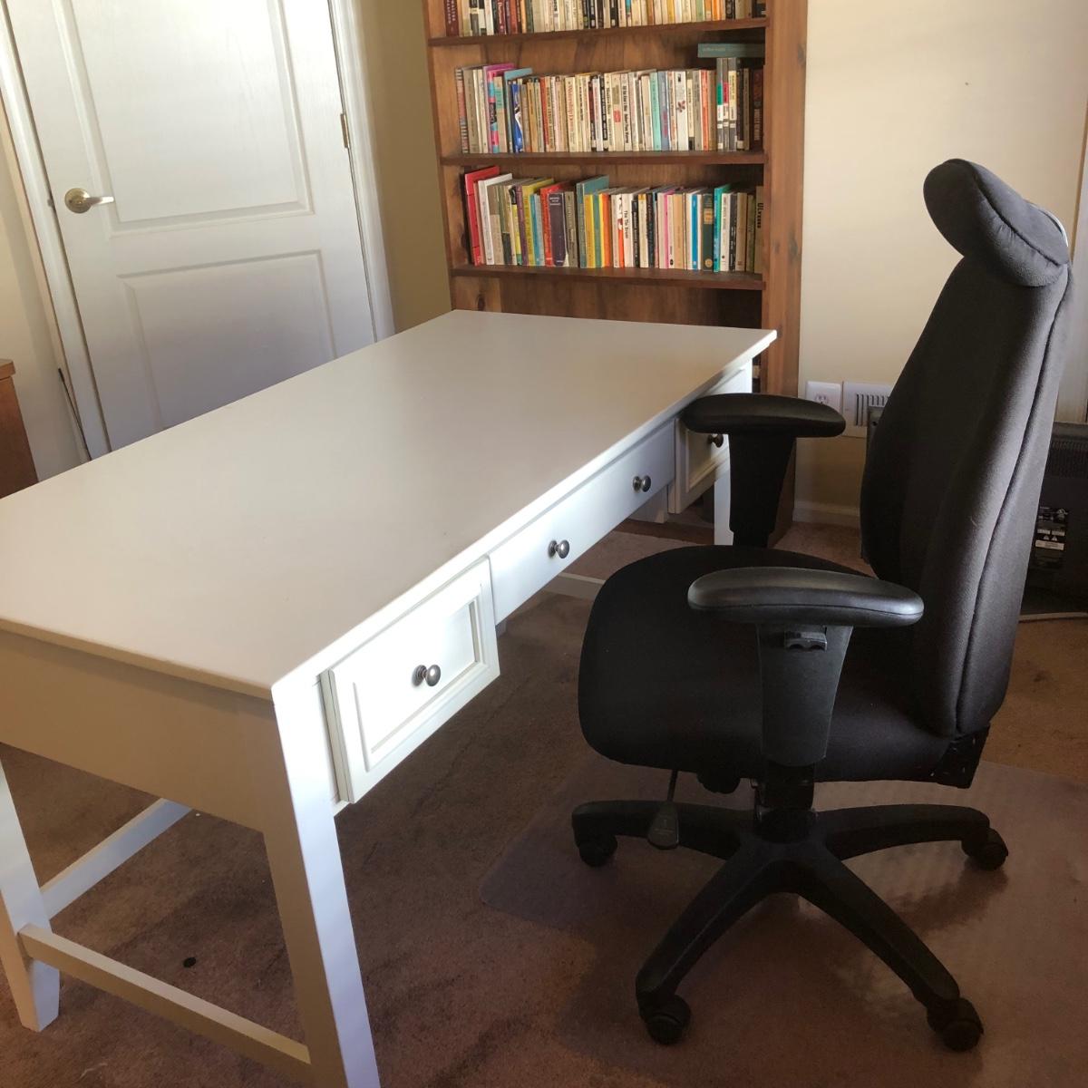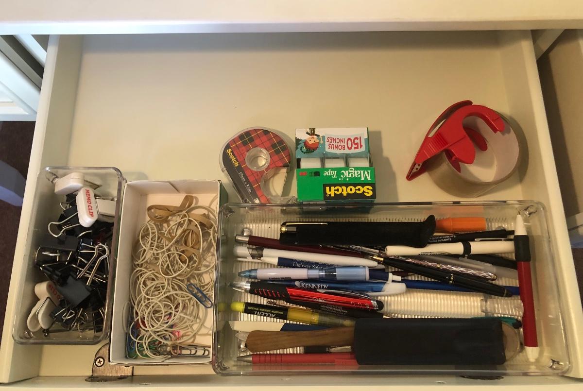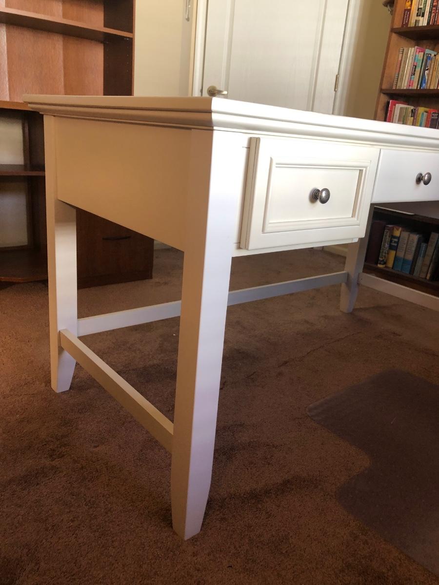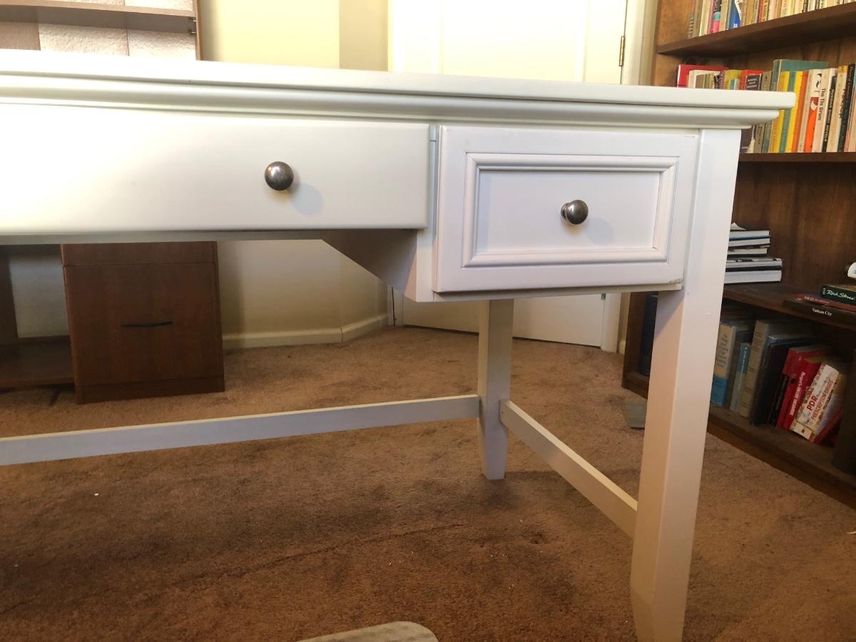 Includes drawers full of office supplies. Desk measures 54W x 28D x 29H and chair measures 29W x 20D x 44H,