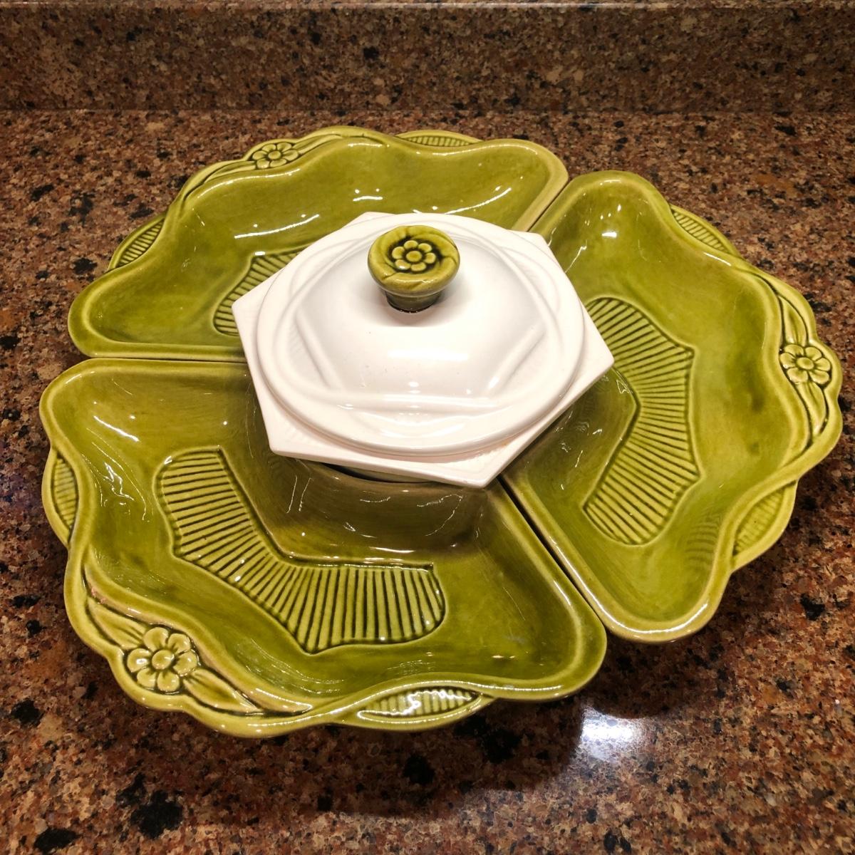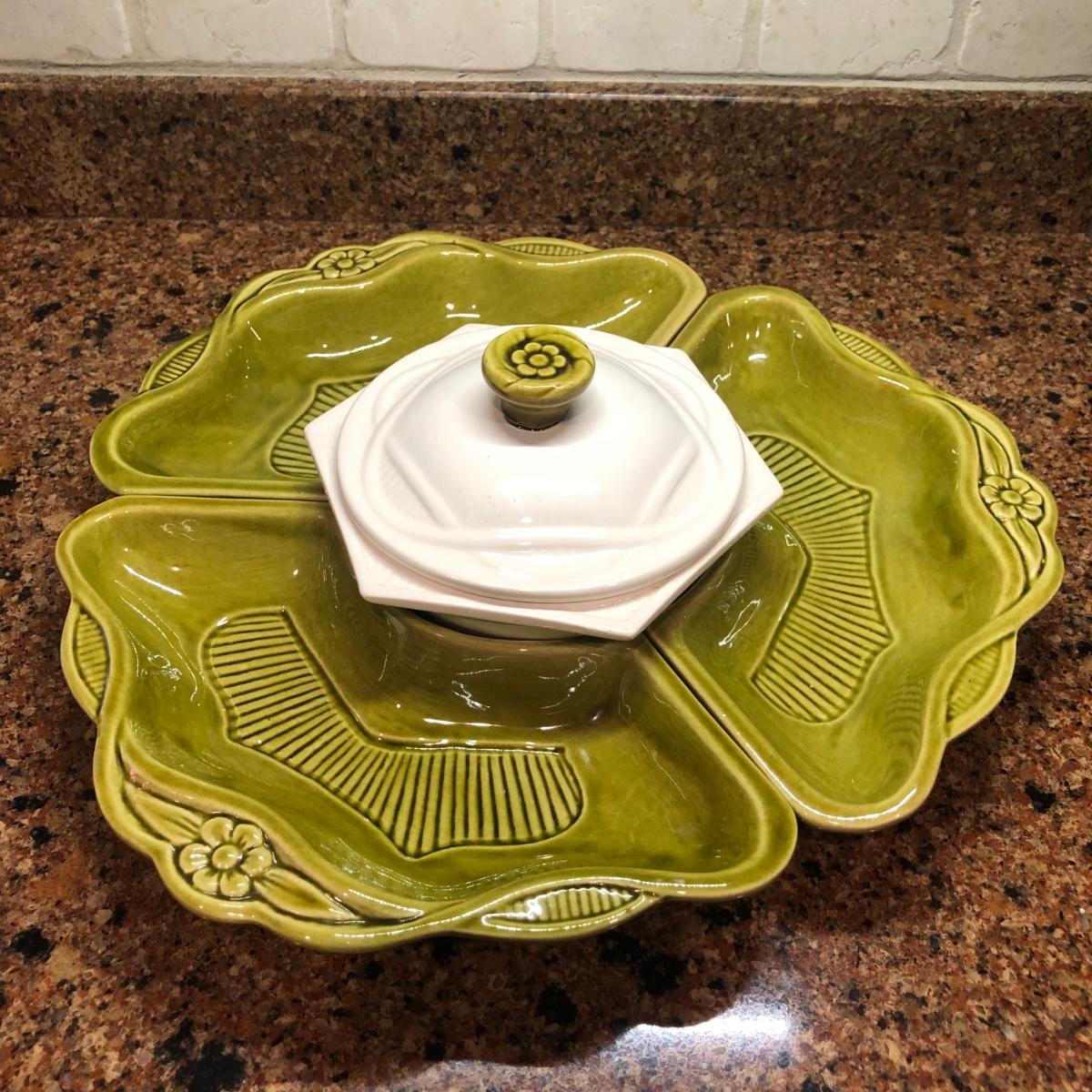 LOT132M: Green California Serving Dish Set & Hand Painted Limoges Plates