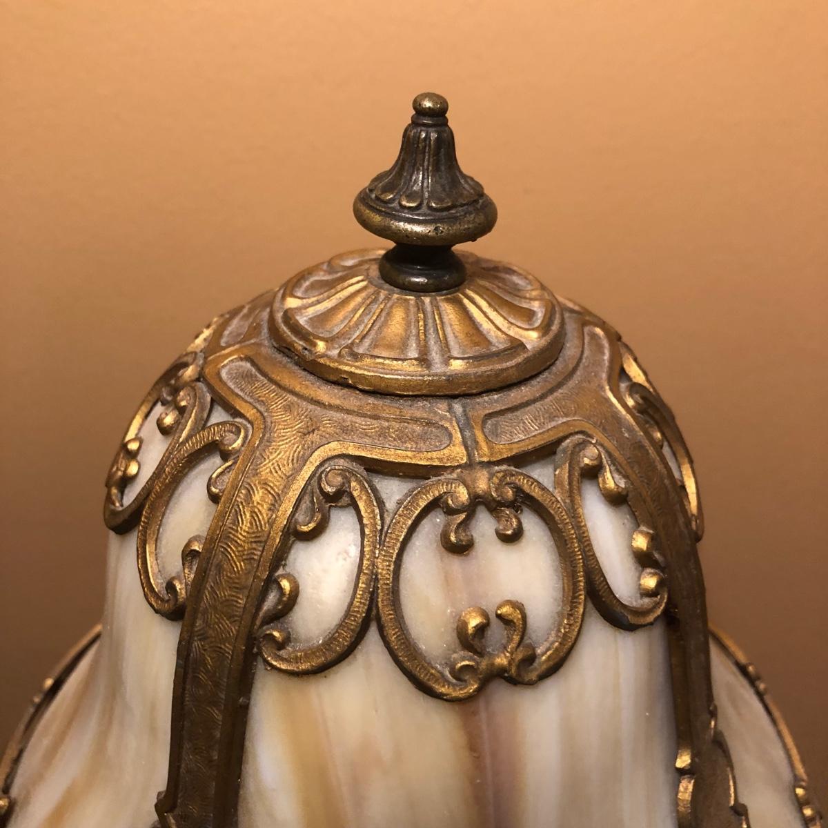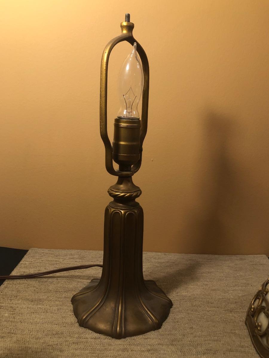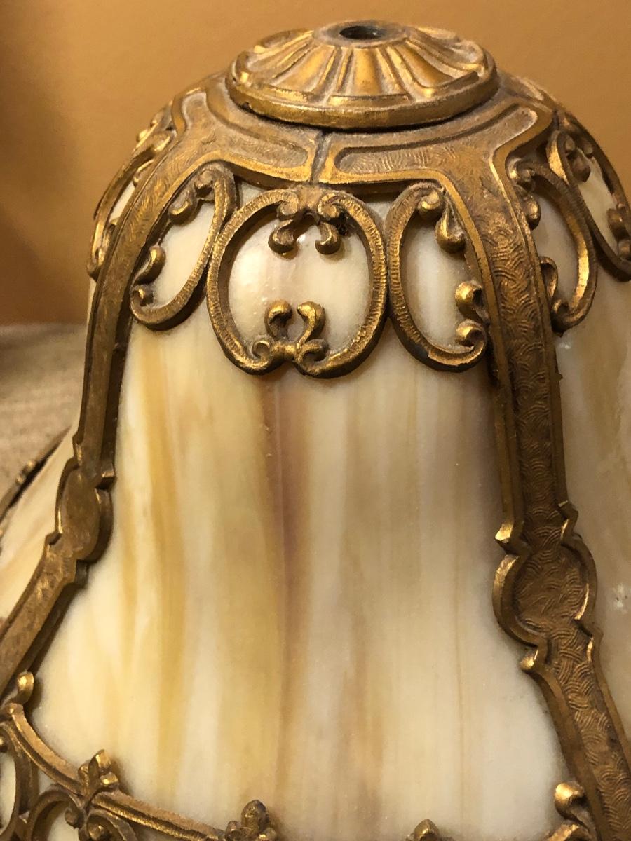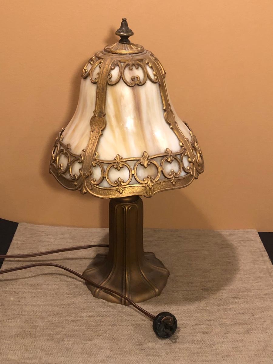 LOT134M: Antique Brass Lamp w/ Stained Glass Shade
