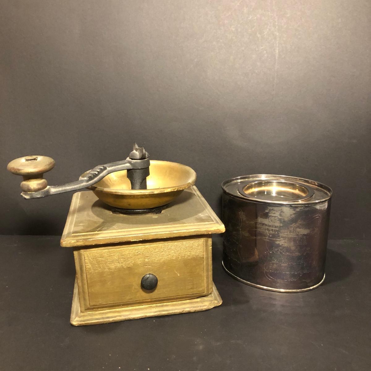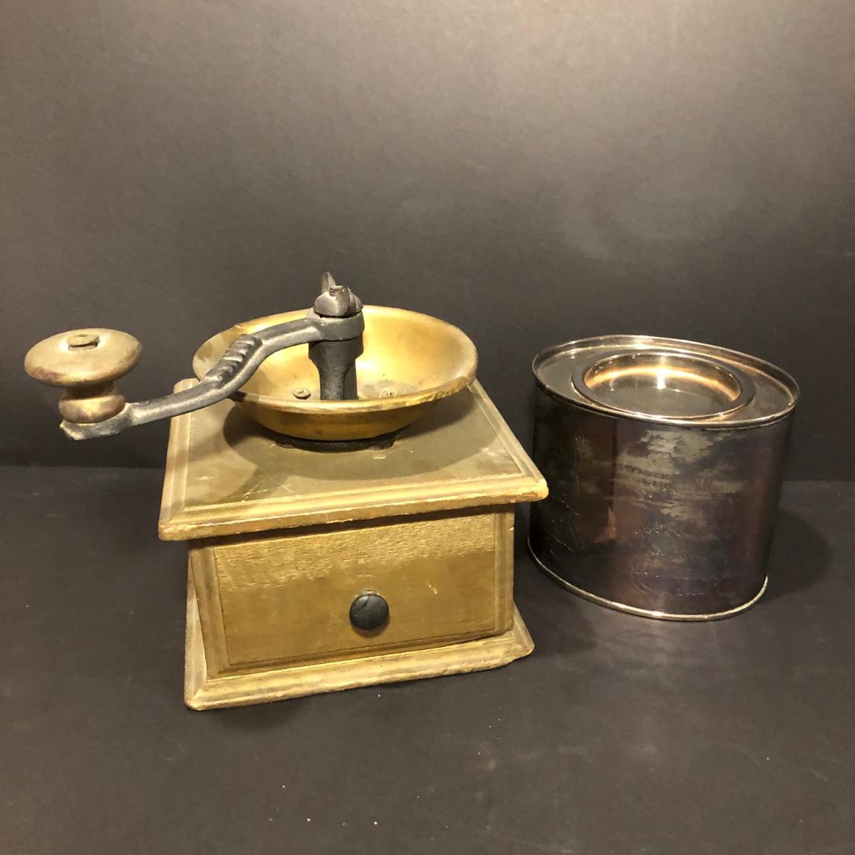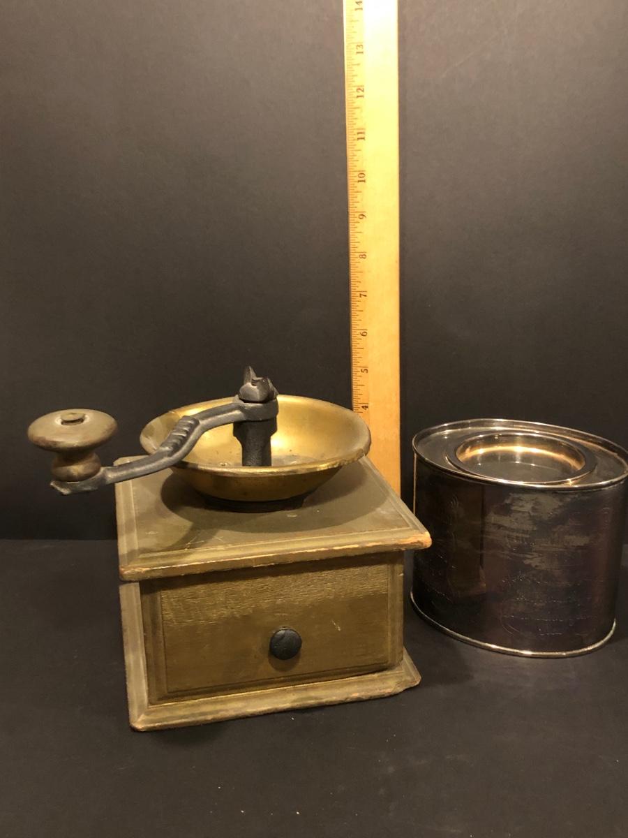 LOT135M: Vintage Adams Coffee Grinder & "English Breakfast Tea" Tin
