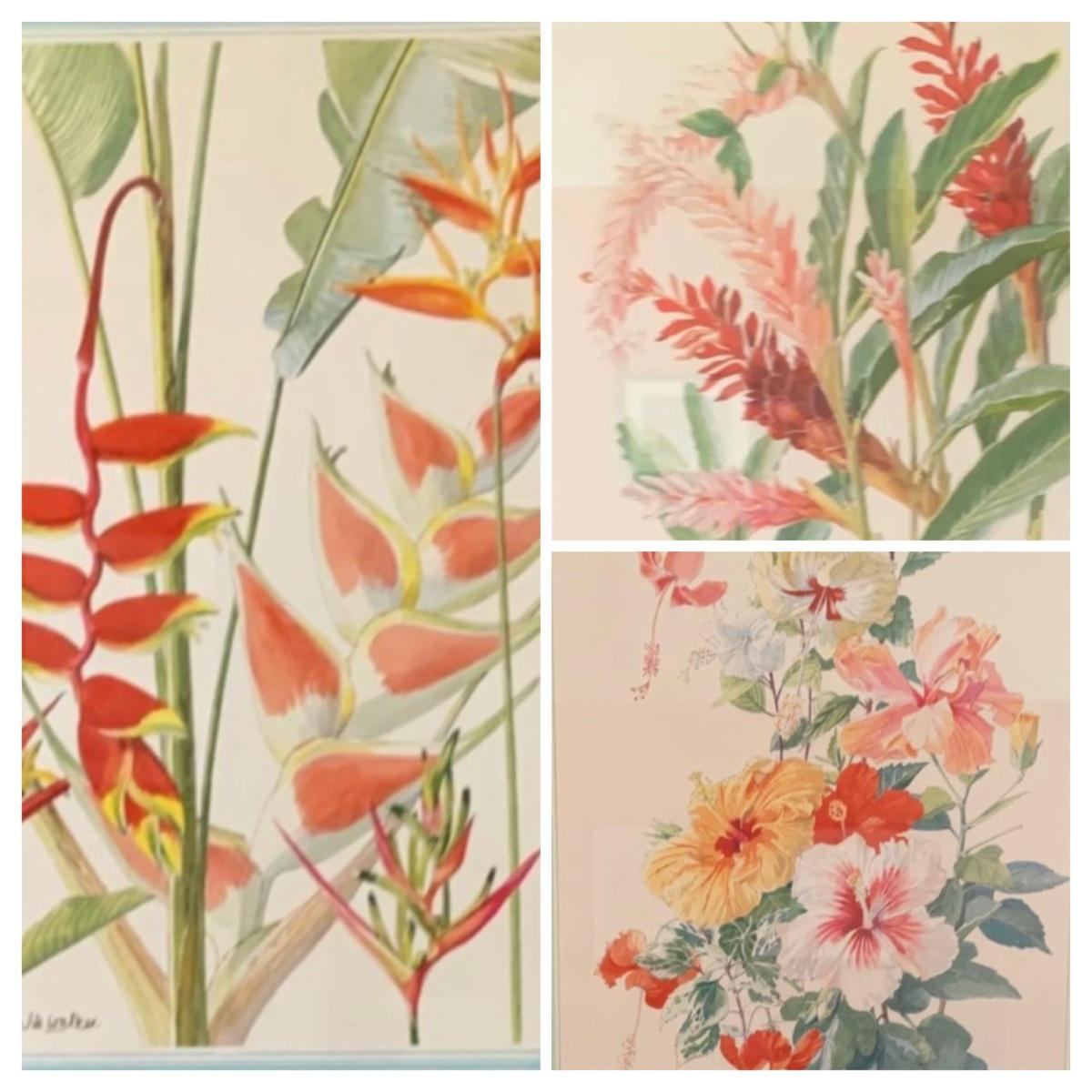 LOT:139: 3 Pieces of Floral wall art by Jim Walker entitled Hibiscus, Heliconias, and Ginger