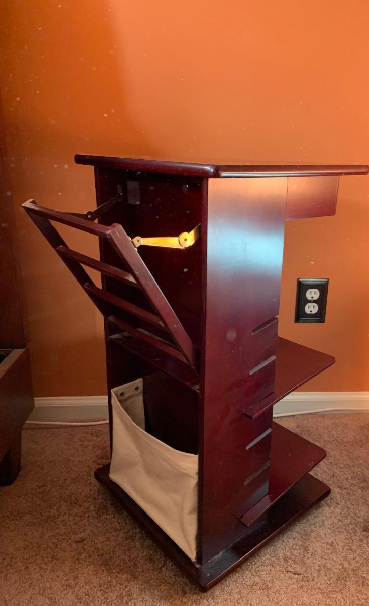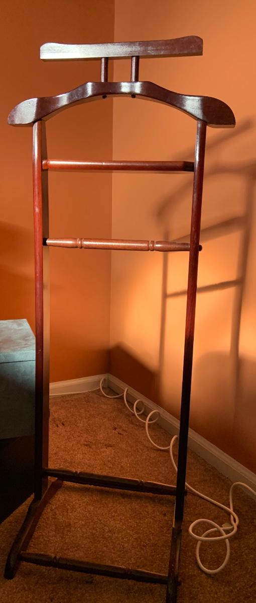 The Magazine rack measures 14”x13x 26” tall and the Valet Stand is 18”x 43”Please see all pictures as they are the best representation of the items. The pictures show condition, measurements if taken, and what is included in the lot. Due to the large amount that we photograph and the time frame, we are not always able to take measurements. All items unless noted, are pre-owned and have been used. If you purchased furniture, you must bring help. We do not allow one person to carry large furniture out on their own. Bring help, tools and a truck for the safety of our client’s homes, and your personal safety. Any damages that result to the property including walls, and floors due to moving of the furniture will be charged to the buyer. Company policy. Thank you.