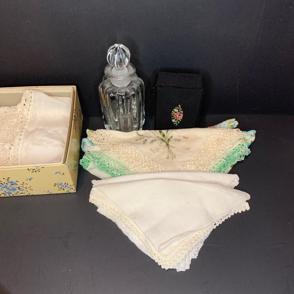 LOT 152R: Vintage Mirror, Beaded Purse, Ladies Handkerchiefs, Hair Accessories, & More