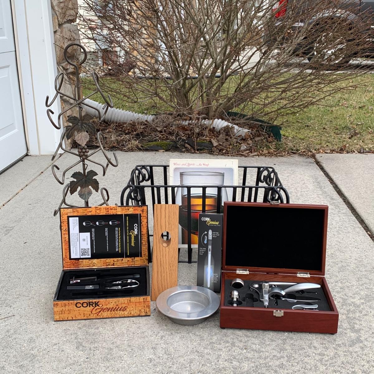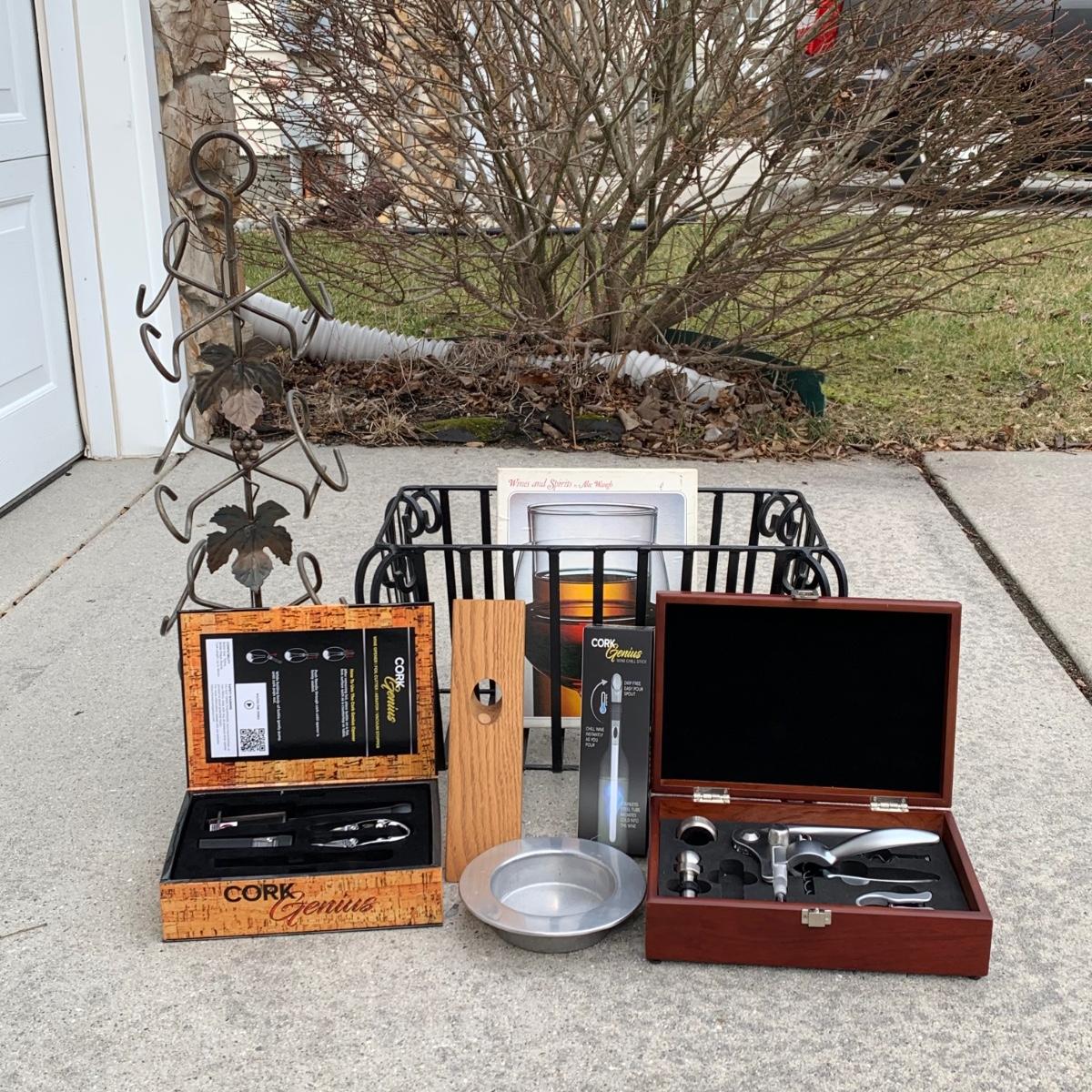 LOT 153R: Wine Accessories, Metal Wine Bottle Holder & Metal Magazine Holder