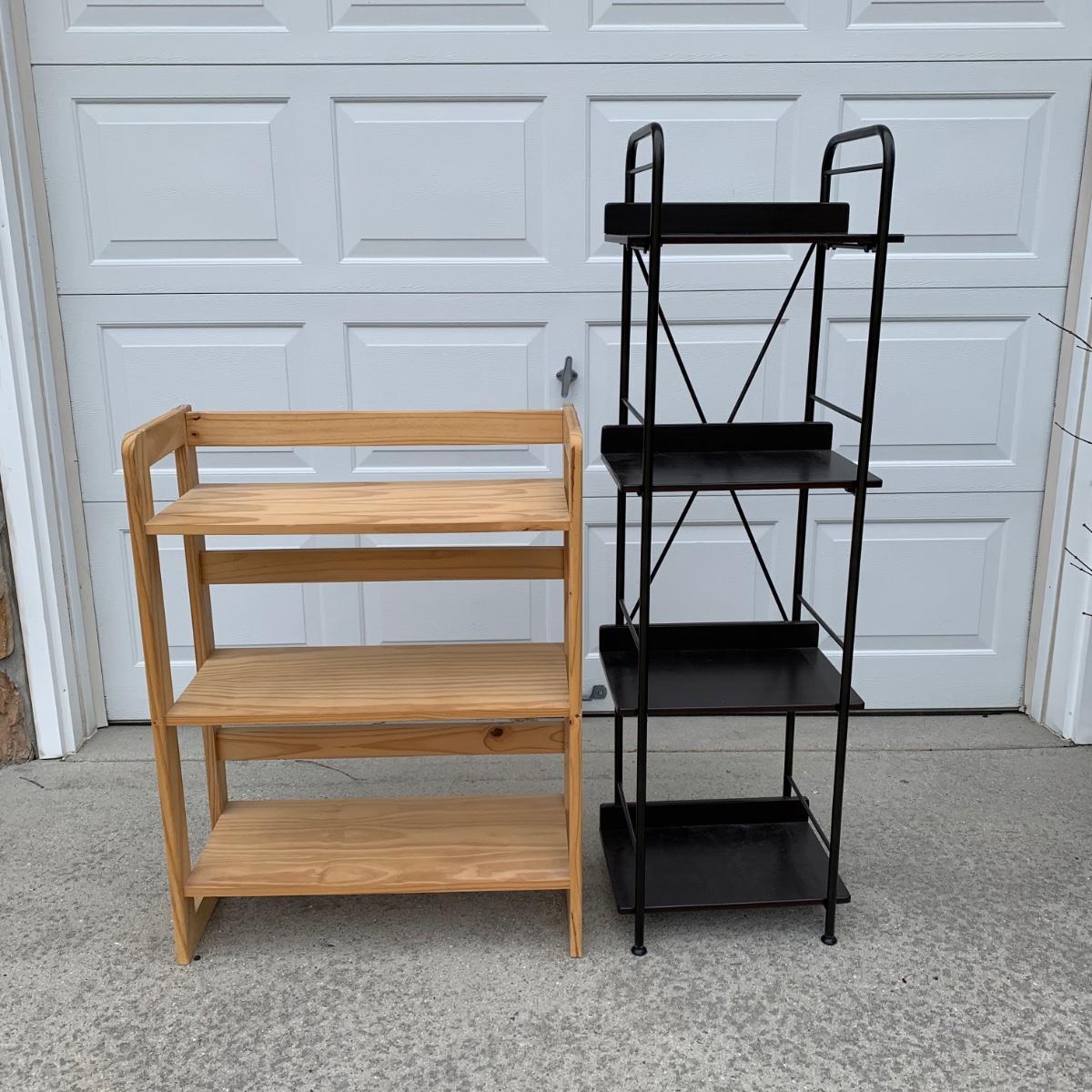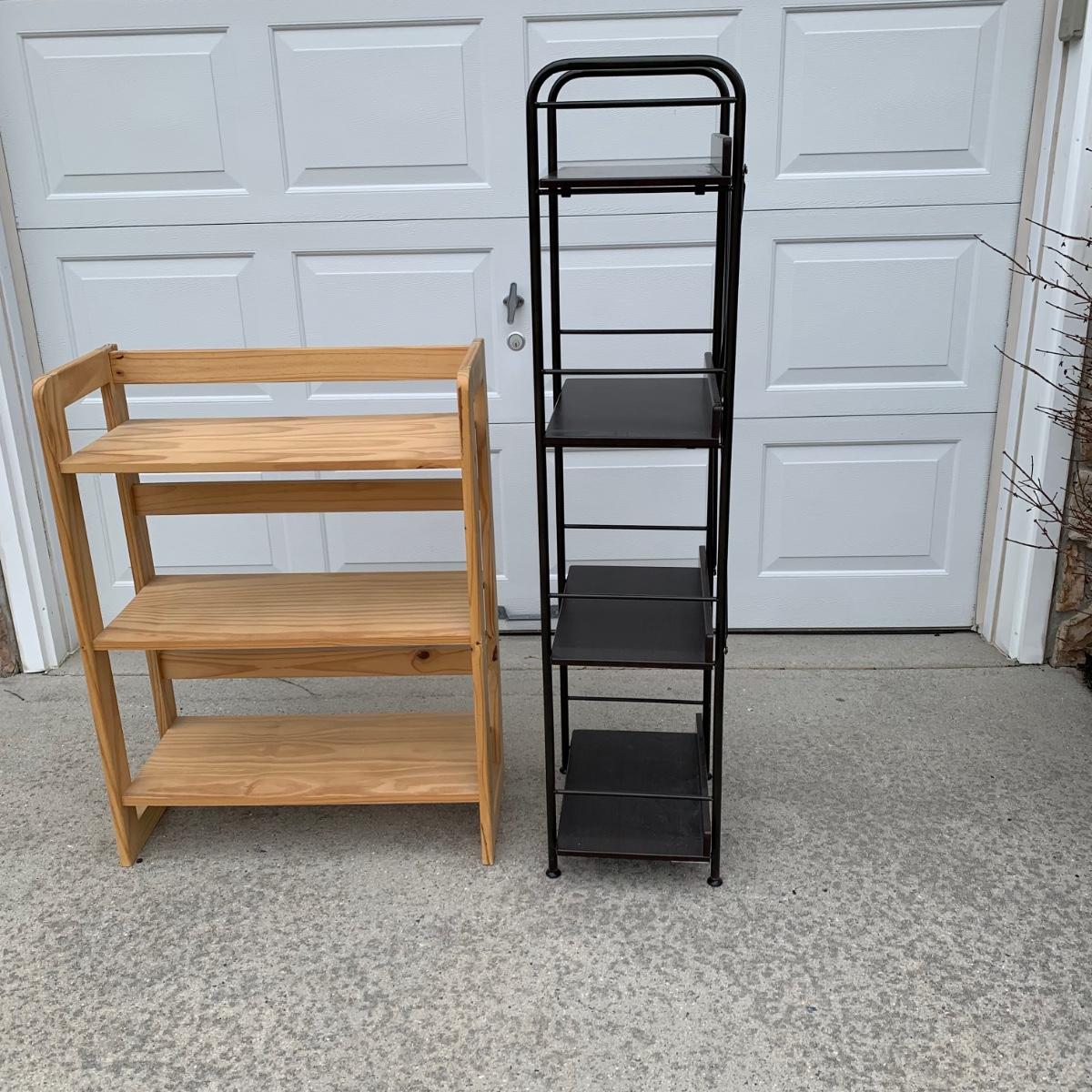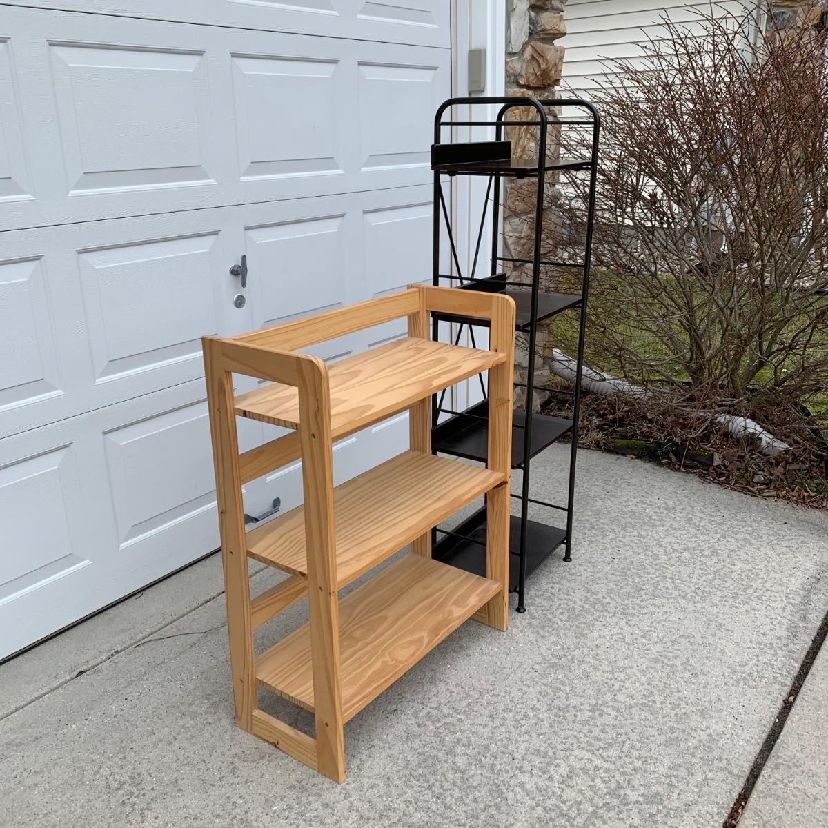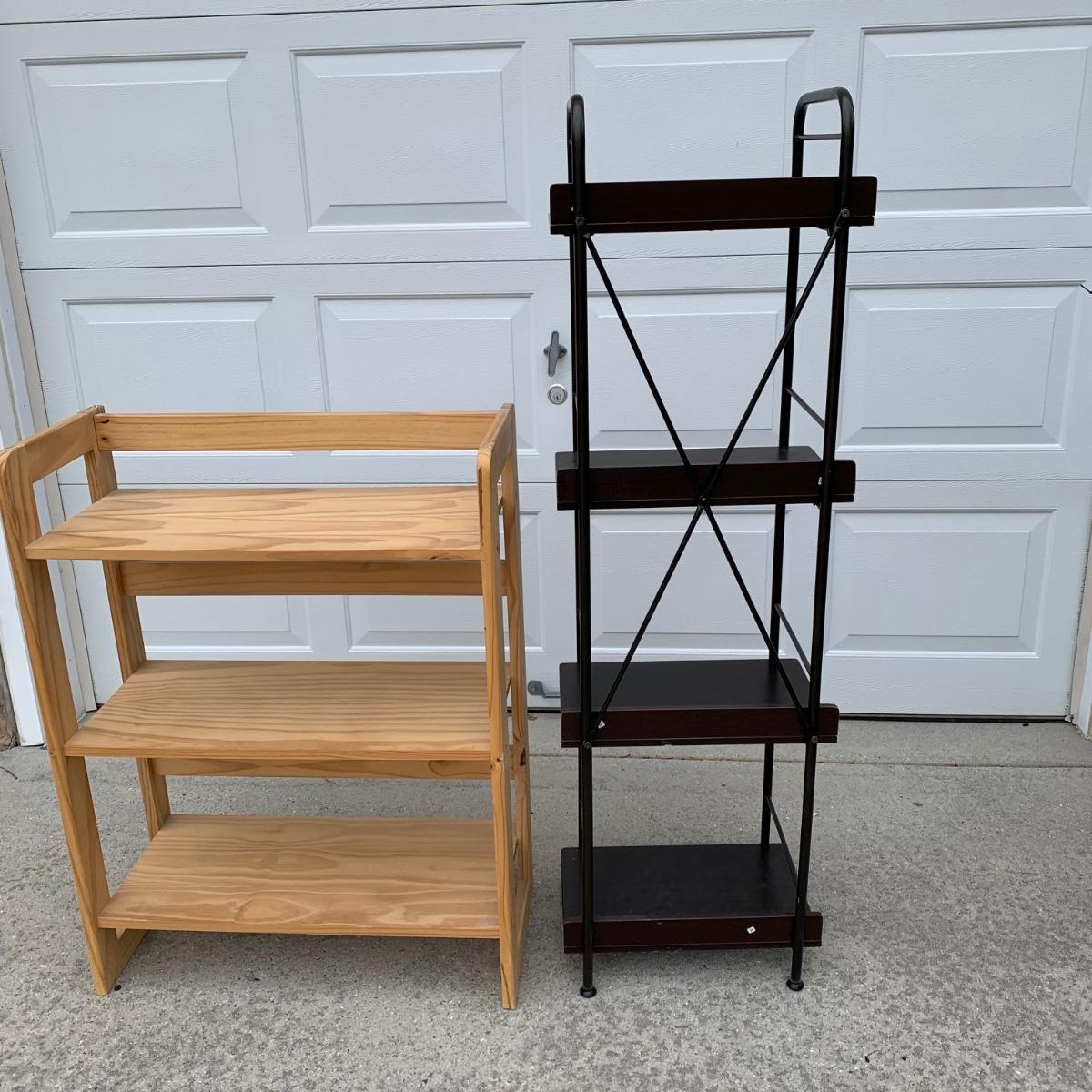 Wood Shelf 26 x 12 x 36 - Unfortunately no measurements were taken on the tall wire/wooden shelf