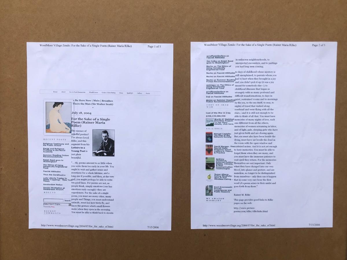 Artwork framed with a poem by Rainer Maria Rilke. Measures 22 x 32 inches.