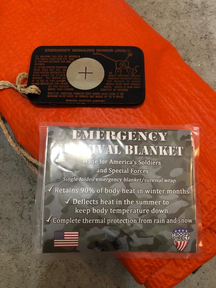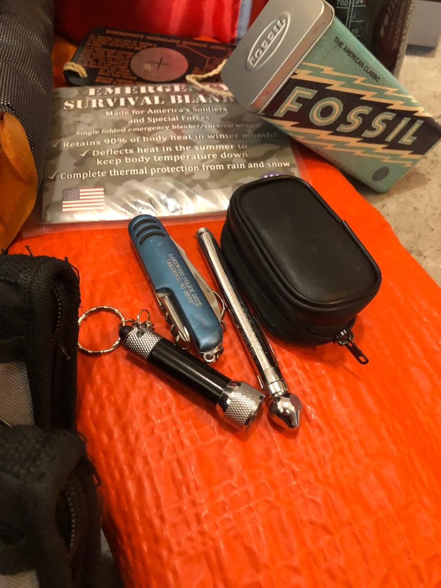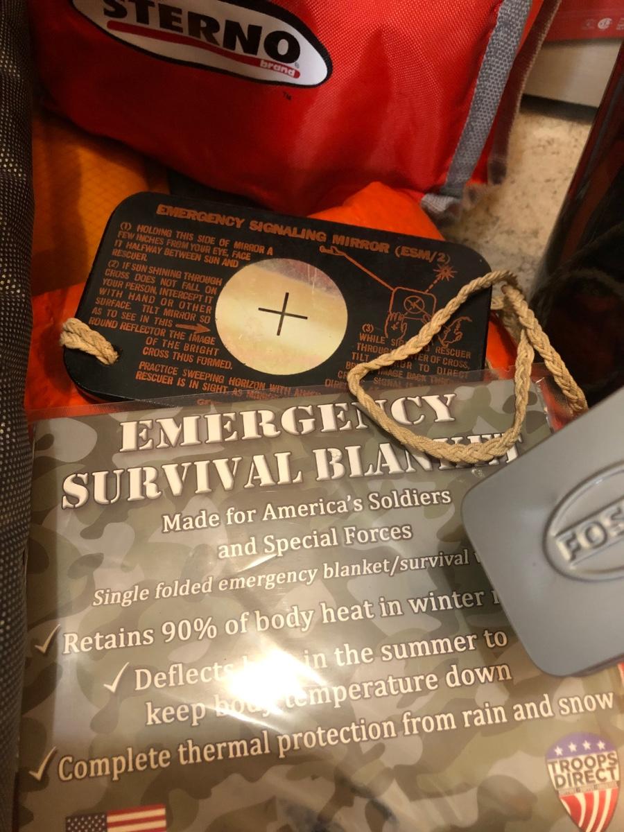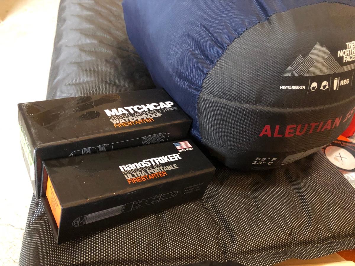Includes a Swiss Gear air mattress with bag, a Thermarest blow up sleeping mat, a Sterno Butane Stove and replacement burners, a Northface sleeping bag, first aid kits, a mess kit and more!