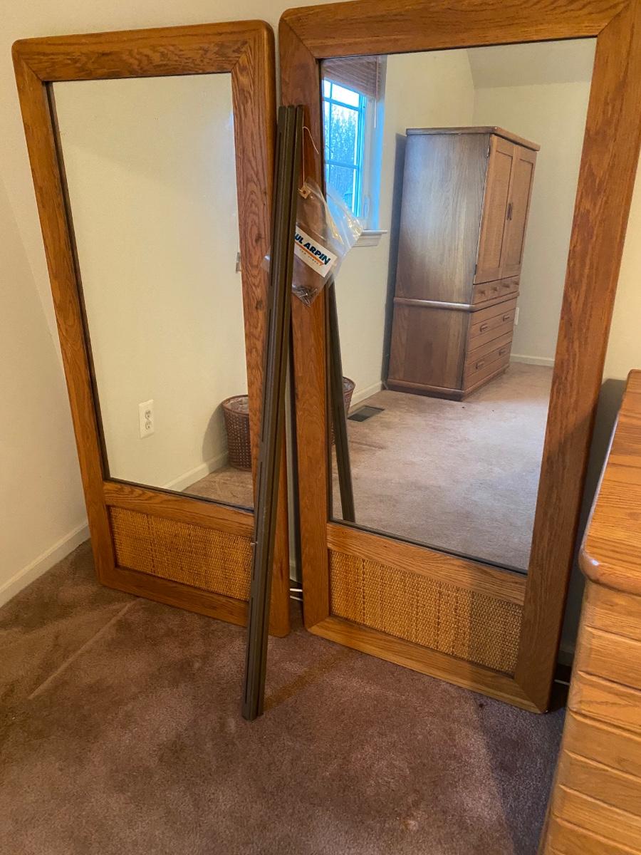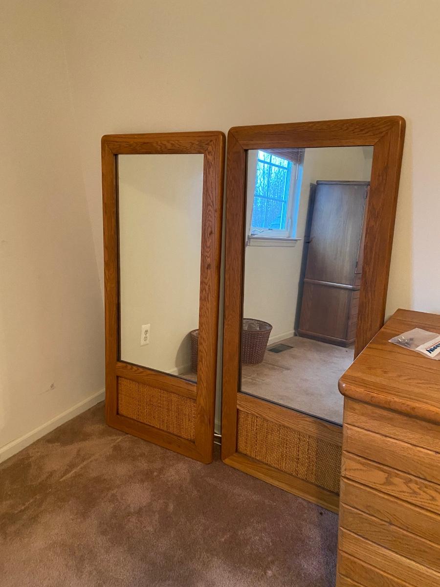 Dresser has two tall mirrors and metal attachments included. They are all pictured above but not assembled.