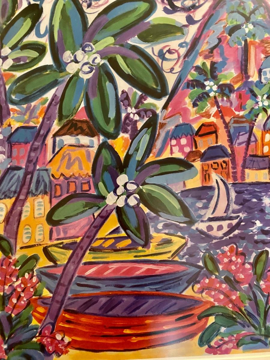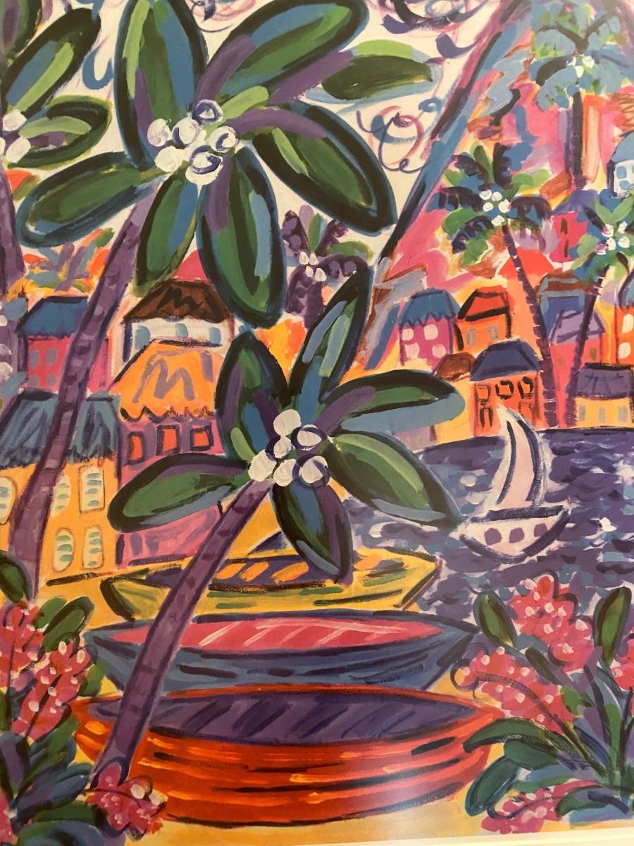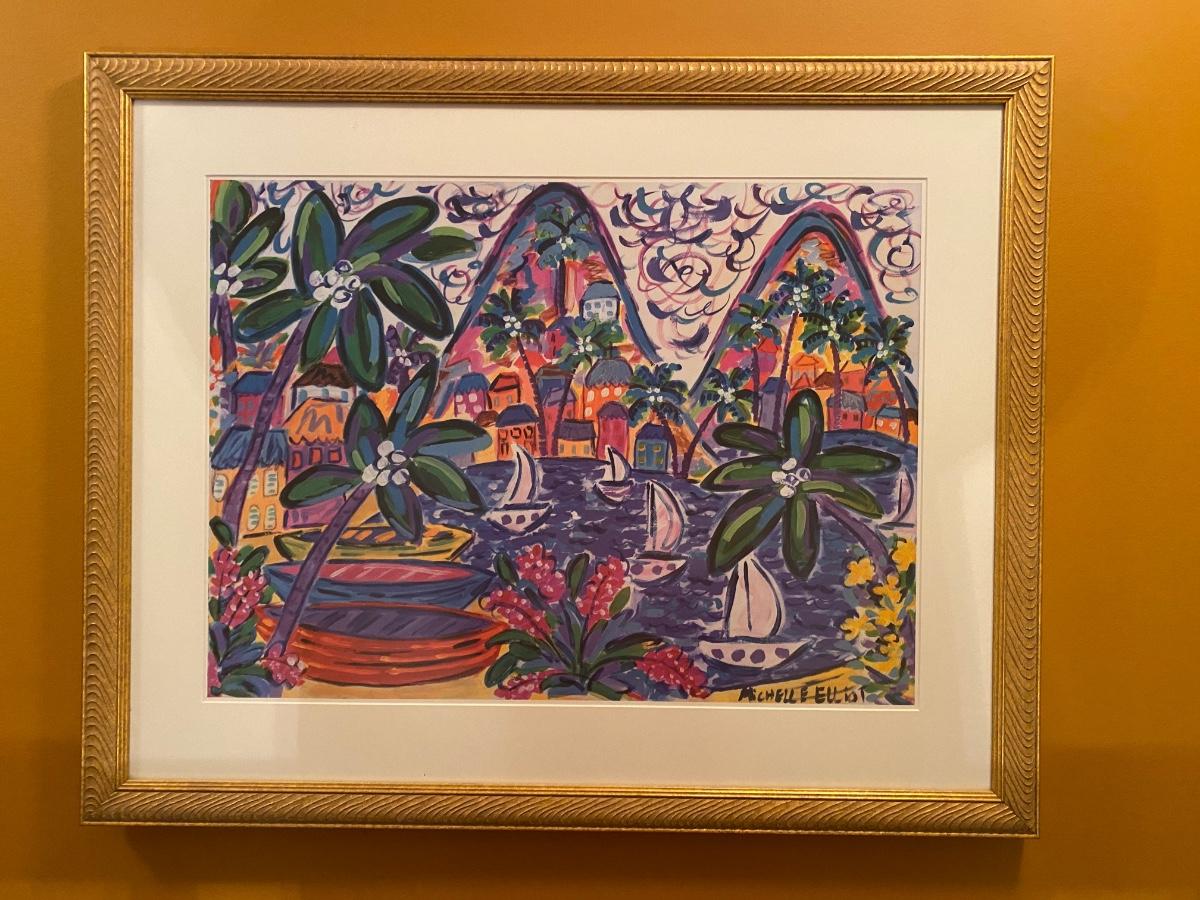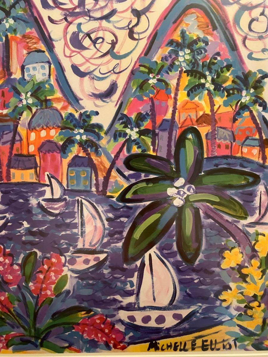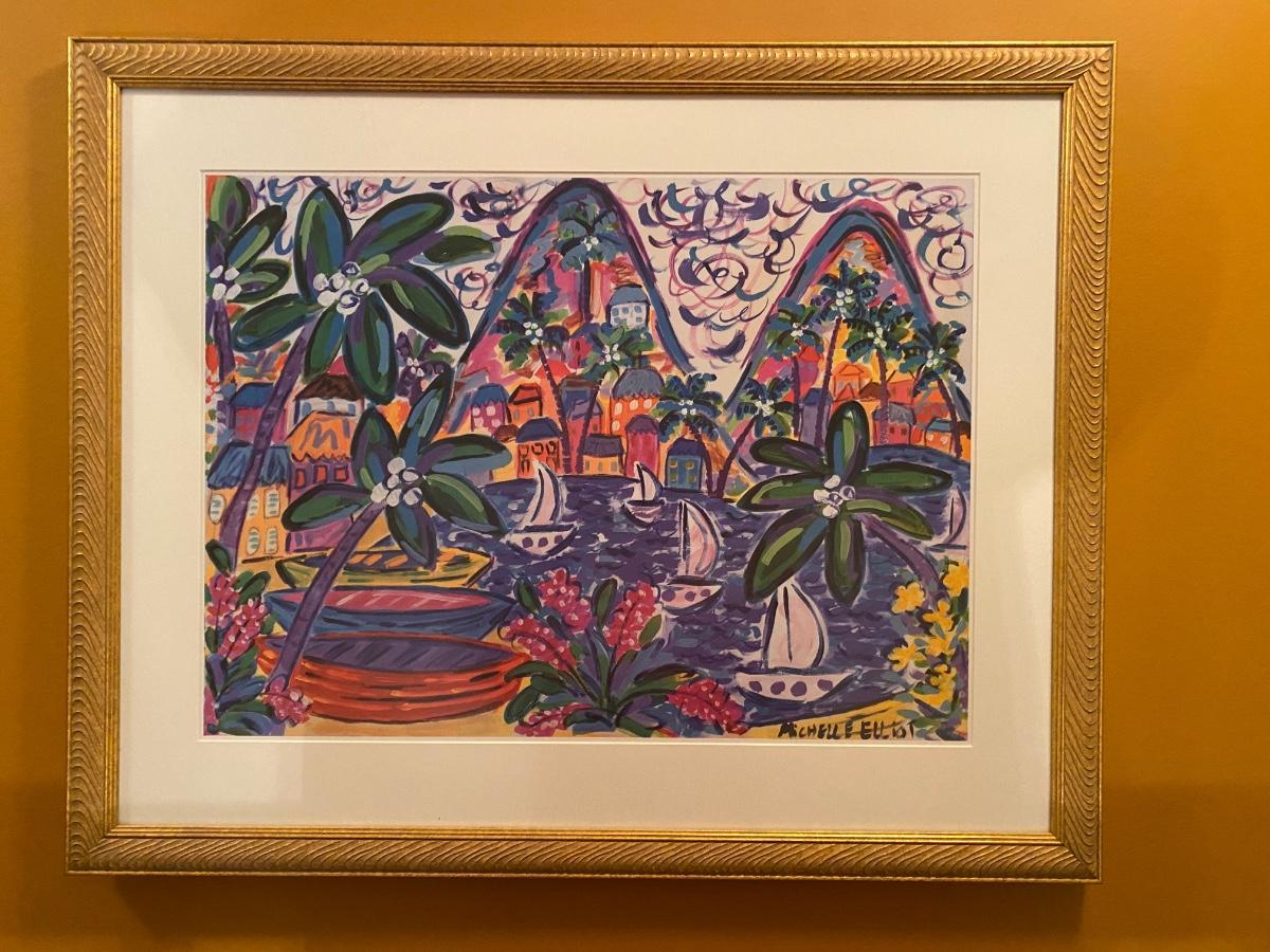 30”x25” Gold tone frame on a Michelle Elliot print. Vibrant colors. Please see all pictures as they are the best representation of the items. The pictures show condition, measurements if taken, and what is included in the lot. Due to the large amount that we photograph and the time frame, we are not always able to take measurements. All items unless noted, are pre-owned and have been used. If you purchased furniture, you must bring help. We do not allow one person to carry large furniture out on their own. Bring help, tools and a truck for the safety of our client’s homes, and your personal safety. Any damages that result to the property including walls, and floors due to moving of the furniture will be charged to the buyer. Company policy. Thank you.