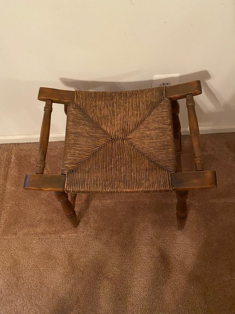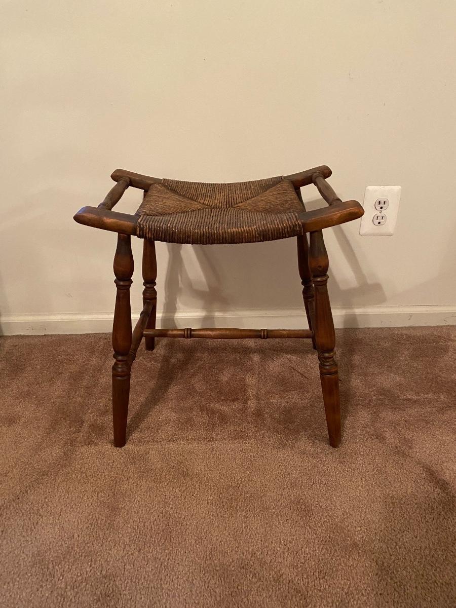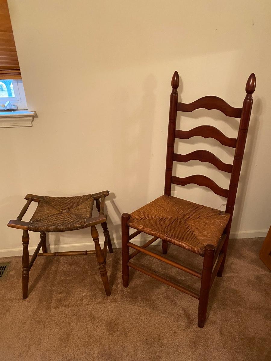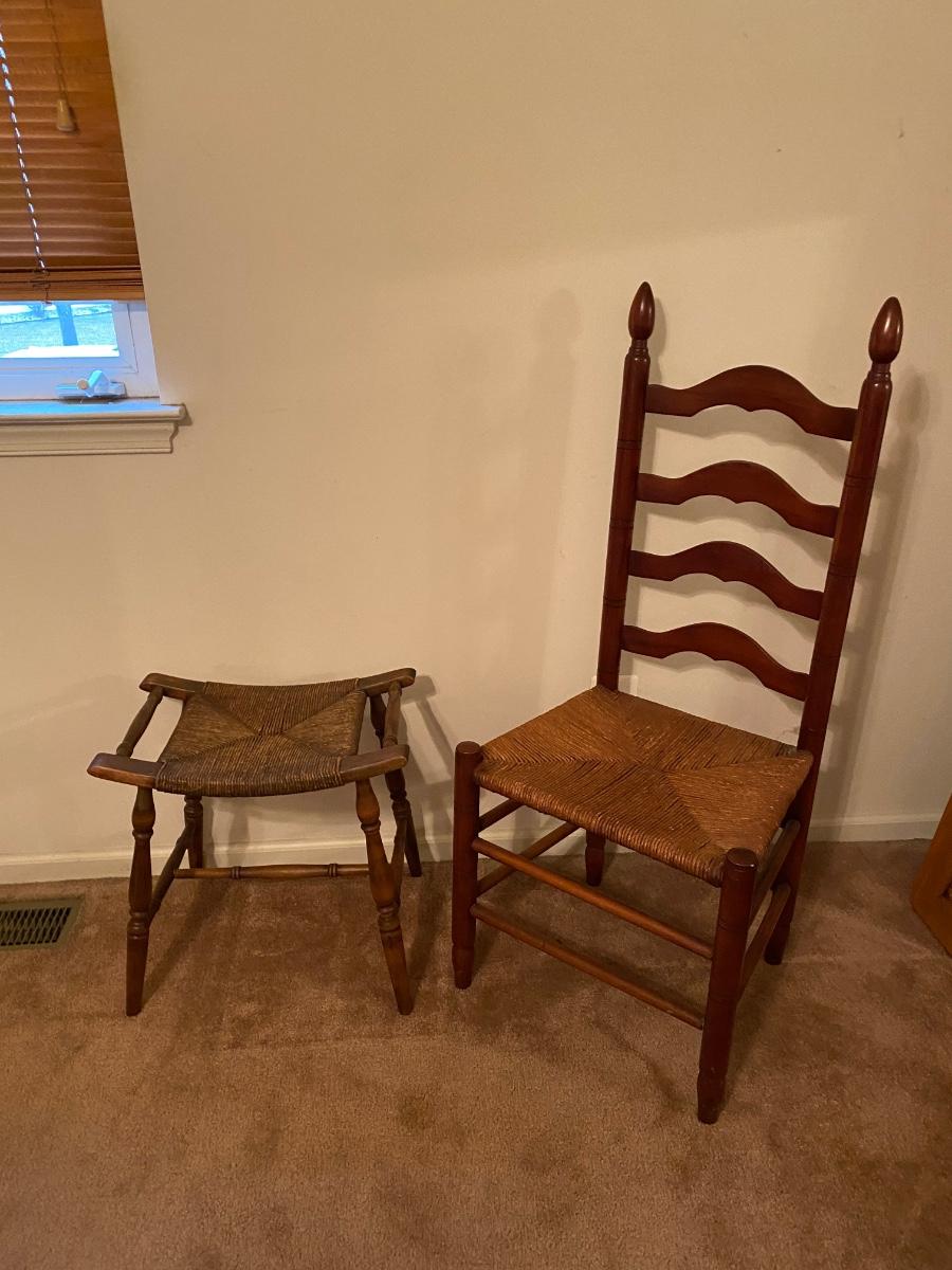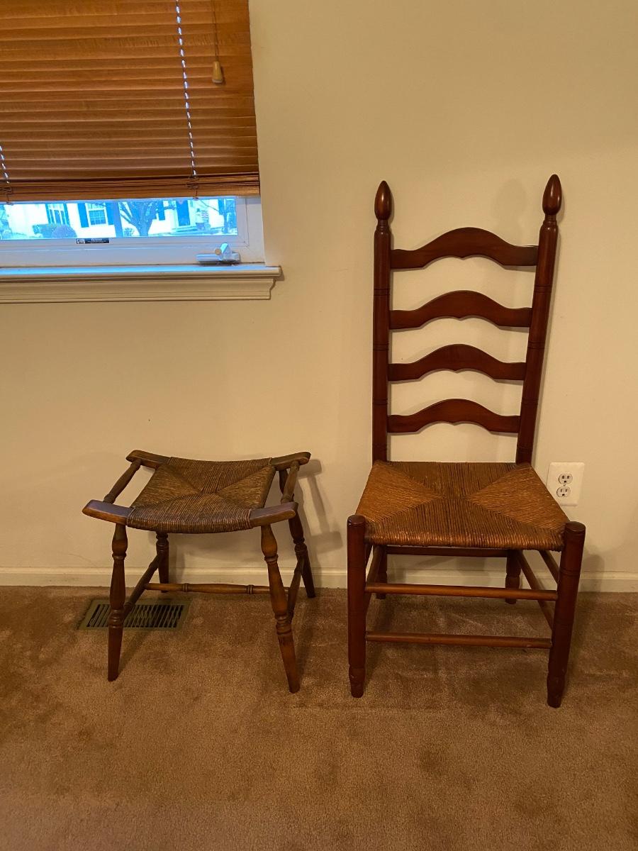 LOT 198: Vintage Ladder Back Chair w/Rush Seat & Rush Seat Bench