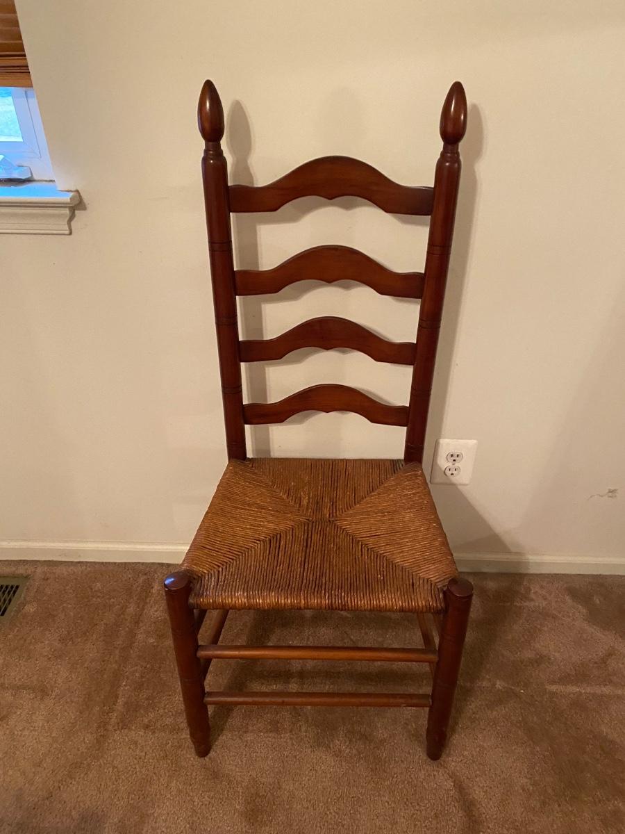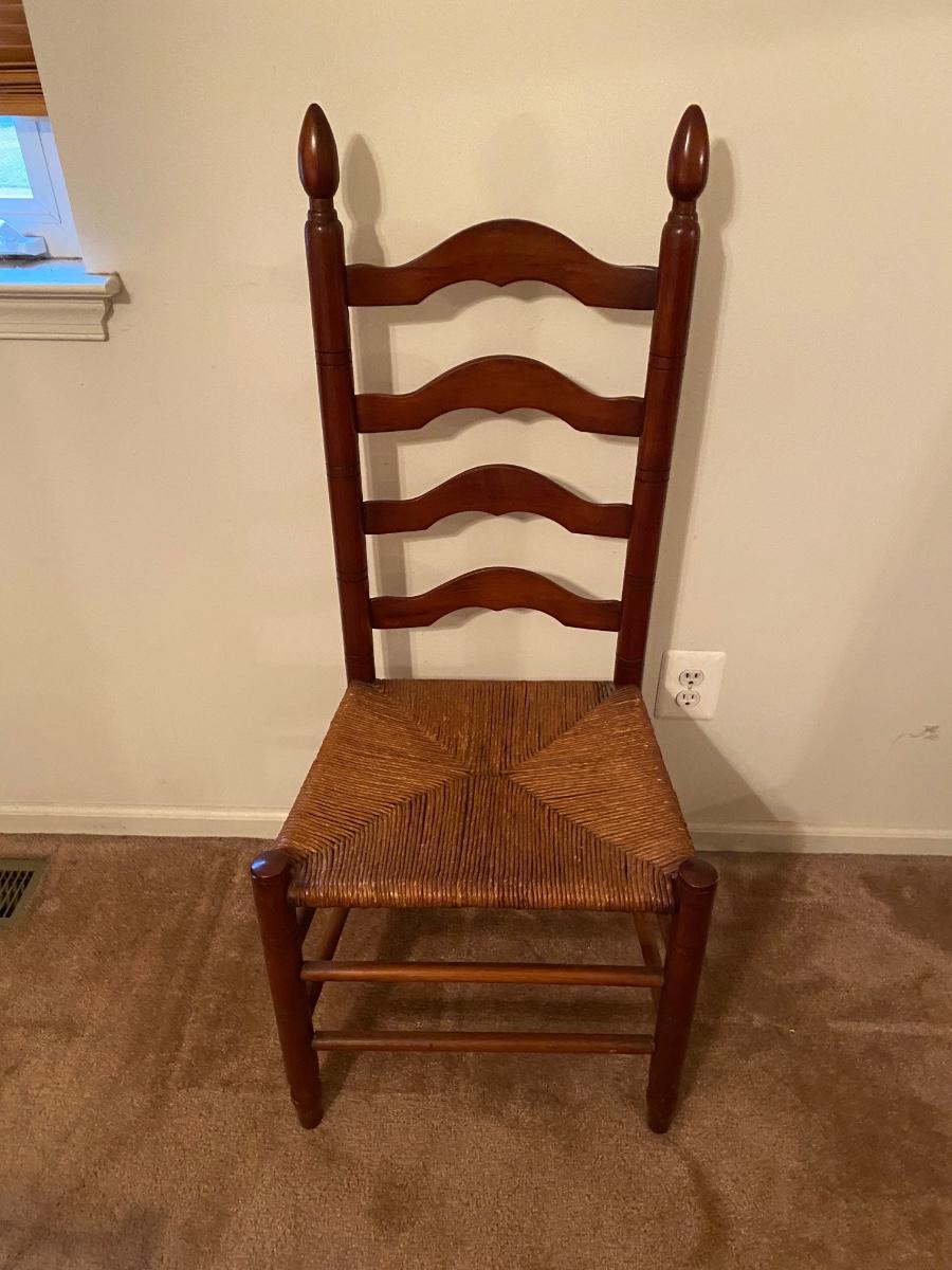 LOT 198: Vintage Ladder Back Chair w/Rush Seat &  Rush Seat Bench