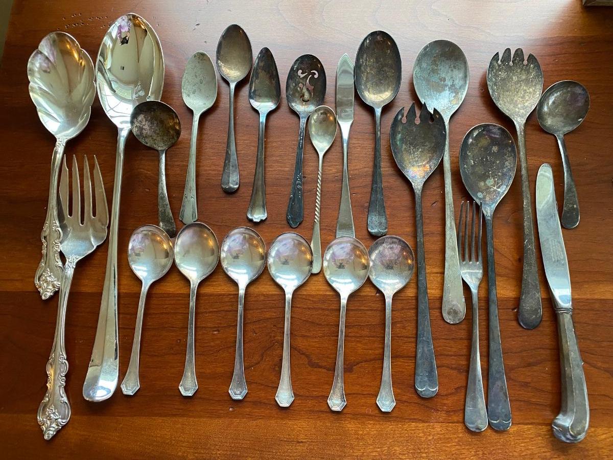 Collection of silver plated flatware and serving utensils. Please see all pictures as they are the best representation of the items. The pictures show condition, measurements if taken, and what is included in the lot. Due to the large amount that we photograph and the time frame, we are not always able to take measurements. All items unless noted, are pre-owned and have been used. If you purchased furniture, you must bring help. We do not allow one person to carry large furniture out on their own. Bring help, tools and a truck for the safety of our client’s homes, and your personal safety. Any damages that result to the property including walls, and floors due to moving of the furniture will be charged to the buyer. Company policy. Thank you.