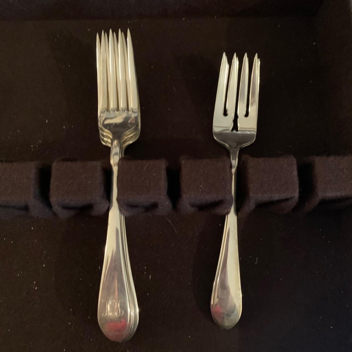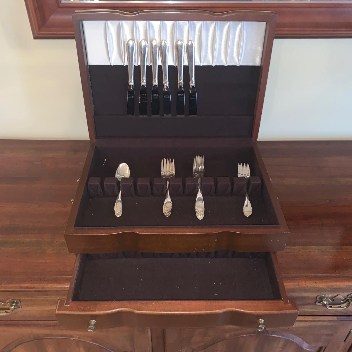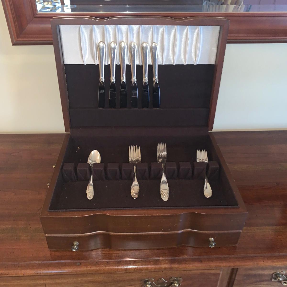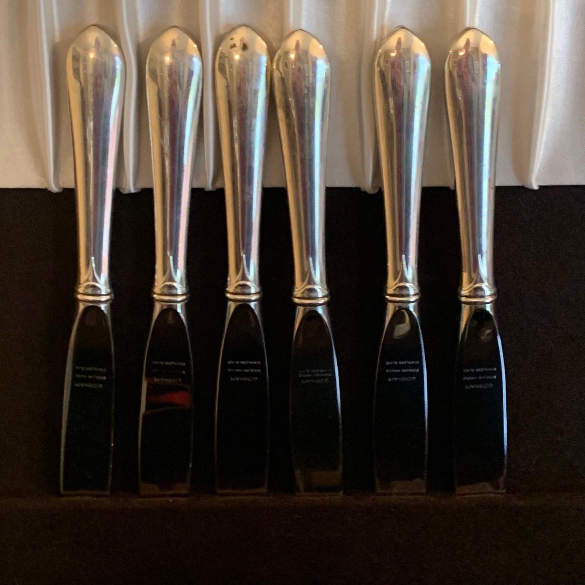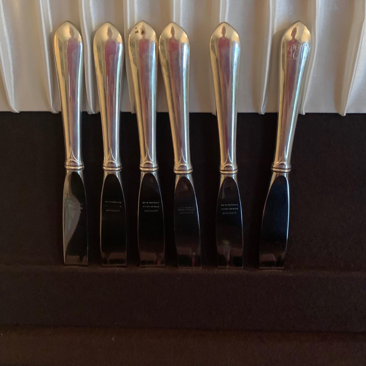 22 pieces in all of Gorham Sterling Silver. 19 engraved pieces, 3 pieces not engraved, dinner knives are not weighed. Flatware box has a engraved plate on the top (not pictured)