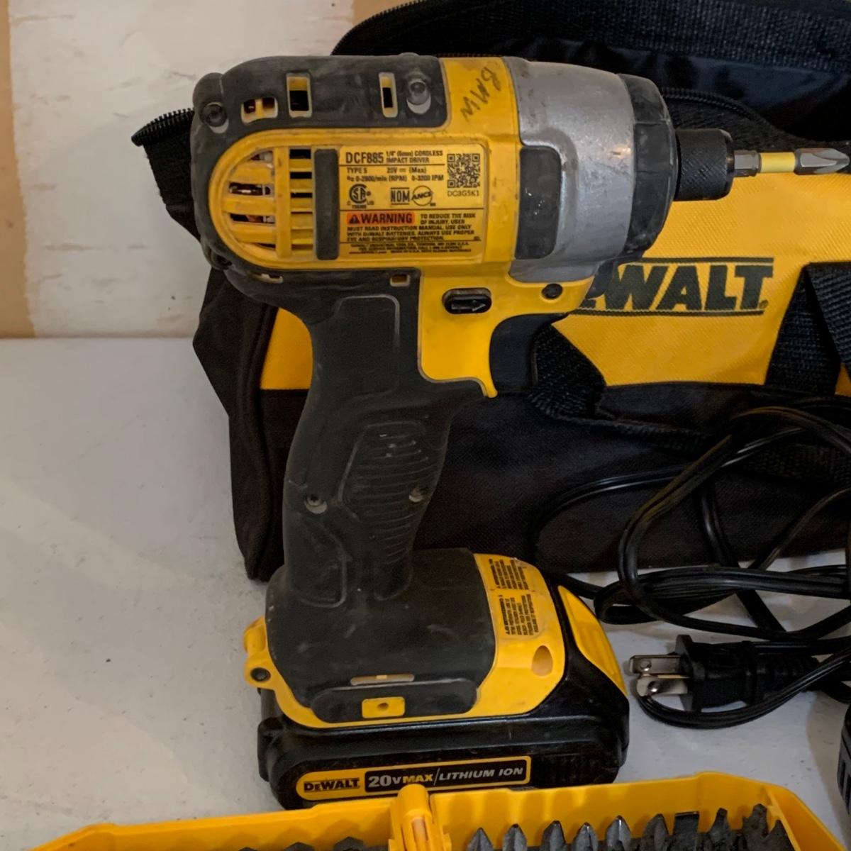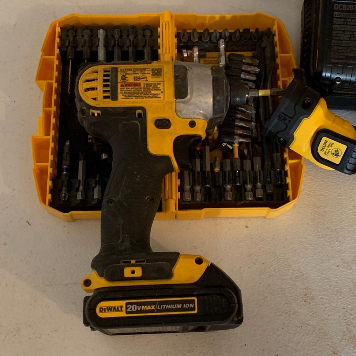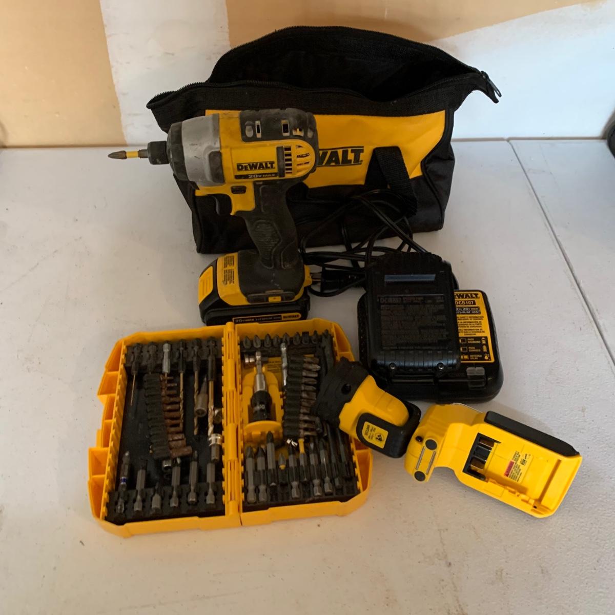 Working cordless drill: includes battery pack/charger, drill bits and bag.