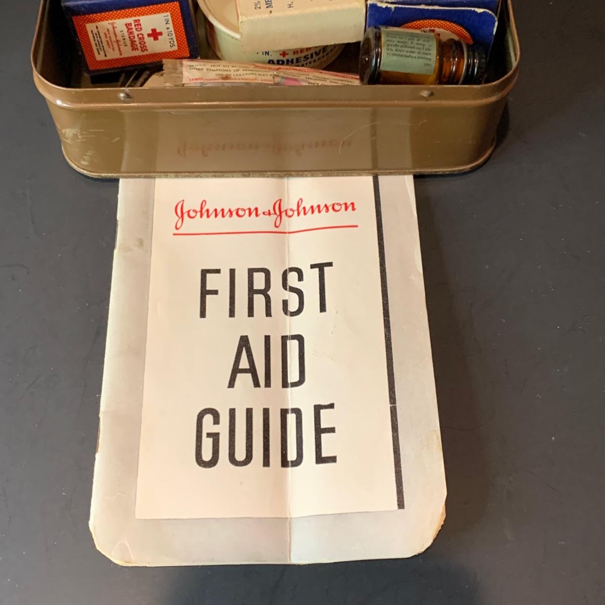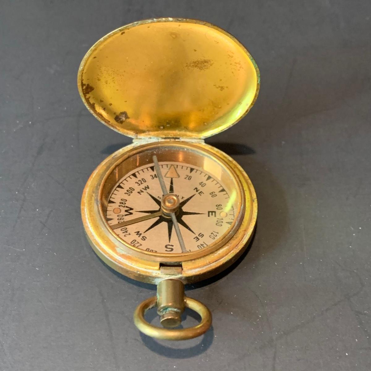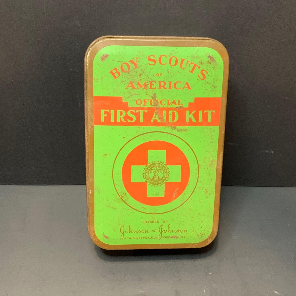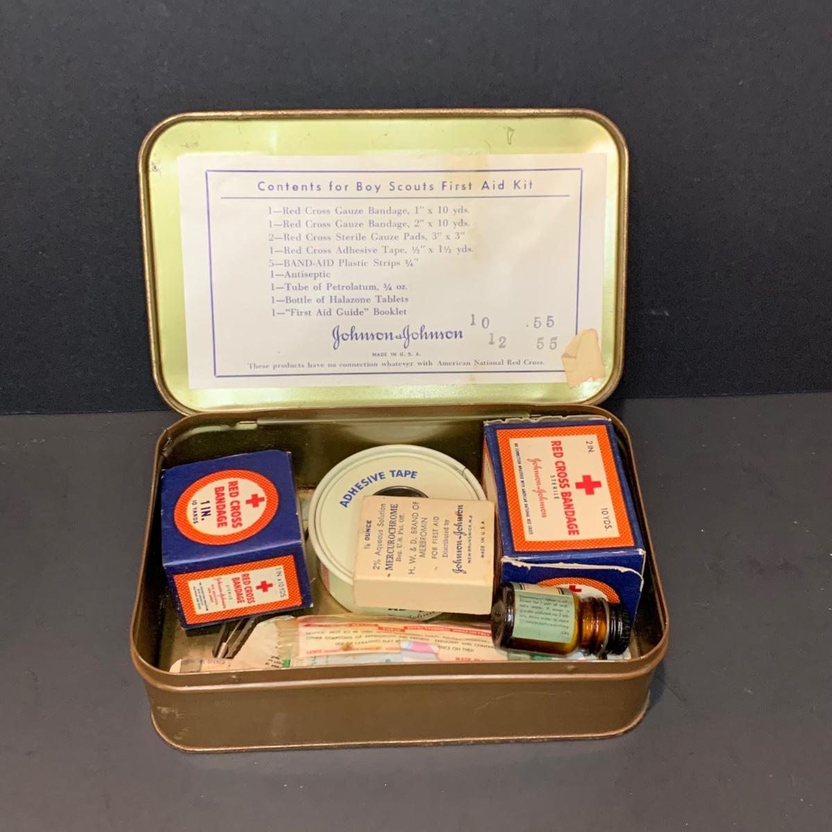 LOT 222R: Vintage Finds: US Brass Compass, Vintage Mess Kit, Binoculars in Case, Boy Scout First Aid Kit & More