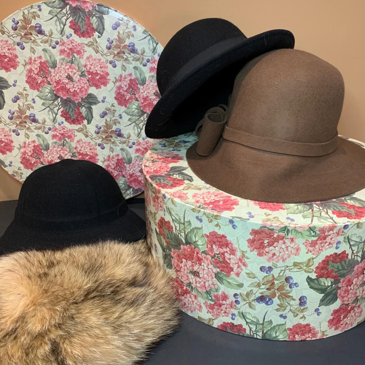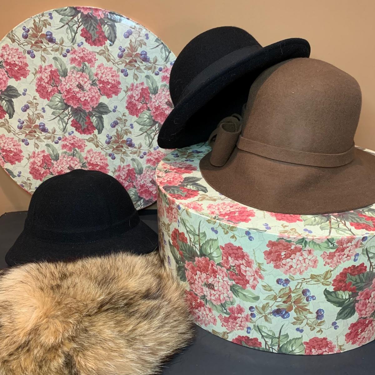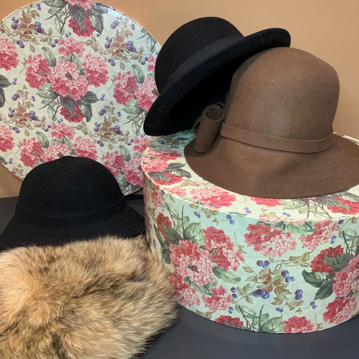 Collection of four women’s vintage hats and two large floral hat boxes. Please see all pictures as they are the best representation of the items. The pictures show condition, measurements if taken, and what is included in the lot. Due to the large amount that we photograph and the time frame, we are not always able to take measurements. All items unless noted, are pre-owned and have been used. If you purchased furniture, you must bring help. We do not allow one person to carry large furniture out on their own. Bring help, tools and a truck for the safety of our client’s homes, and your personal safety. Any damages that result to the property including walls, and floors due to moving of the furniture will be charged to the buyer. Company policy. Thank you.