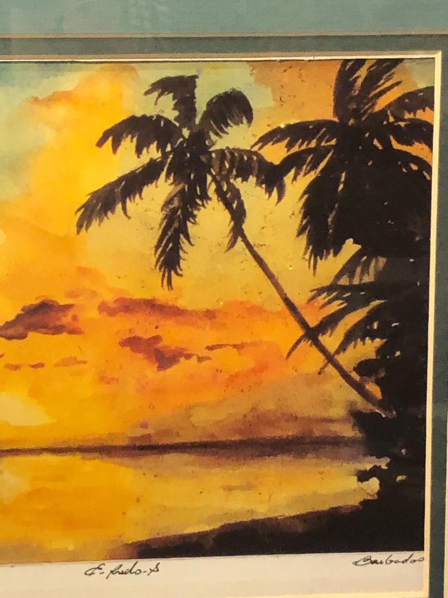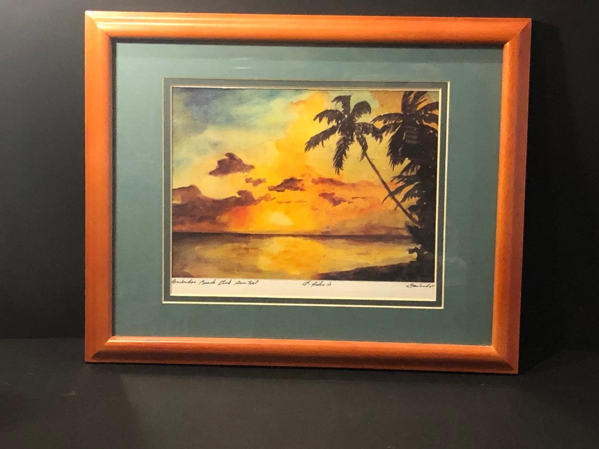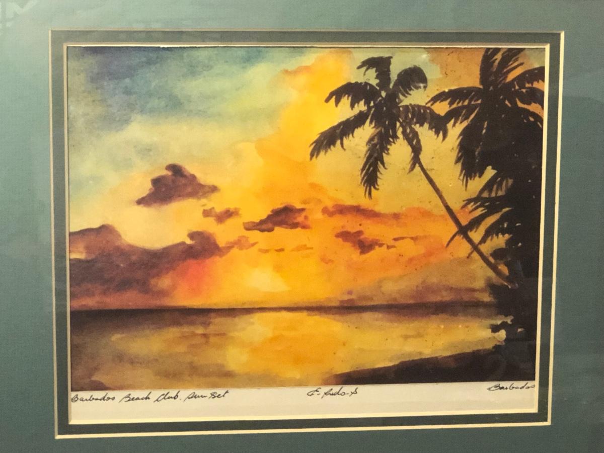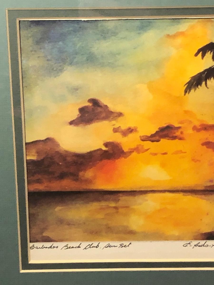 LOT248M: Michael Swan Print & Signed Barbados Beach Club Sunset Watercolor
