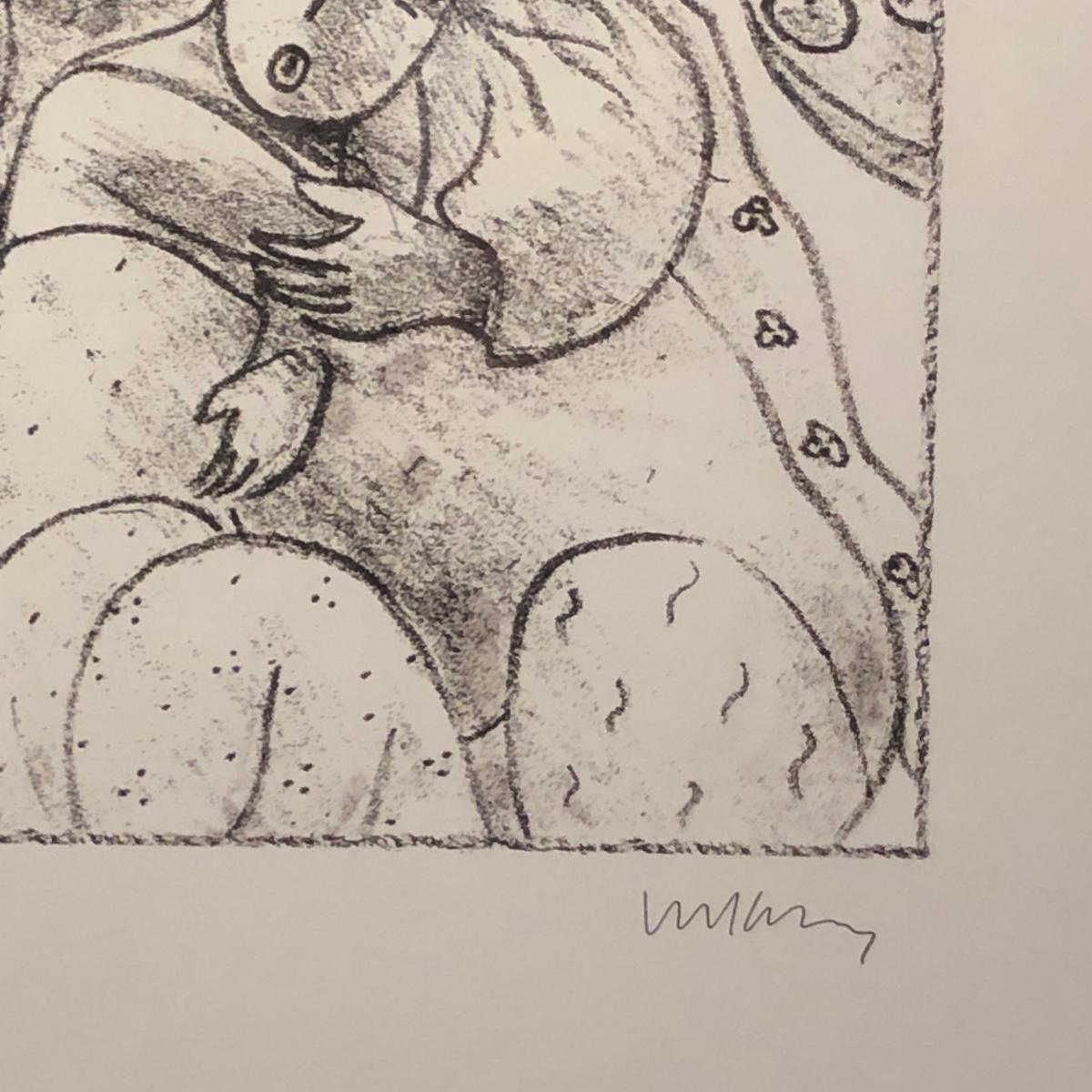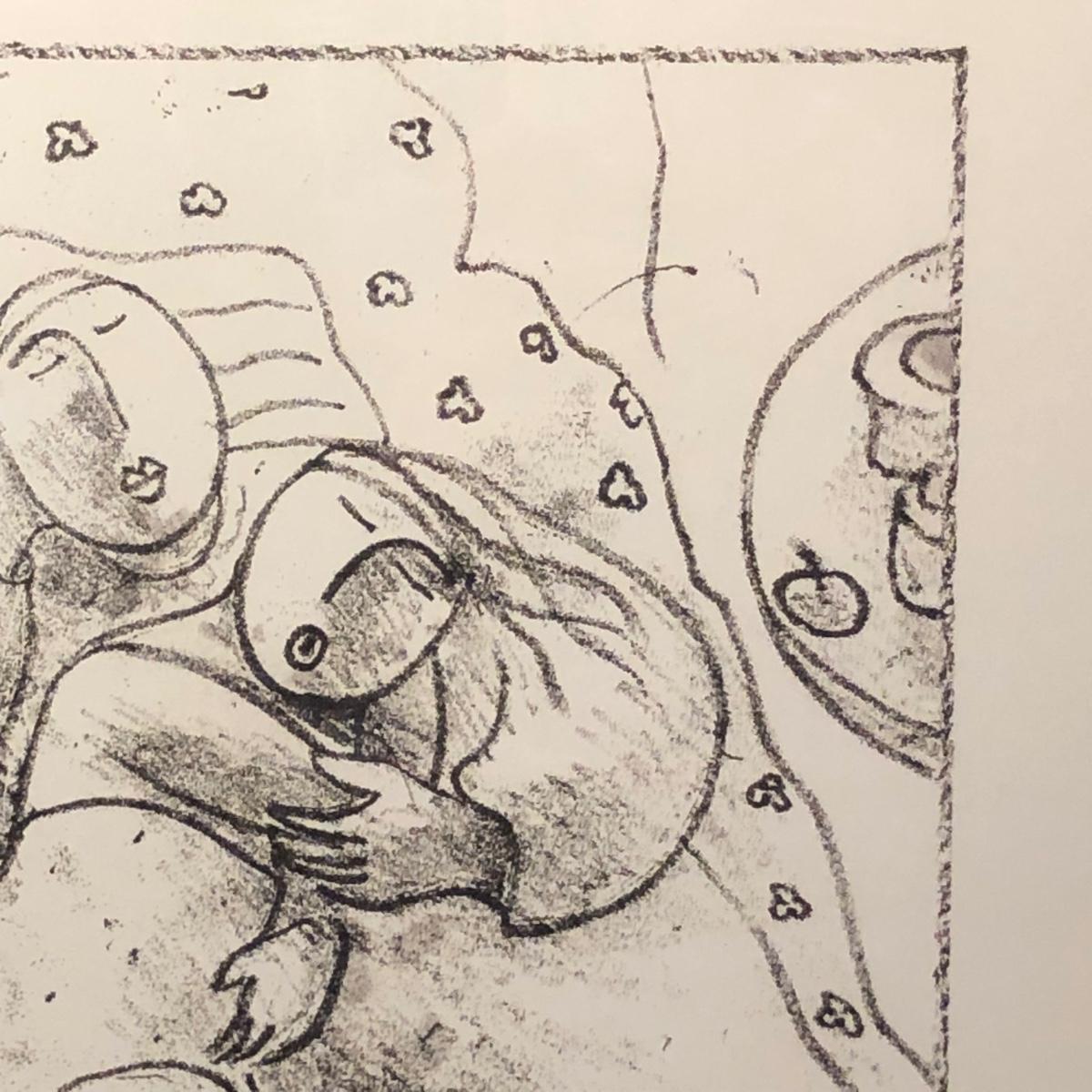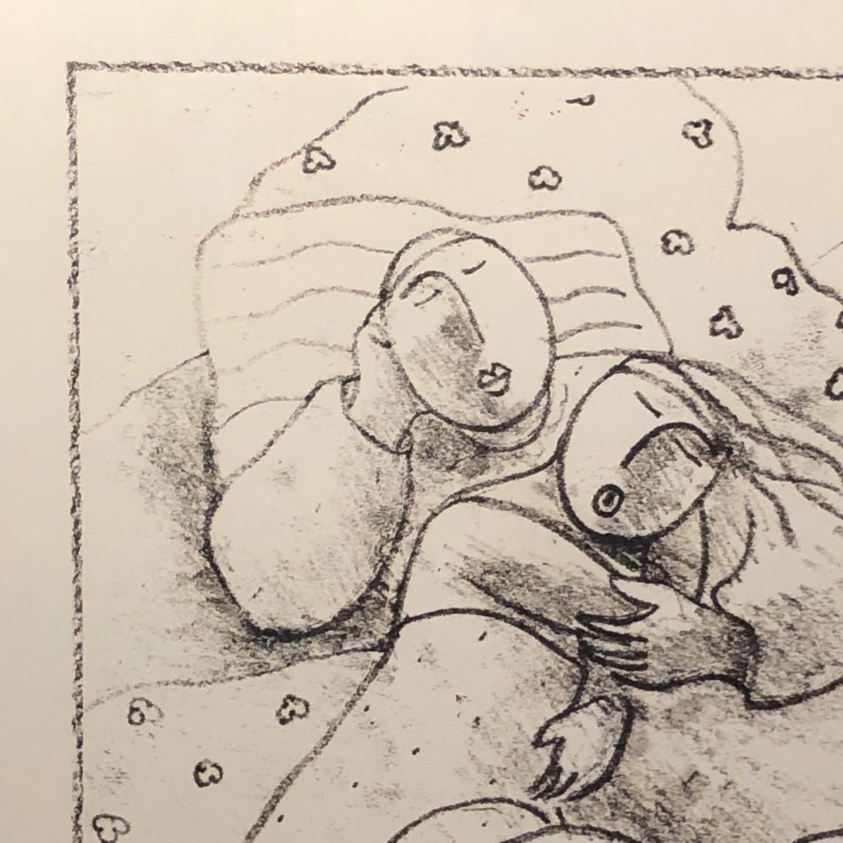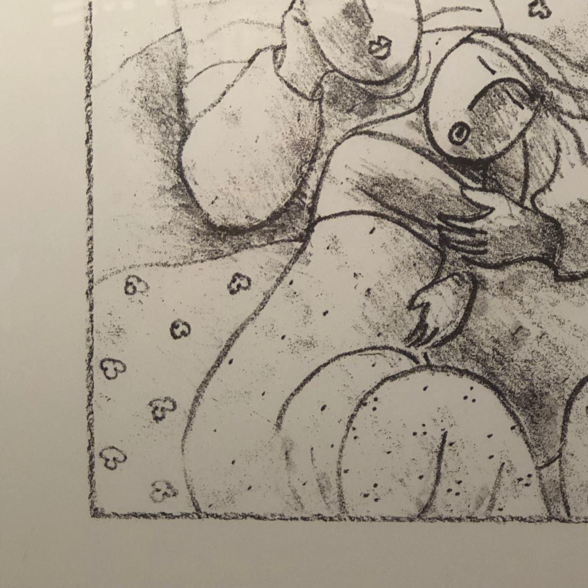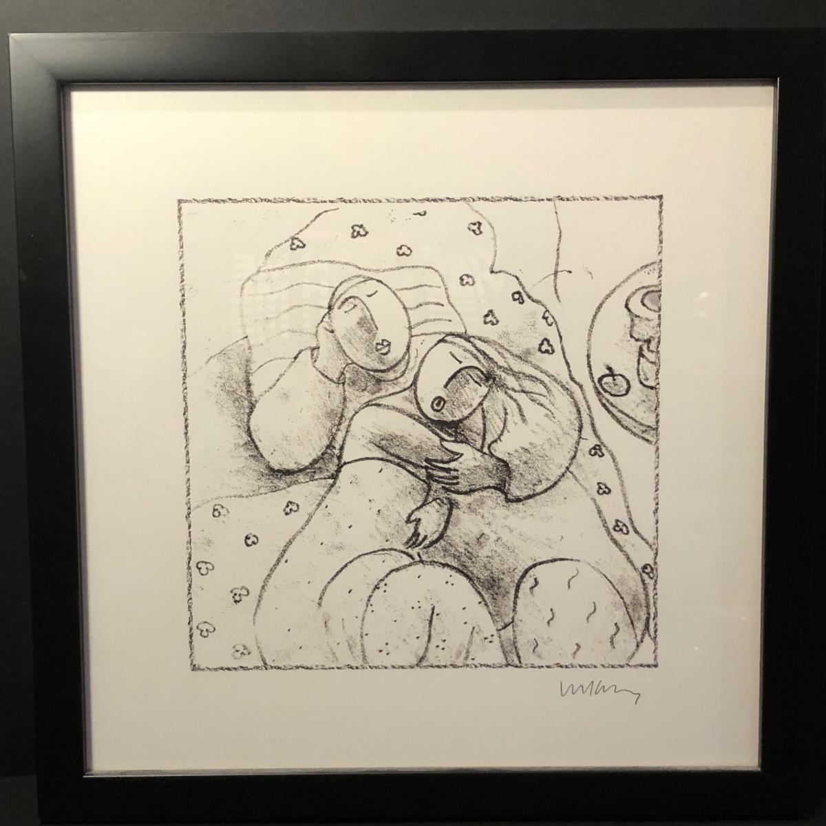Canvas print measures 20 x 15 inches. Framed drawing measures 13 x 13 inches.