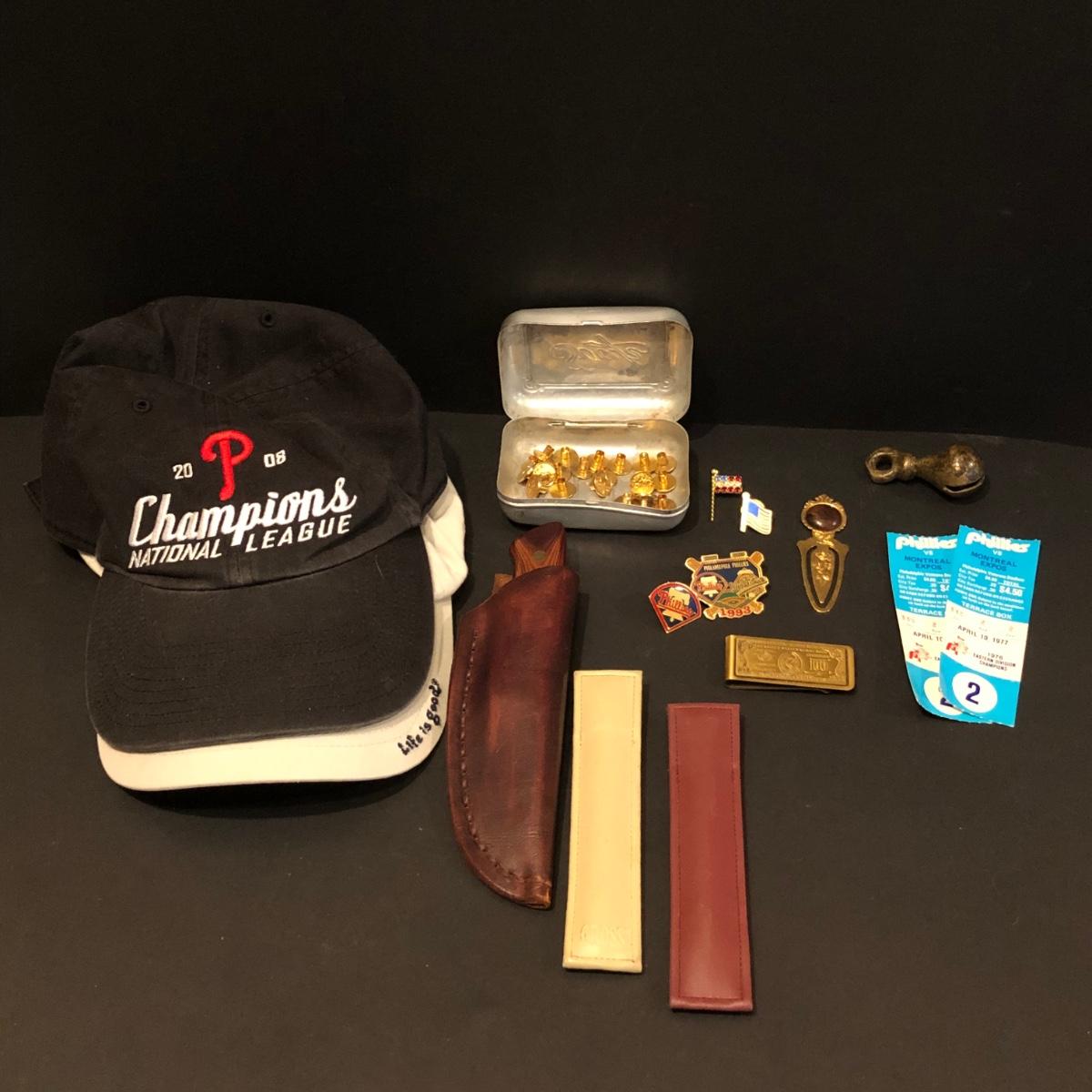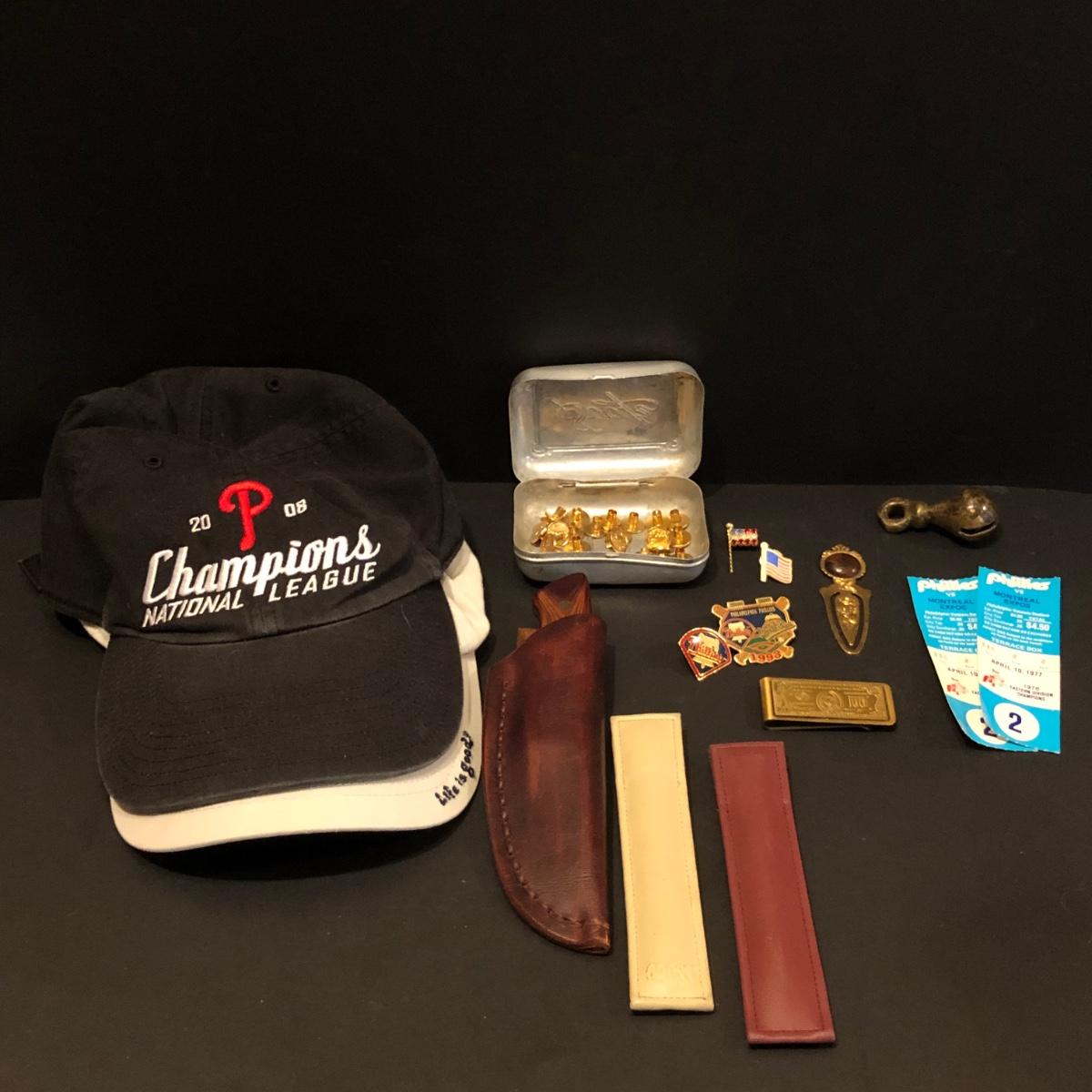 Phillies ticket stubs from 1977, pins and hat, Cross pens, Life is Good hat, knife, Money clips and more. Please see all pictures as they are the best representation of the items. The pictures show condition, measurements if taken, and what is included in the lot. Due to the large amount that we photograph and the time frame, we are not always able to take measurements. All items unless noted, are pre-owned and have been used. If you purchased furniture, you must bring help. We do not allow one person to carry large furniture out on their own. Bring help, tools and a truck for the safety of our client’s homes, and your personal safety. Any damages that result to the property including walls, and floors due to moving of the furniture will be charged to the buyer. Company policy. Thank you.