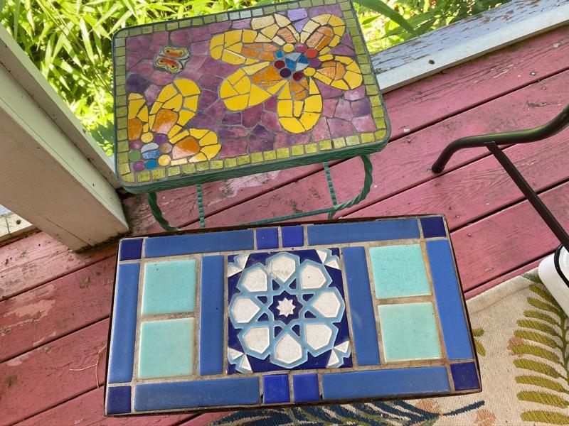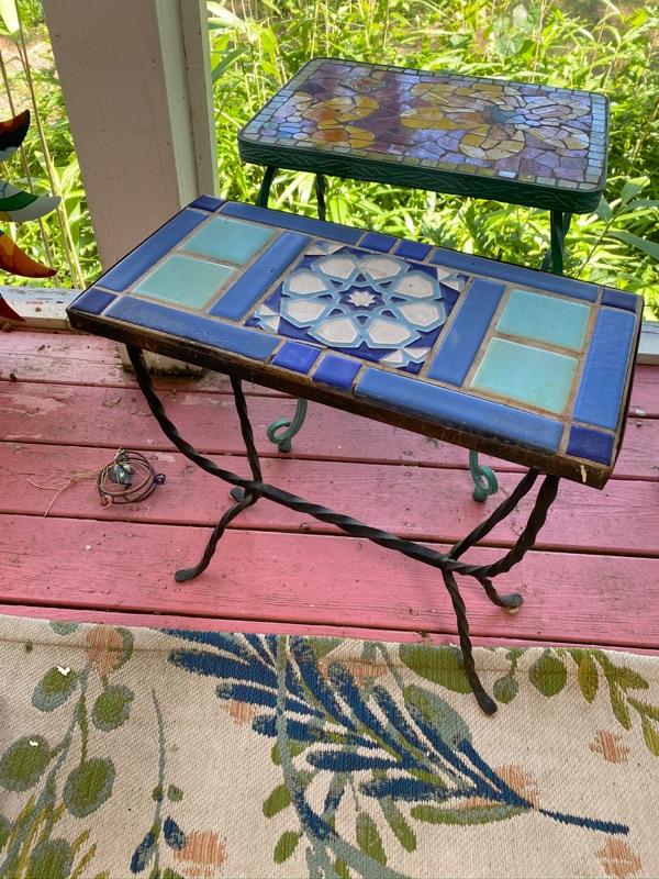 Lot #833 Pair of Mosaic Tile/ metal base tables