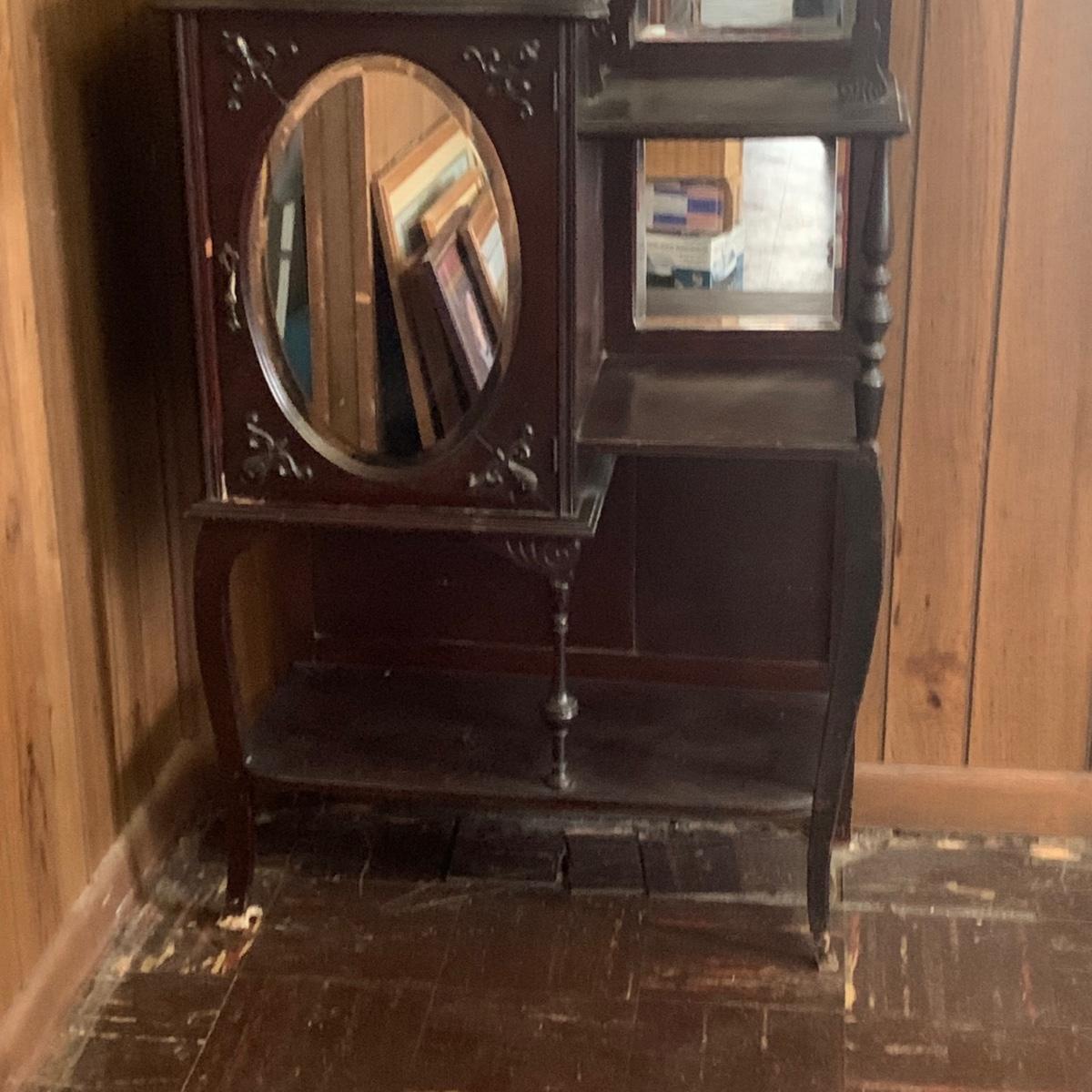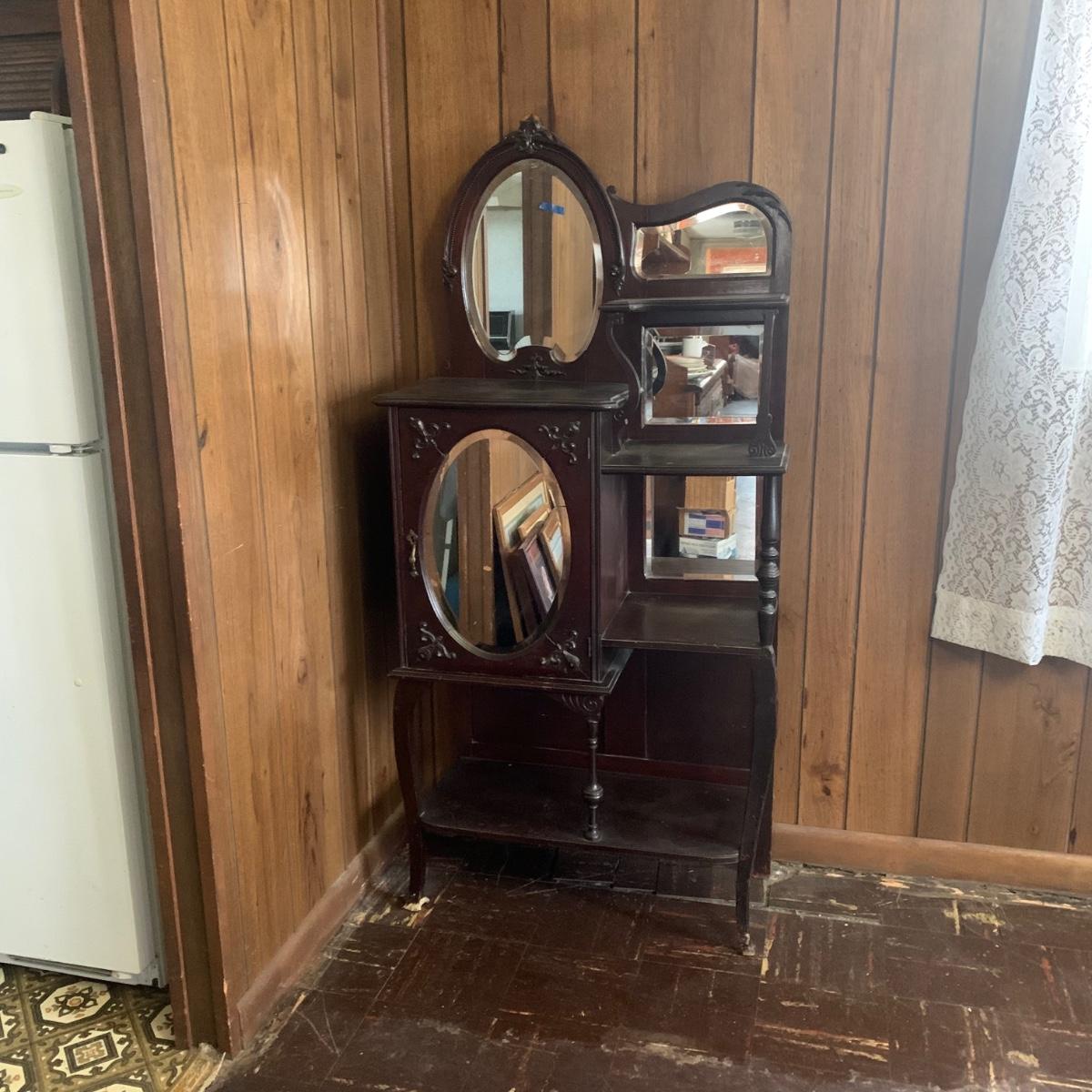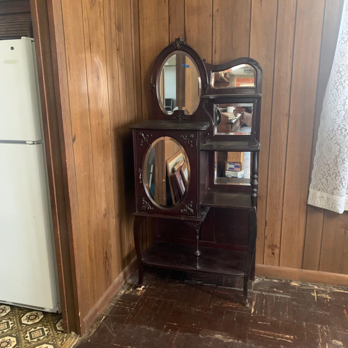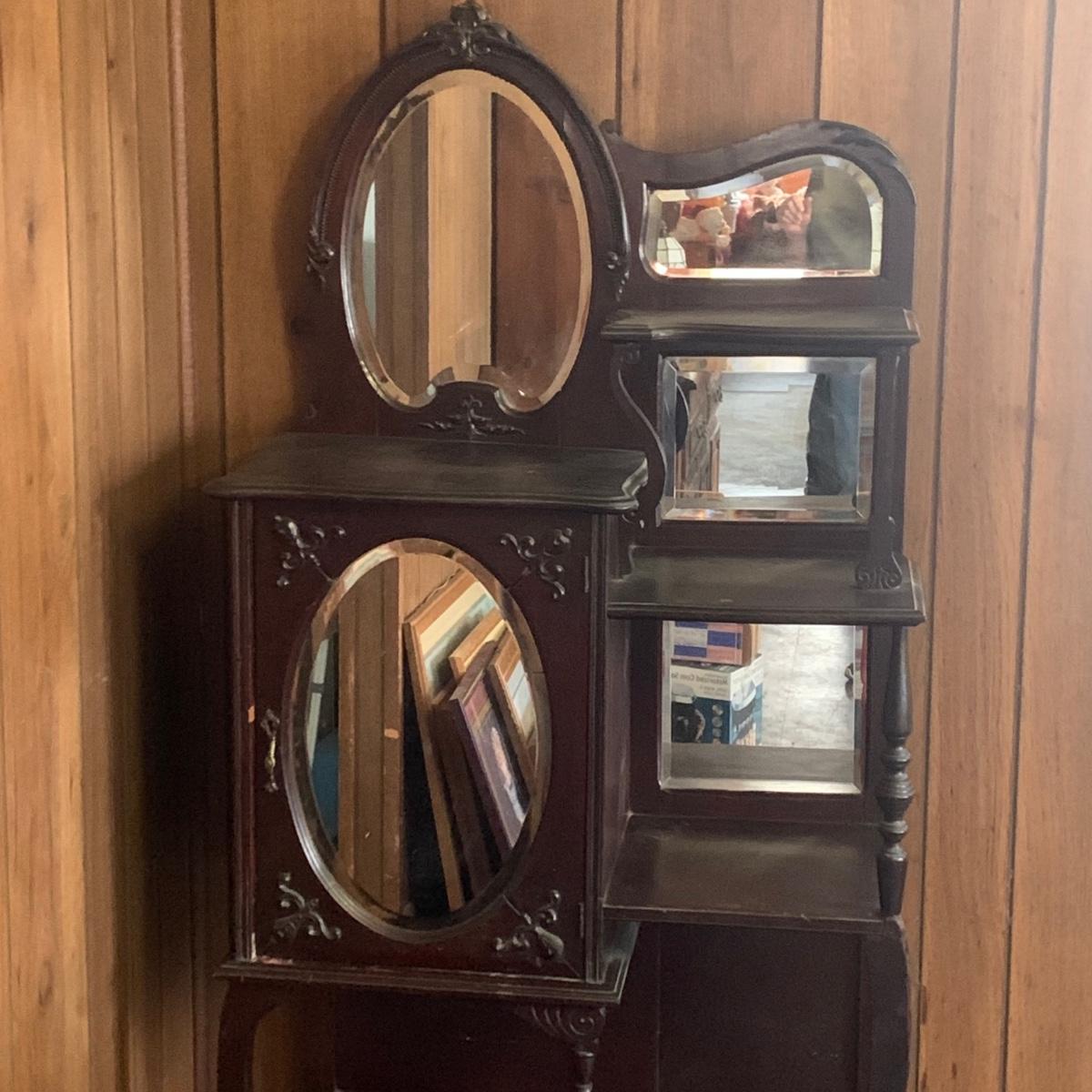 LOT 2: Antique Side by Side  Cabinet & Shelves w/Beveled Mirrors