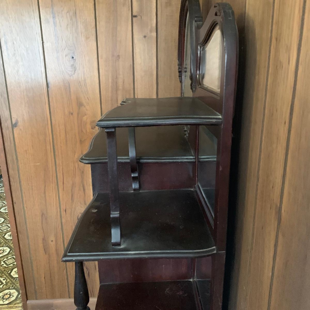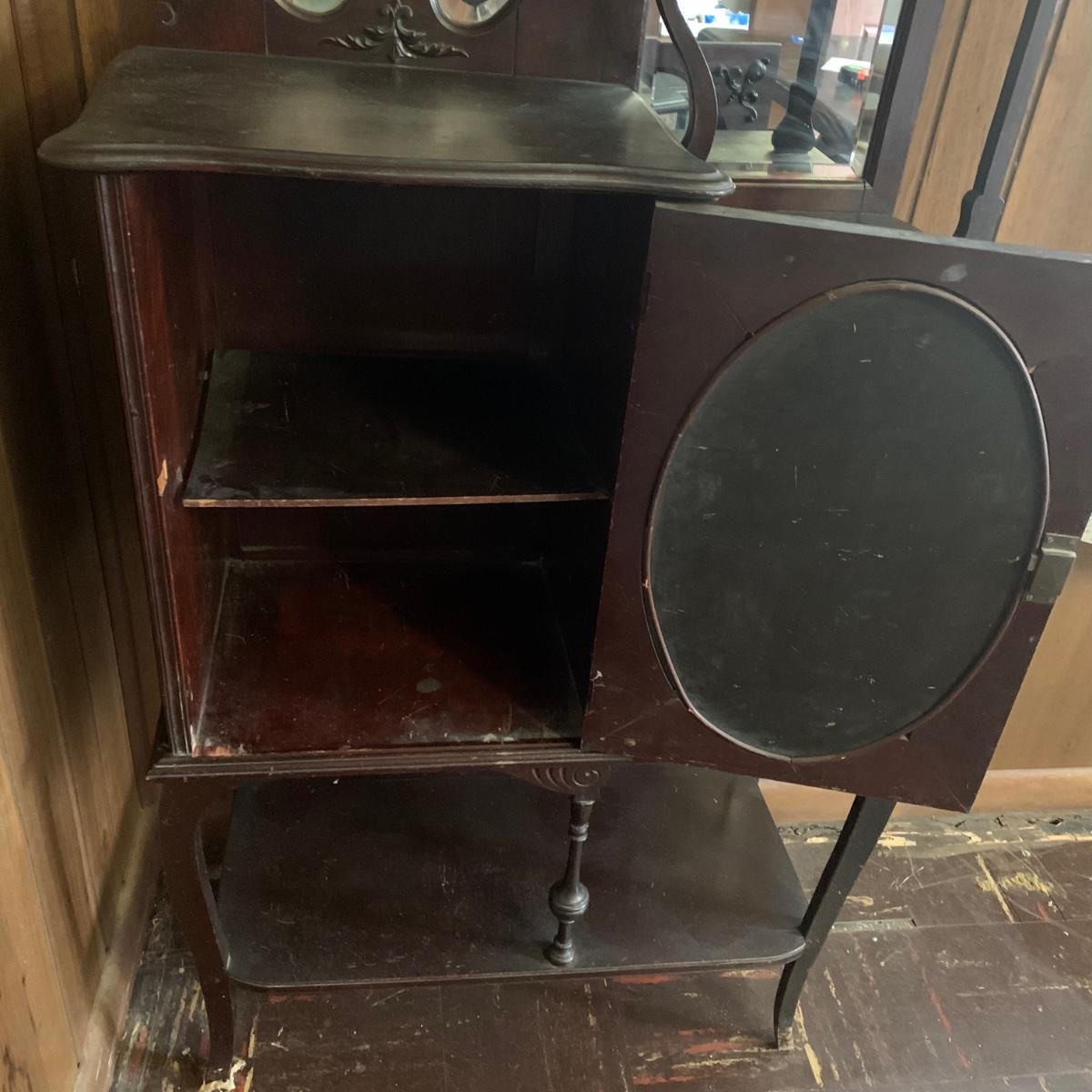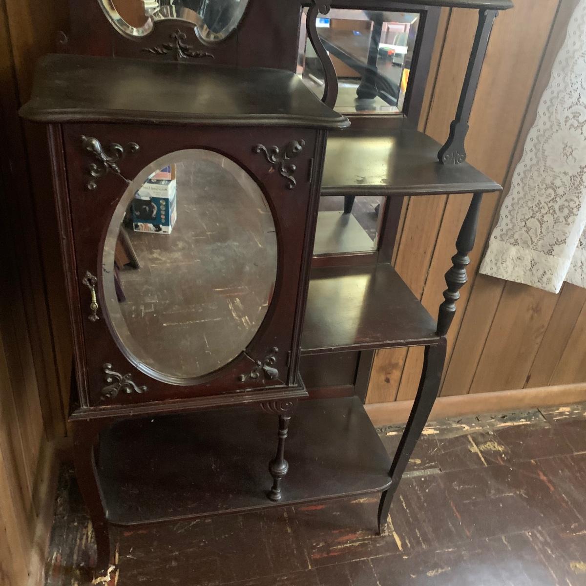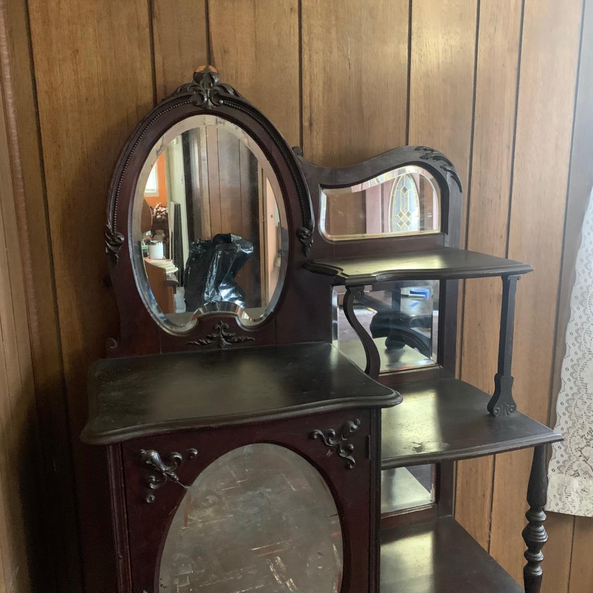 LOT 2: Antique Side by Side  Cabinet & Shelves w/Beveled Mirrors
