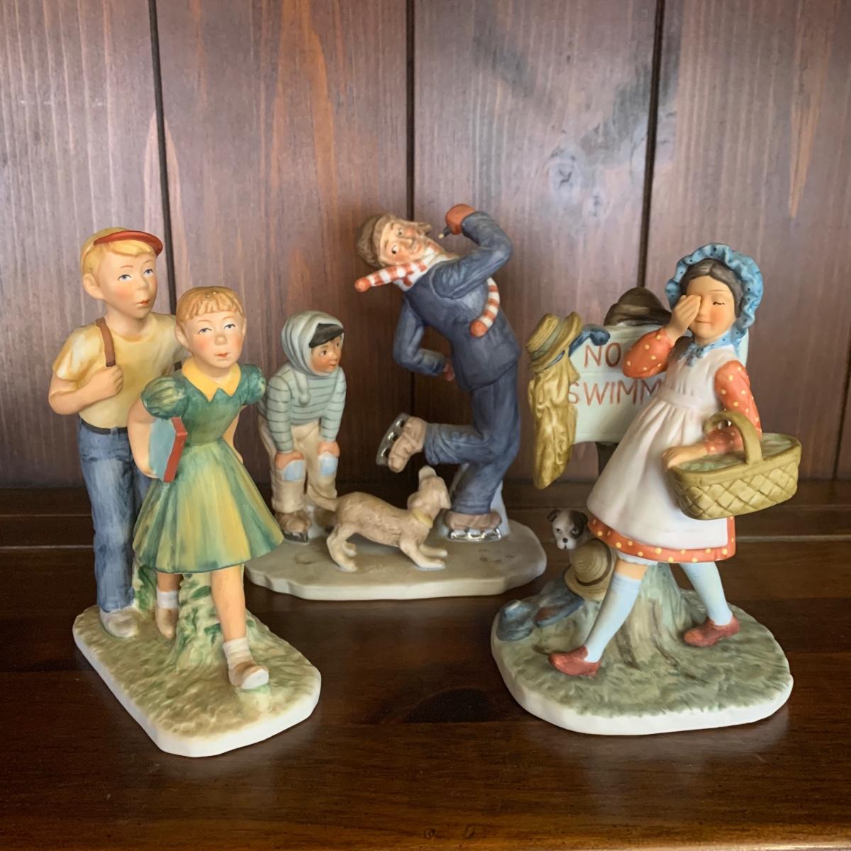 LOT 5R: Vintage Norman Rockwell Figures: No Swimming, A Day in the Life of a Boy & Gay Blades