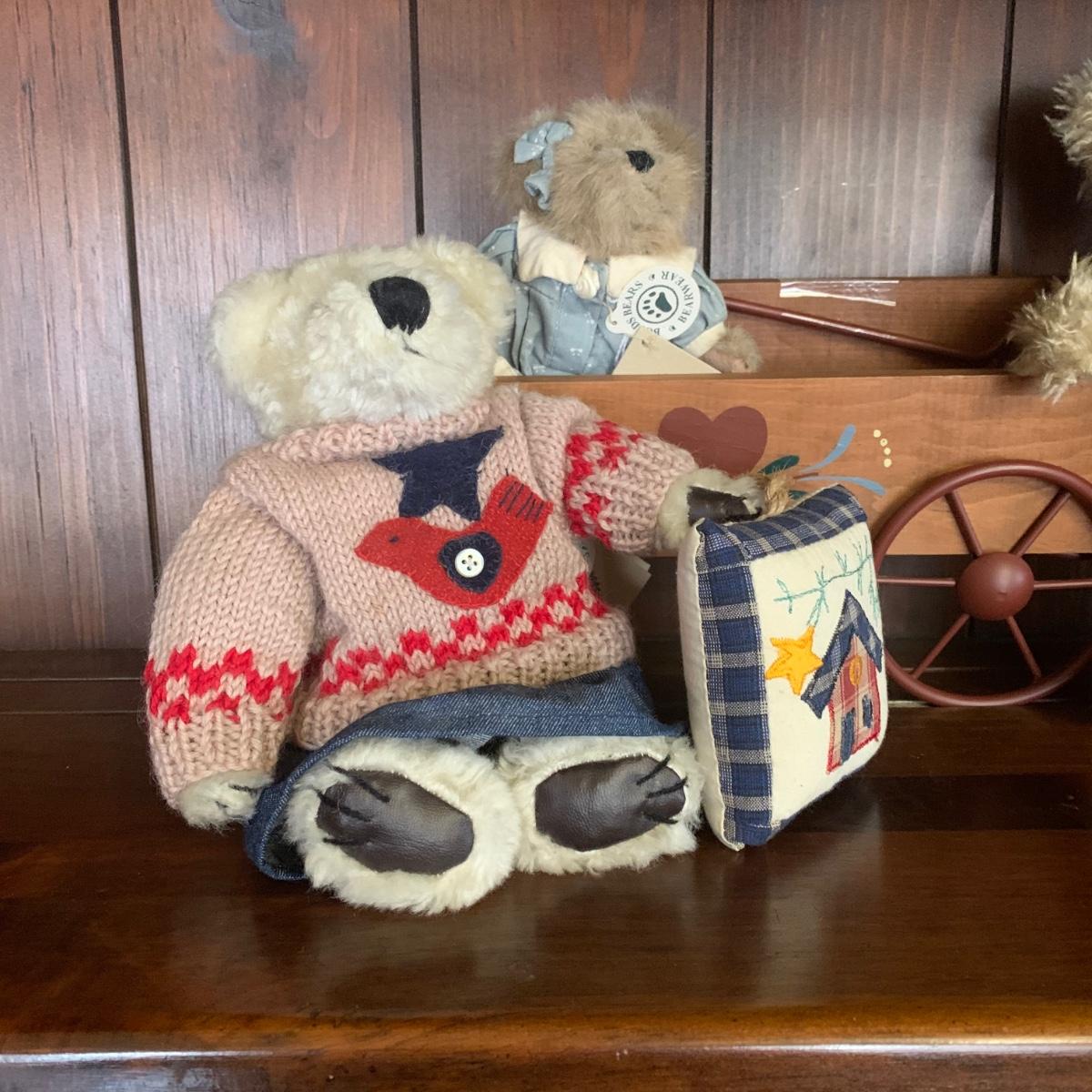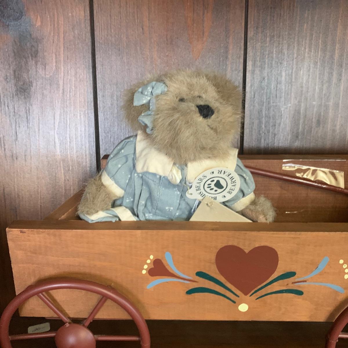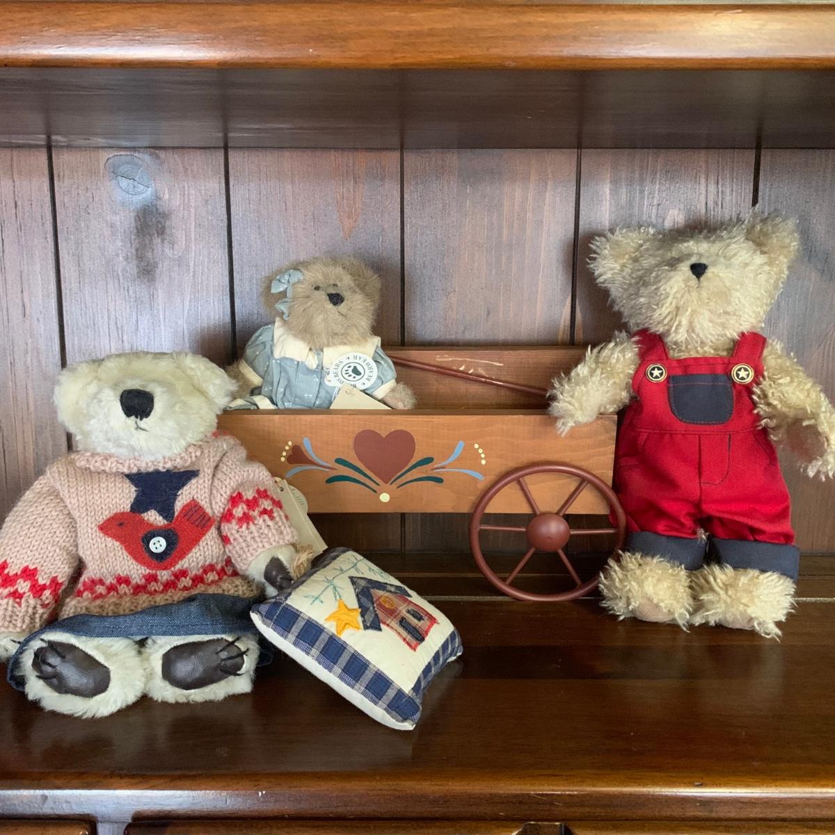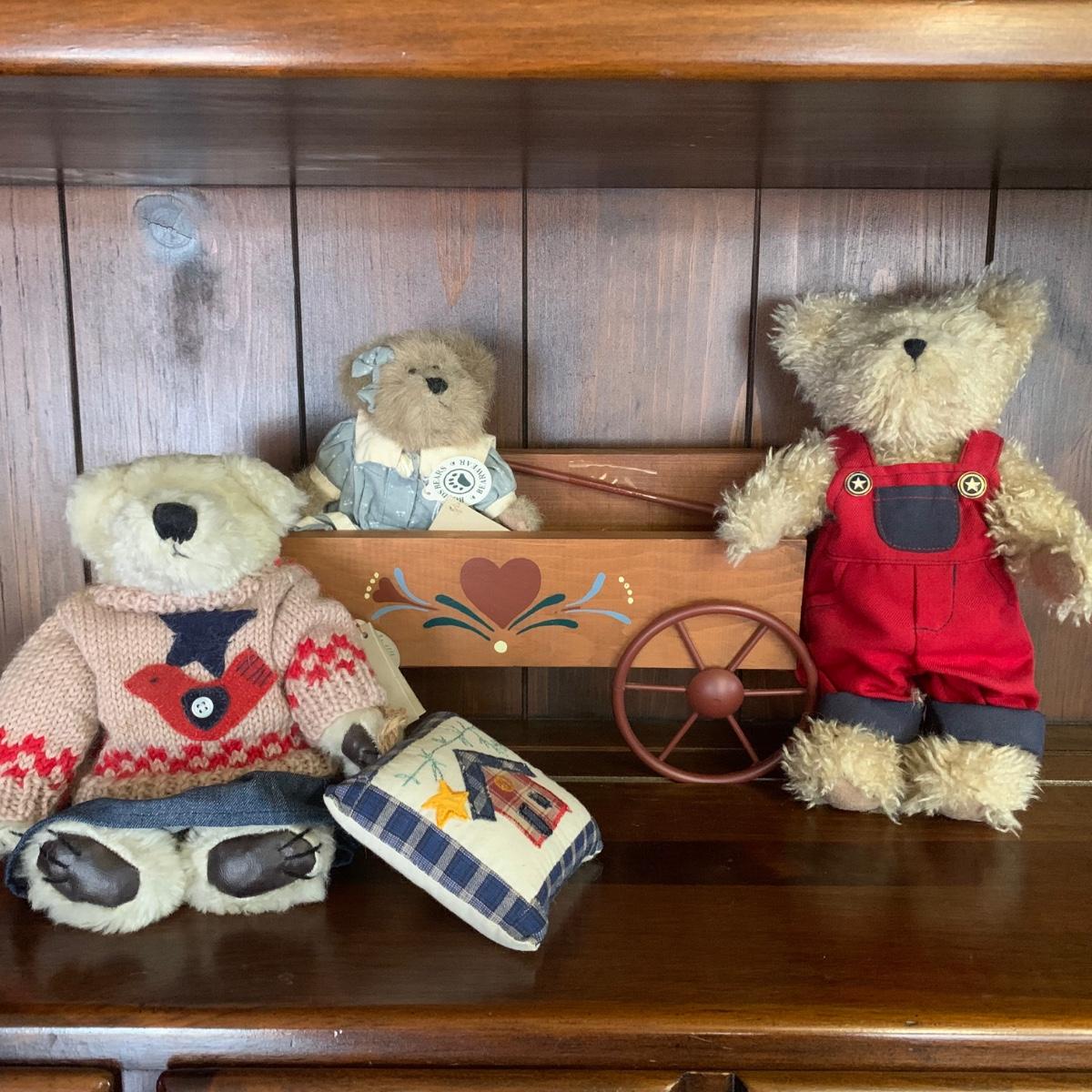 Home Interiors Decor wood wagon w/metal wheels folk art wall pocket. Collection of 3 Boyds Bears.
