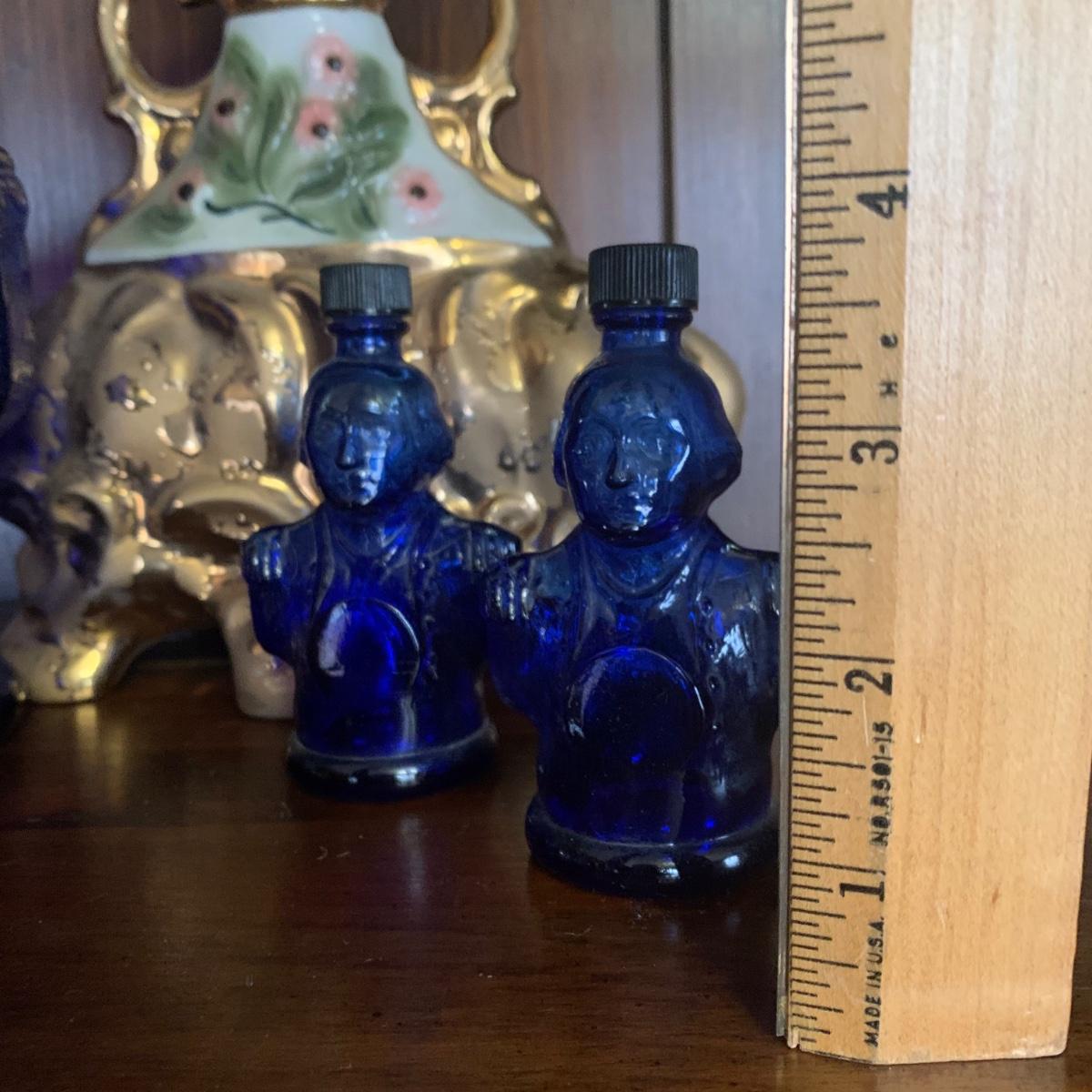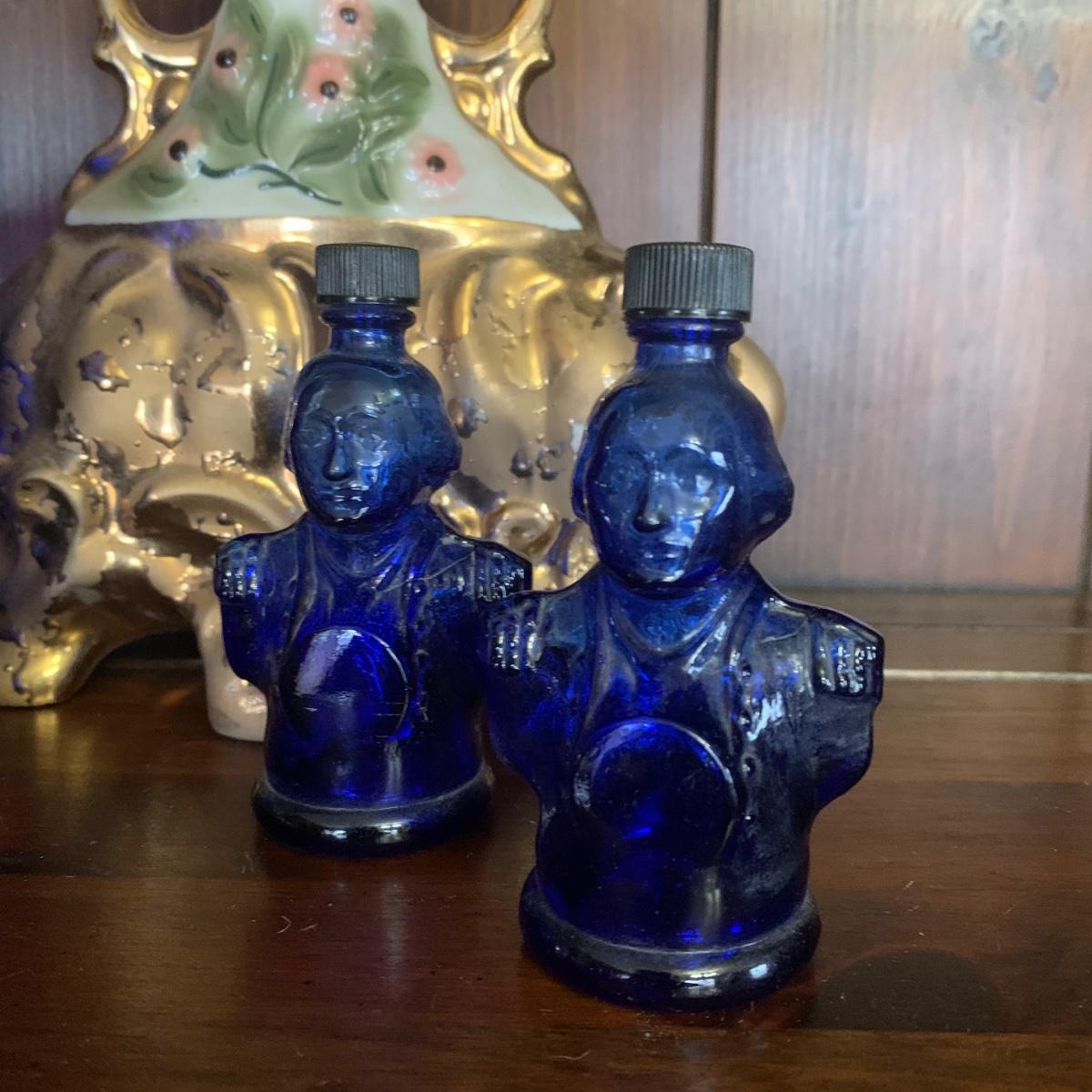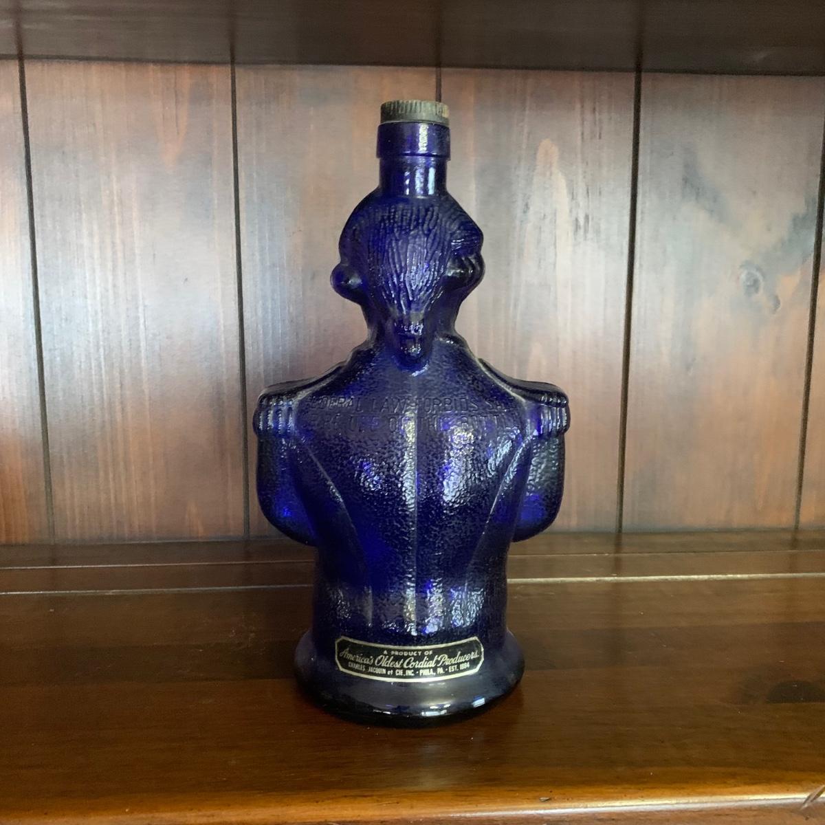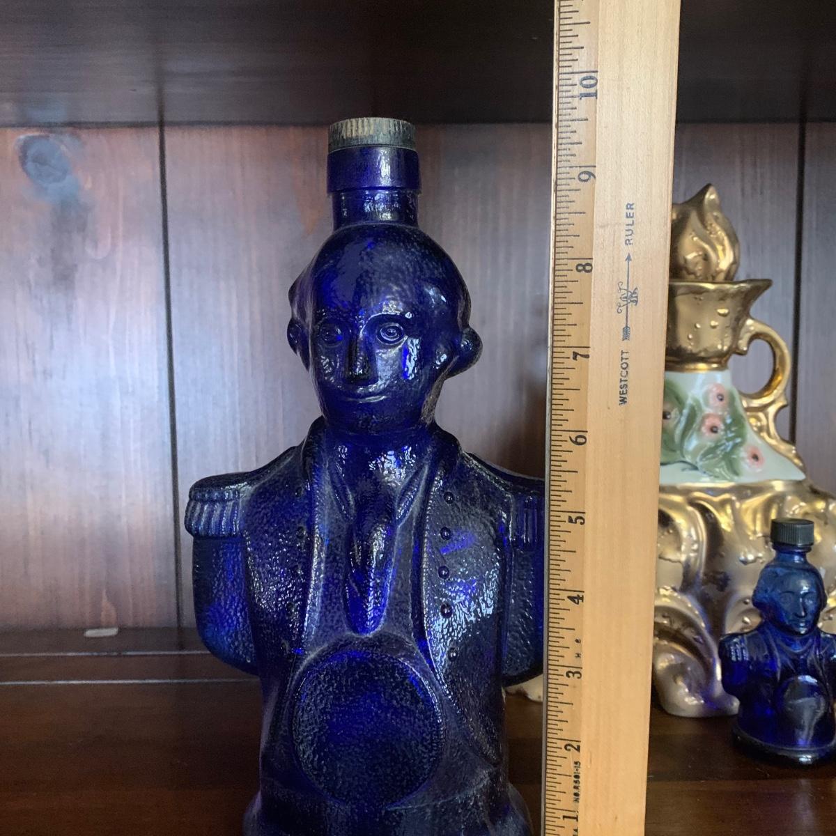 LOT 13R: Cobalt Blue George Washington Decanter w/ Miniatures, Jim Beam Weeping Gold Decanter